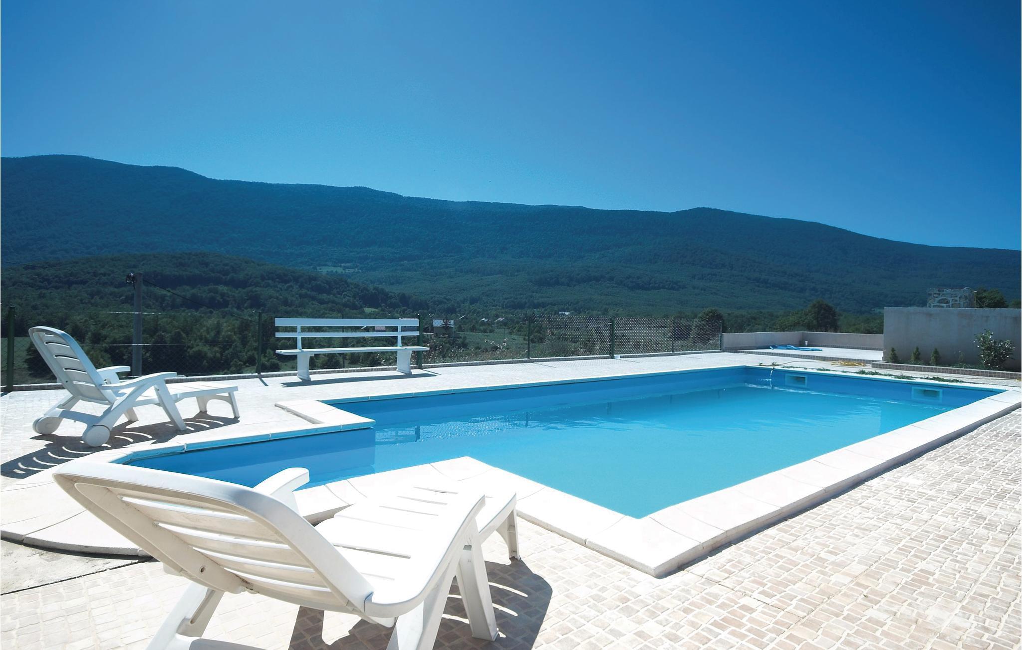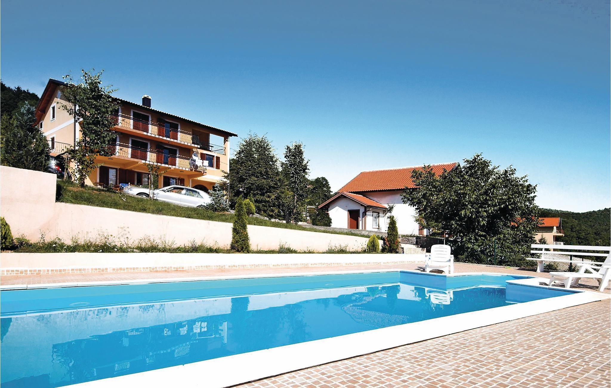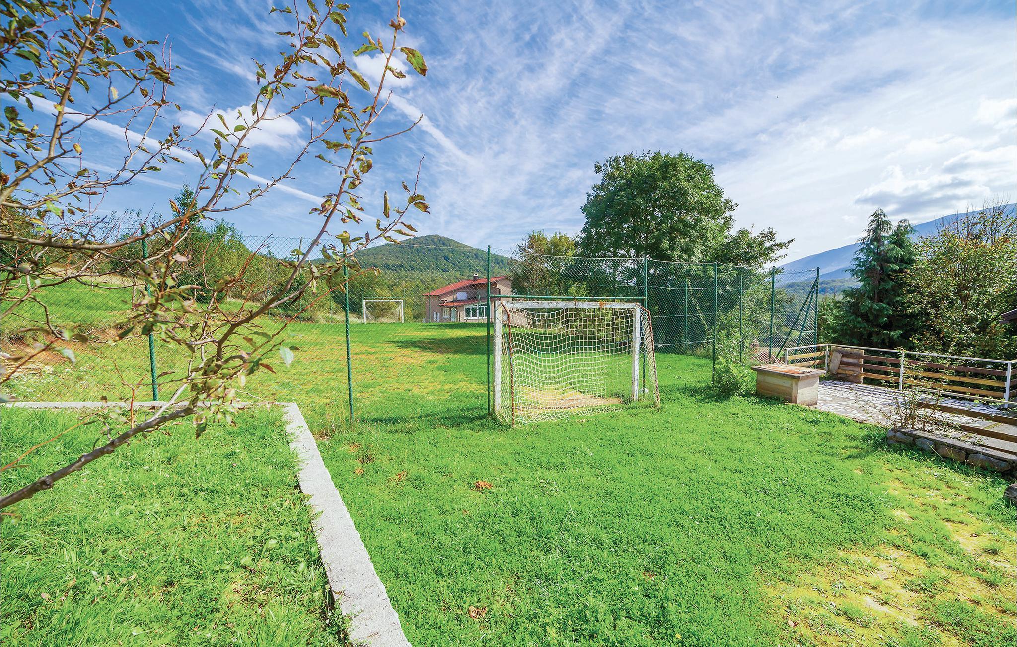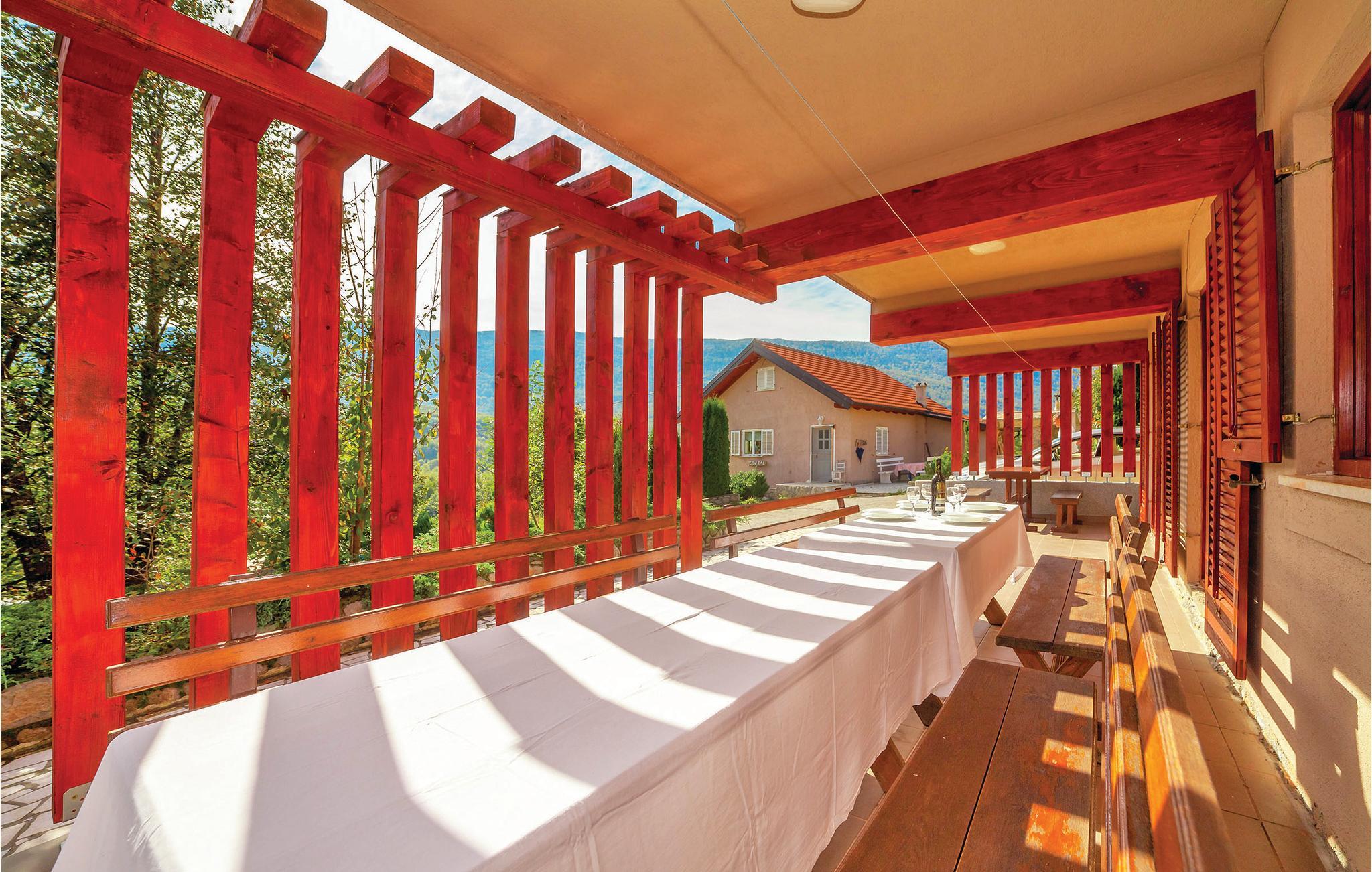 Dette feriehus er beliggende i den lille landsby Crni Kal i Velebit bjergene. Stedet er ideelt til et afslappende ophold i rolige omgivelser og smuk natur. Huset består af syv soveværelser og en stue i stueetagen med køkken, som står til rådighed foralle gæsterne. De øvrige etager har også hver et lille køkken. Alle værelserne i huset er praktisk indrettede. På den rummelige terrasse ved siden af huset kan I nyde de milde aftener, når I spiser lækre grillretter. Alle sportslige gæster har en lille fodboldbane, bordtennis og en 50 m² stor pool til rådighed fælles med gæsterne fra CKV180. Fra poolområdet har I en herlig udsigt over det fortryllende landskab. Besøg den nærliggende nationalpark Velebit med fantastiske udsigtspunkter, høje klatreklipper og talrige huler og den imponerende tal Gacka dolina. Den vidunderlige nationalpark Plivic-Søerne, der er Kroatiens største nationalpark, ligger kun en times kørsel væk.