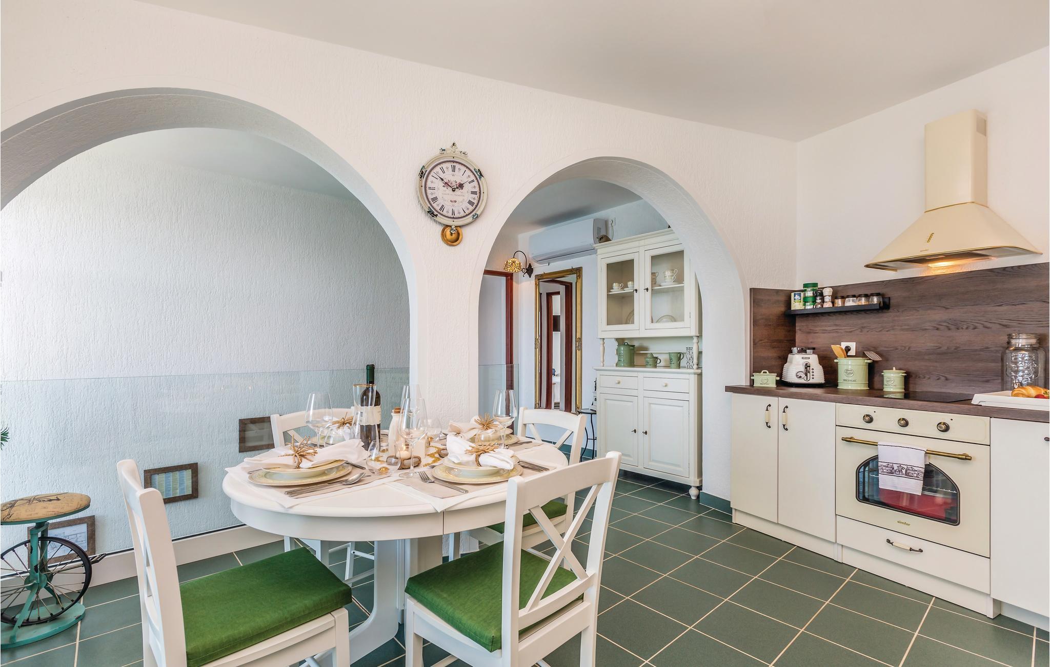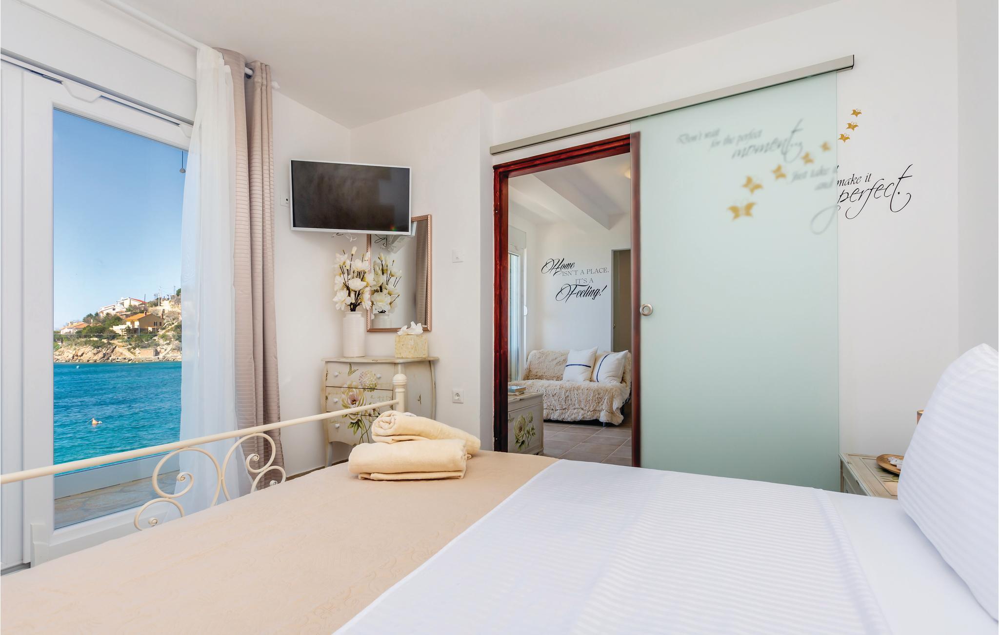 Oplev en luksuriøs ferievilla ved havet, der er designet til jeres største fornøjelse. Villaen byder på en betagende panoramaudsigt fra alle rum. Slap af på den bageste terrasse, eller nyd bugtens skønhed på de luksuriøse liggestole i solen. Den er udstyret med underholdningsfaciliteter som bordfodbold, dart, bordtennis og forskellige brætspil til hele familien og har en sauna til afslapning. Denne villa er perfekt til dem, der søger ro, stjernekiggeri og en fortryllende udsigt over landsbyen. Man kommer til villaen via en smal, snoet vej, og der er en eksklusiv parkeringsplads under et stort egetræ, hvor man kan holde sin bil beskyttet og afkølet.