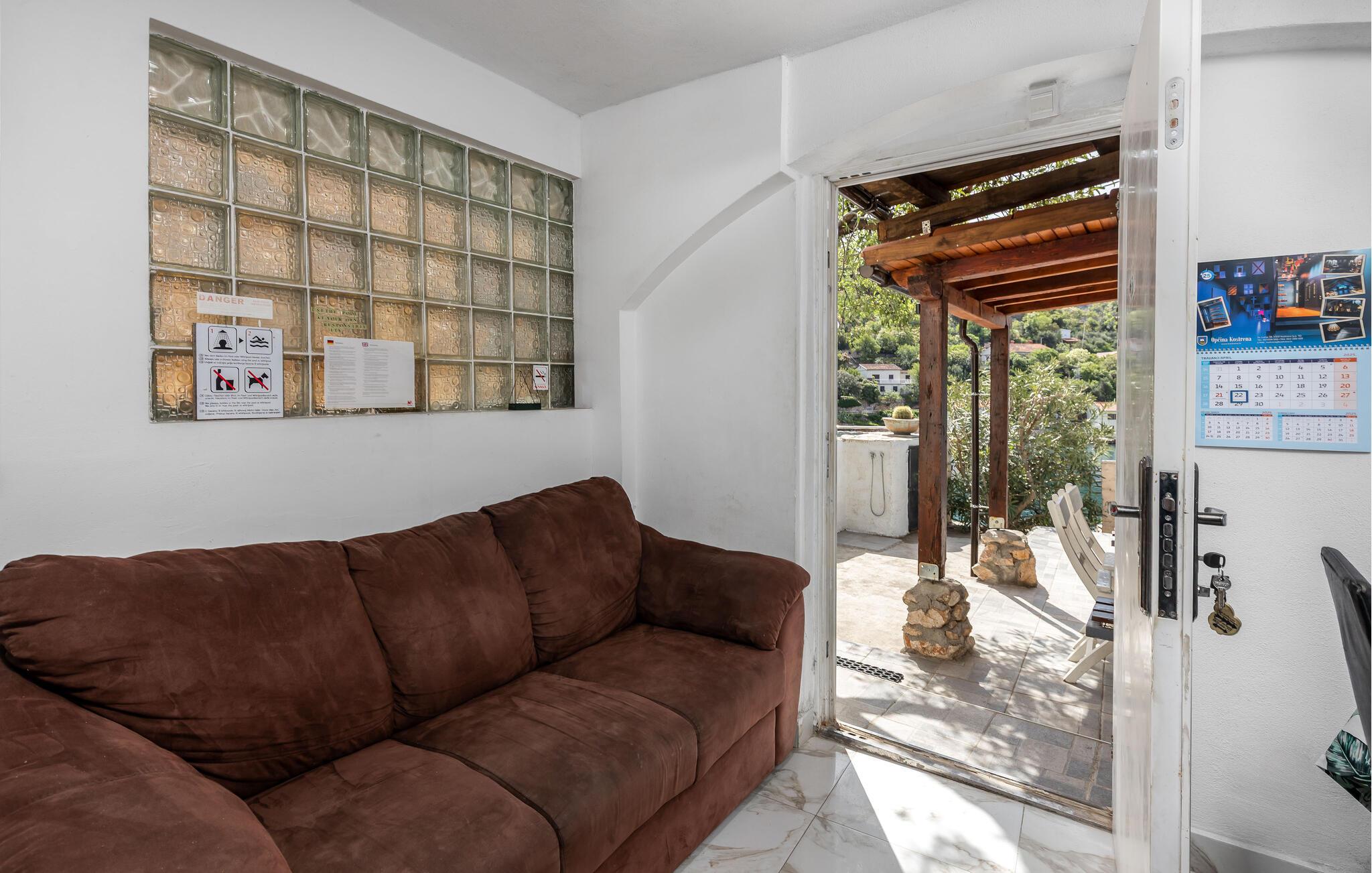 I kommer op til tredje sal er der adgang ad en udendørs trappe, hvor der lige ved indgangen er et lille badeværelse og et lille soveværelse med den mest betagende havudsigt. Ved siden af terrassen med grill finder i en pool til mange timers sjov med leg og plasken i det forfriskende vand.