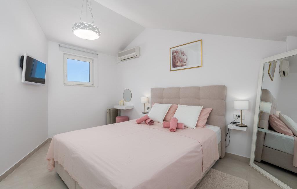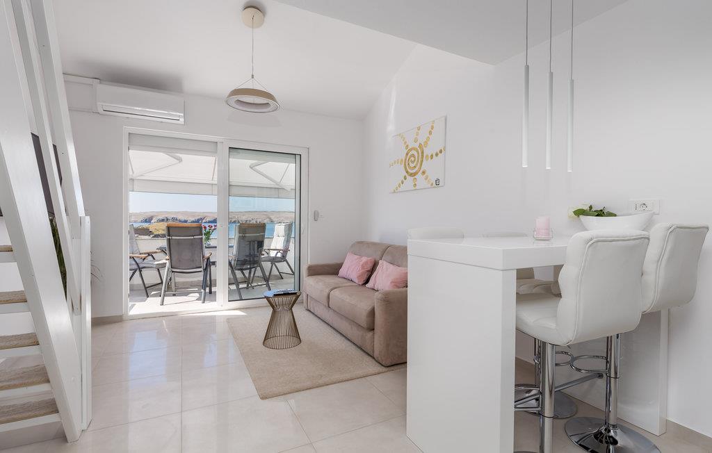 Glæd jer til en ferie med base i denne lækre lejlighed med havudsigt tæt på færgehavnen og den smukke ø Rab.