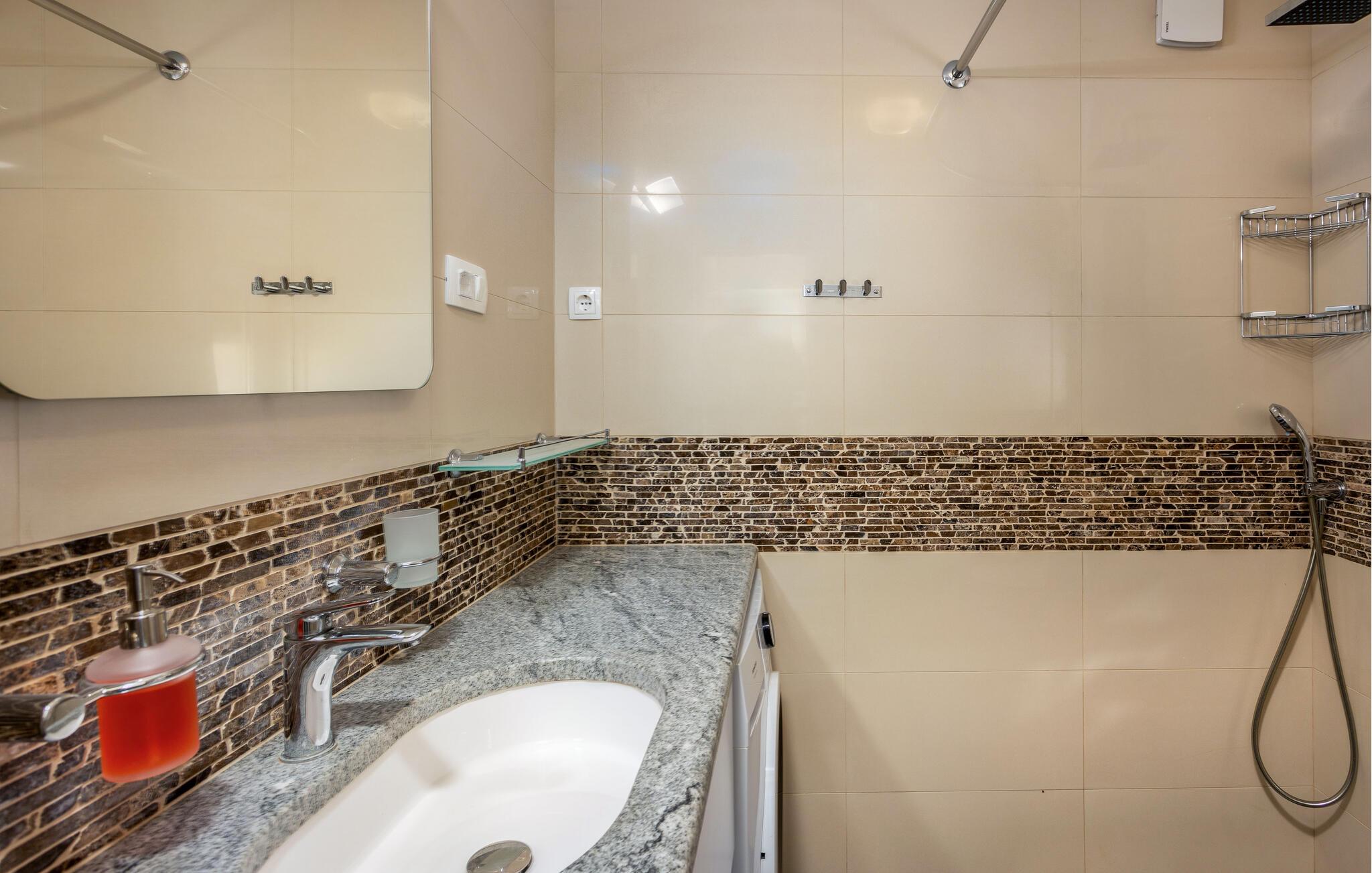 Nyd den betagende panoramaudsigt over havet og stranden, fra denne ferielejlighed. Hop en tur i poolen, som I deler sammen med husets ejer. Den ligger i et privat hus i den lille kystby Sv. Juraj, for foden af Velebitbjergene. Dyk ned i den mediterrane atmosfære og slap af på lejlighedens indbydende terrasse, hvor det er skønt at spise, snakke, læse en god bog eller bare slappe af og nyde at der er tid til alt. Tag også en tur til Nationalparkerne Velebit og Plitvicer-søerne eller byen Senj og fæstningen Nehaj samt sejl en tur til øerne Rab og Pag. Landevej lige i nærheden.
