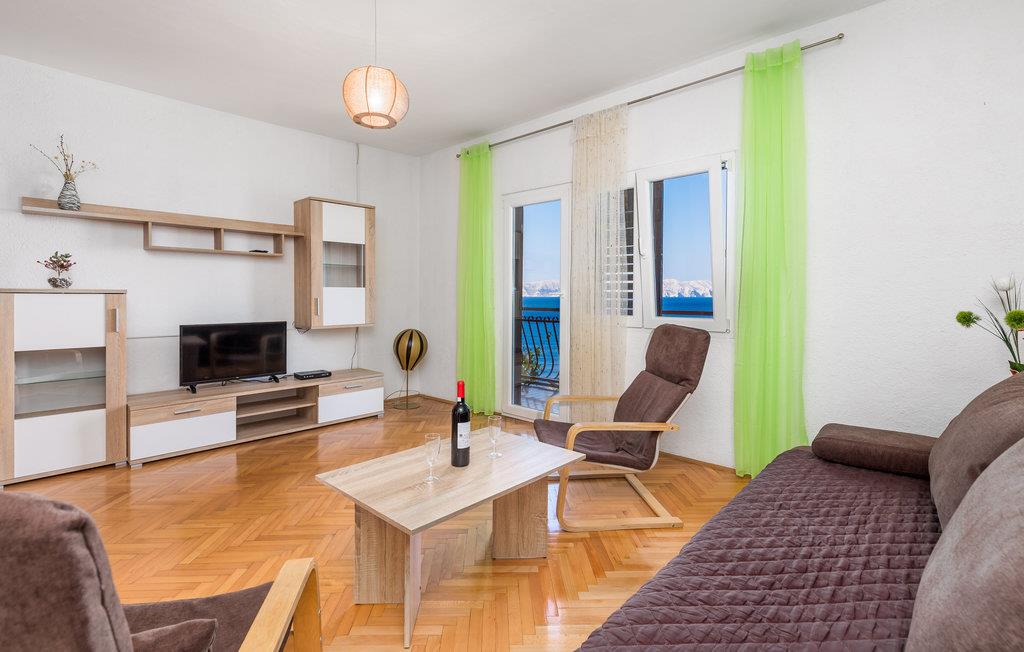 Gå ud på altanen, og lad dig blive overvældet af den smukke havudsigt. Denne smukke lejlighed imponerer ikke kun med den fantastiske udsigt, men også med de moderne møbler, en hyggelig stue, 2 soveværelser og 2 badeværelser. Her kan du komfortabelt feriere med op til 5 personer. Du kan også medbringe dit kæledyr.