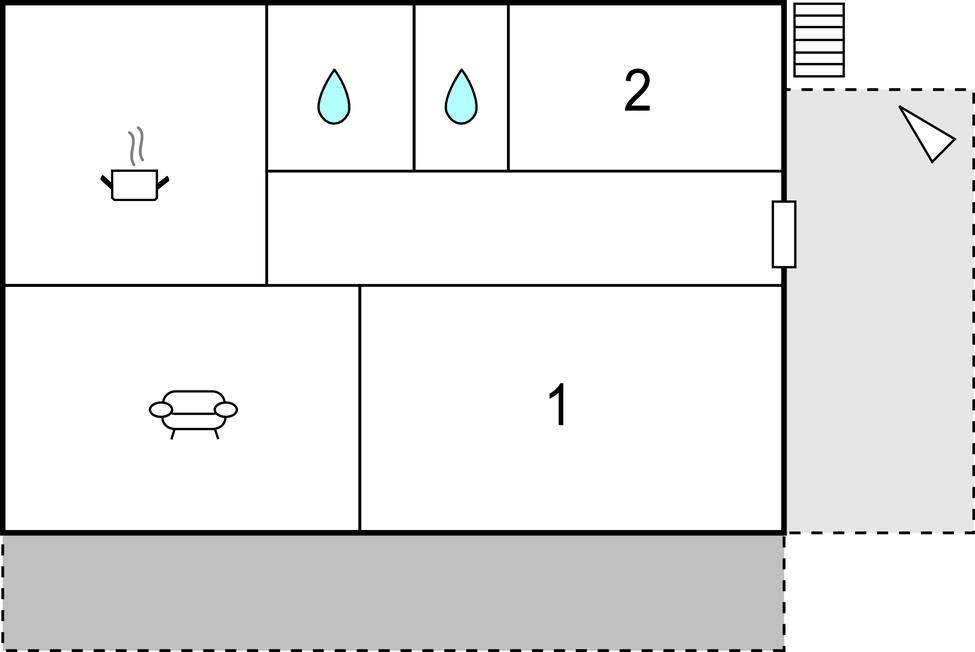 Soveværelse 18m2 (nr. 1) - 1 Soveplads. (Enkeltseng(e)). 2 Sovepladser. (Dobbeltseng(e)).