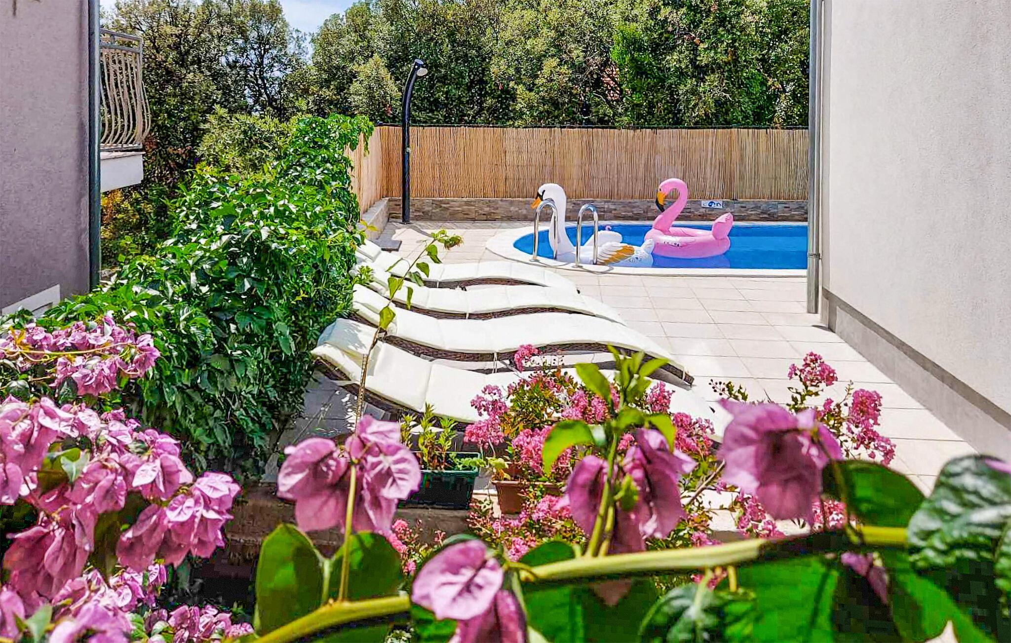 Glæd jer til at slappe af i denne smukke lejlighed i Brodatica. Boligen er kendetegnet ved en attraktiv indretning, og hvis I har lyst til at rejse med en vennefamilie, kan nabolejligheden også bookes, hvis den er ledig. I finder masser af gode faciliteter i lejligheden, hvorfra I har udgang til en privat altan. Udenfor kan I se frem til at dase i den vidunderlige fælles have med pool og smukke blomster og planter. På den rummelige terrasse finder I både grill og udekkøkken, så der er lagt op til nogle festlige fælles måltider med husets andre gæster.
