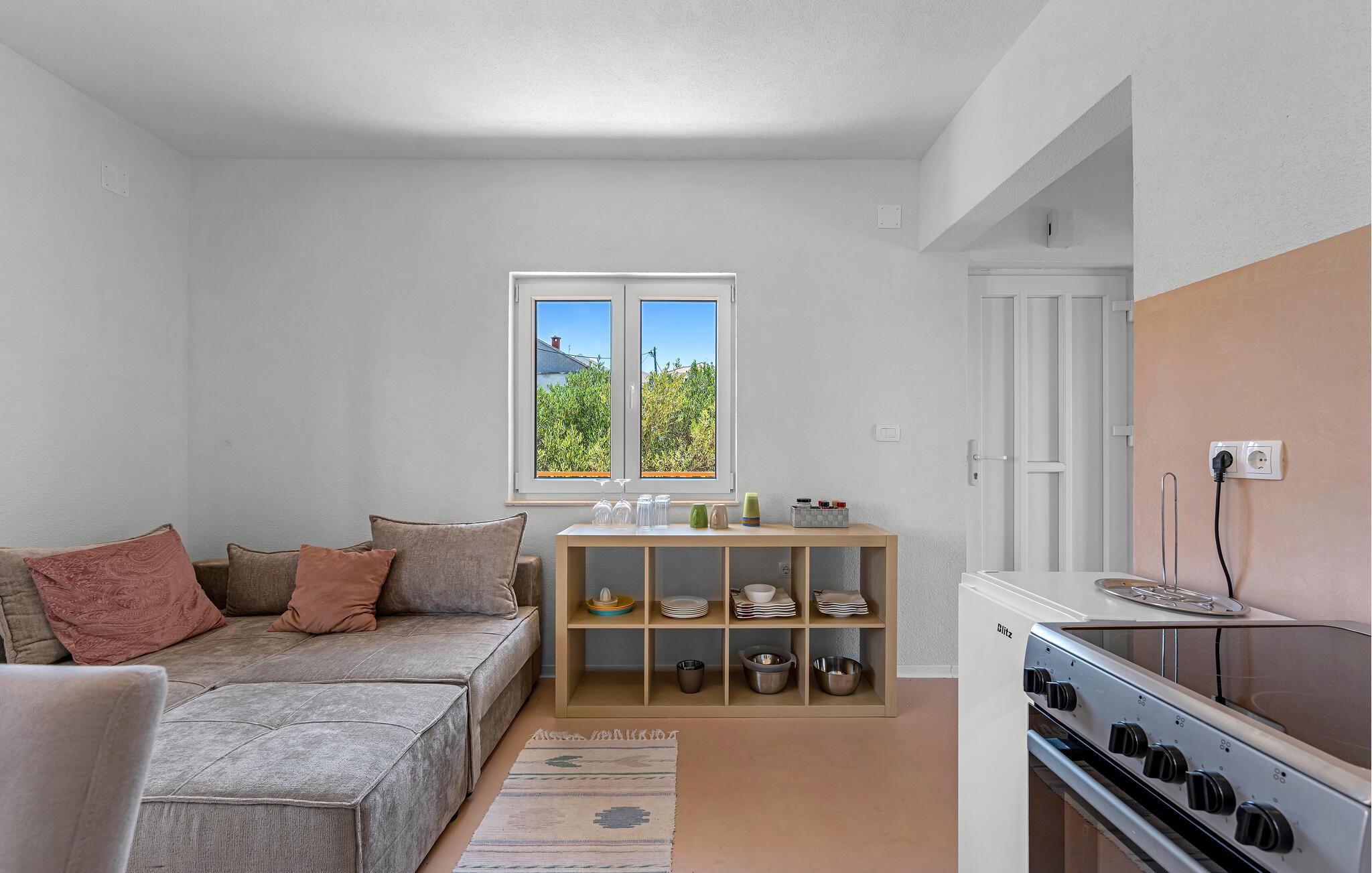Opholdsstue/køkken 15m2 - 2 Sovepladser. (Sofa, madras eller lignende).