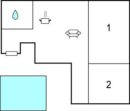 Opholdsstue/køkken - 2 Sovepladser. (Sofa, madras eller lignende).