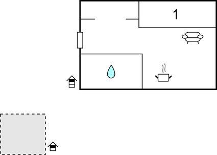 Opholdsstue/køkken - 1 Soveplads. (Sofa, madras eller lignende).