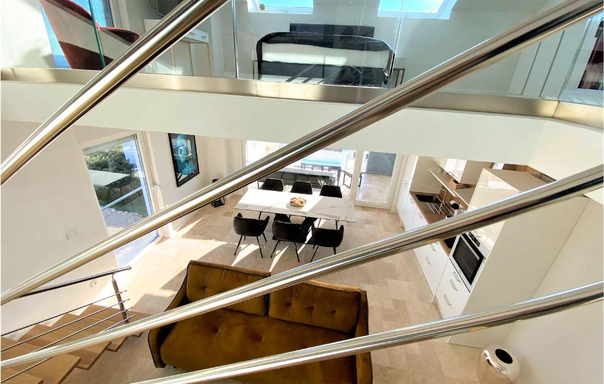 Lejligheden er lyst og komfortabelt indrettet, så her får I et skønt sted at slappe af mellem jeres ture rundt i området. Lejligheden er fordelt over to etager, og den virker dejligt rummelig. Fra balkonen har I den smukkeste panoramaudsigt til havet, så her kan I sætte jer med morgenkaffen, mens I planlægger dagen. Om aftenen kan I se stjernerne fra sengen gennem ovenlysvinduet og lægge jer til at sove under nattehimlen.