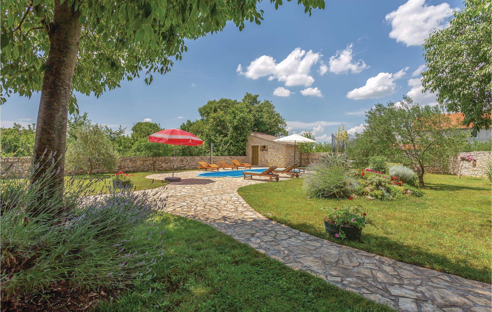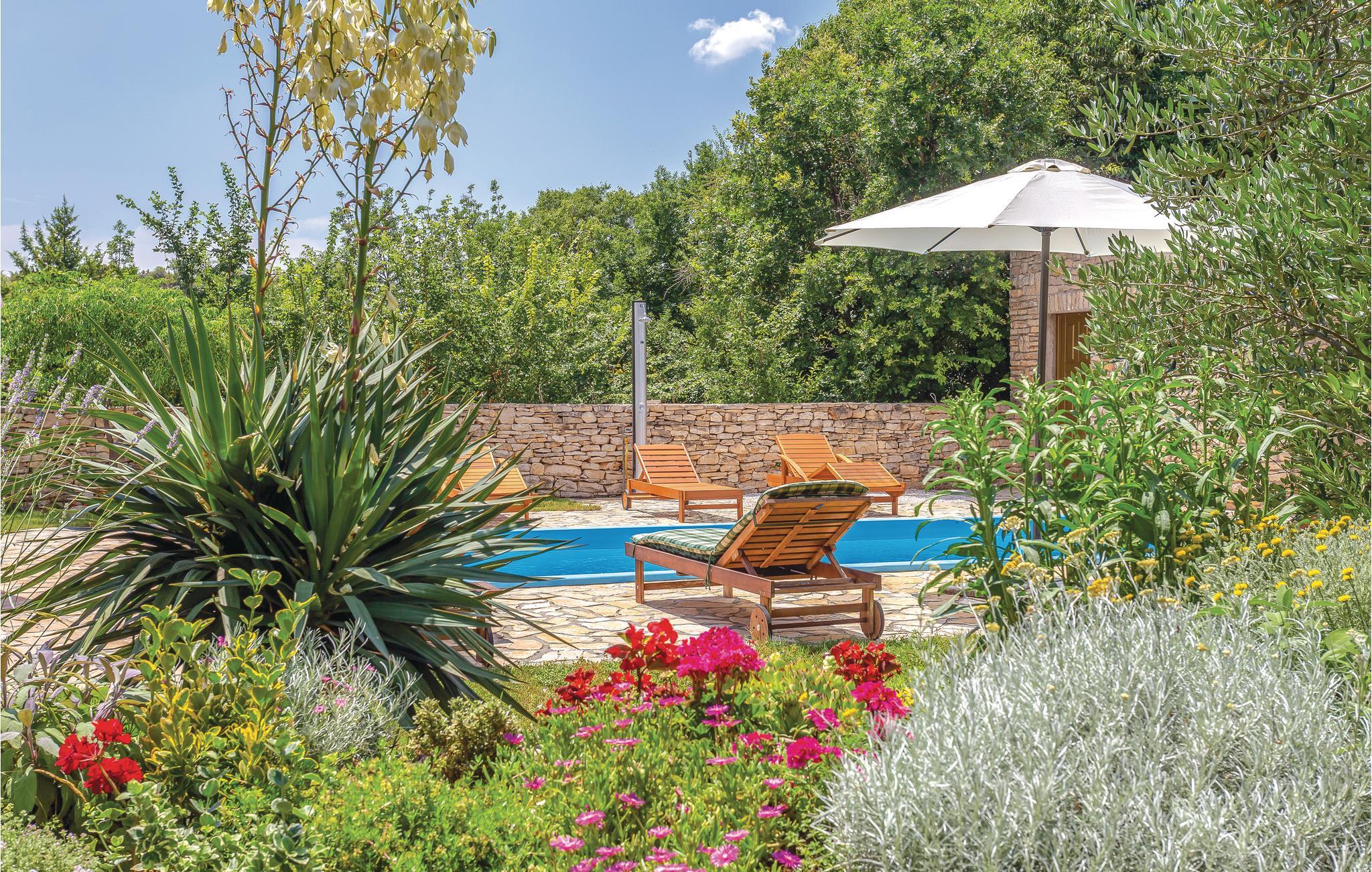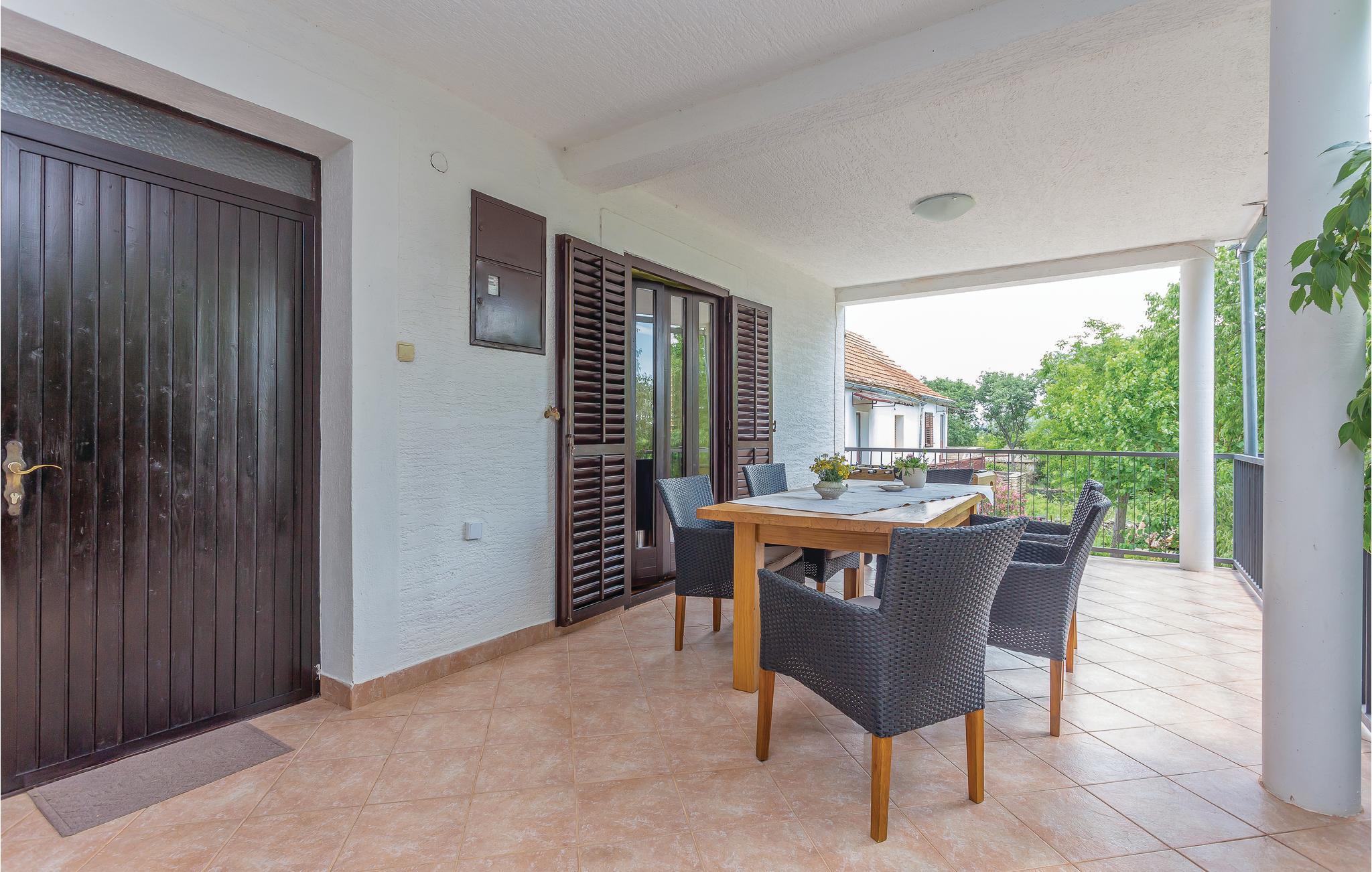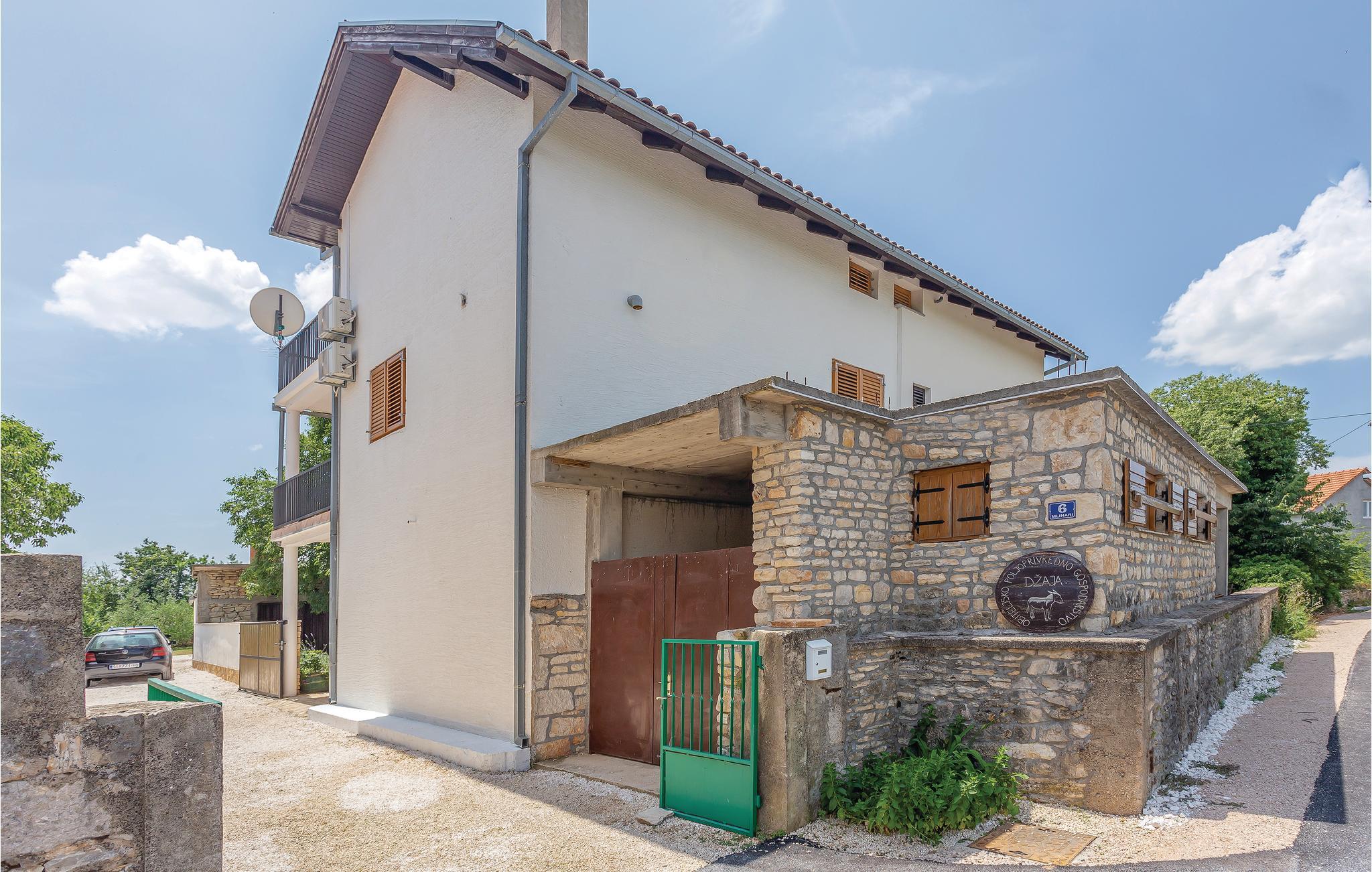 Dette dejlige feriehus består af to etager, der er forbundet af en udvendig trappe. Der er ikke vindue i soveværelse 3 - se skitsen. Foruden den store gård med pool og pavillon er der en grillplads, hvor I kan tilberede aftensmaden med lækre lokale specialiteter. Huset er omgivet af en have, hvor I må plukke sæsonens frugt. I må også gerne arbejde med ved oliven-, kirsebær- og mandelhøsten, som ejeren organiserer. Den lille by ligger 5 km fra nationalparken Krka, som I kan nå på cykel. Husejeren stiller gerne cykler til rådighed.