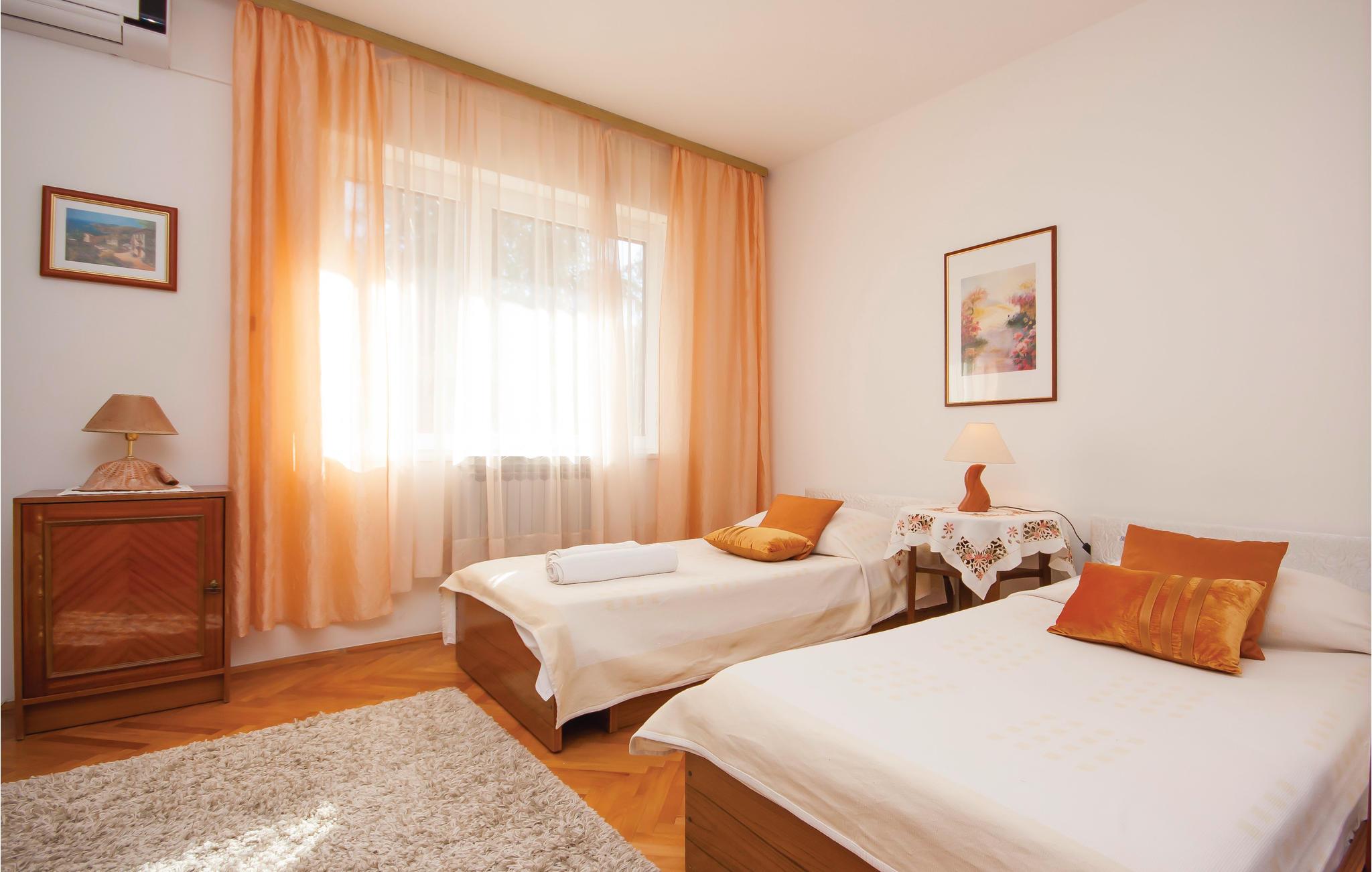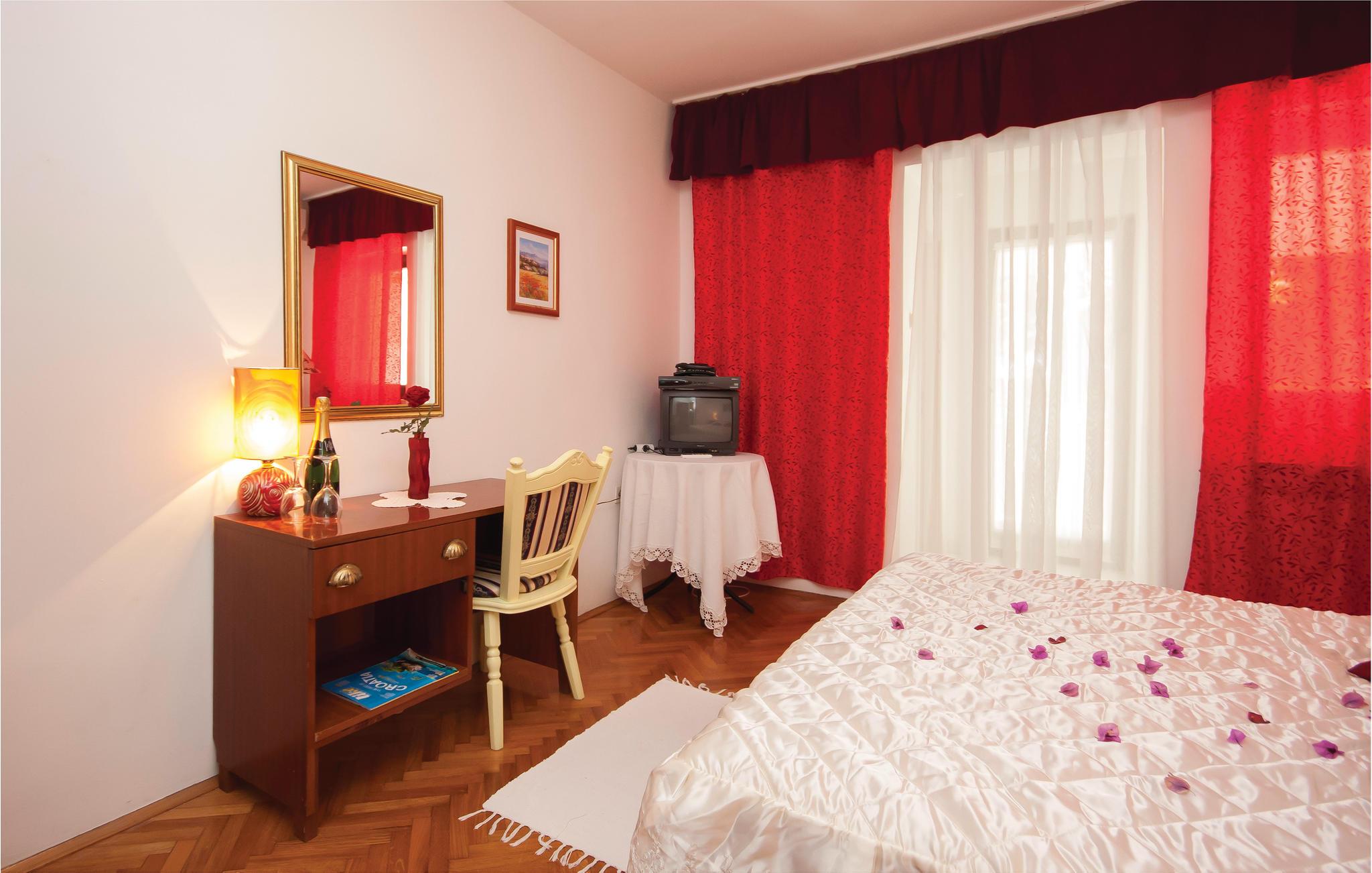Med en attraktiv beliggenhed ved havet, i stueplan i en ejendom med en høj grad af middelhavscharme, ligger denne komfortable og smagfuldt indrettede ferielejlighed. I bor i den lille fredelige ferieby Brodarica, ikke langt fra Sibenik. Nyd at sidde i skyggen i havepavillonen der ligger i pinjelunden, i den rummelige fælles have hvor både er skønt frodigt grønt og hvor der står en grill til hyggelig fælles madlavning. Fra terrassen er der en betagende udsigt over havet og den nærliggende lille ø Krapanj. Adriaterhavets fladeset og mindste beboede ø er kendt for en lang tradition med dykning. Besøg også den historiske gamle bydel i Sibenik og dens mange kulturskatte.