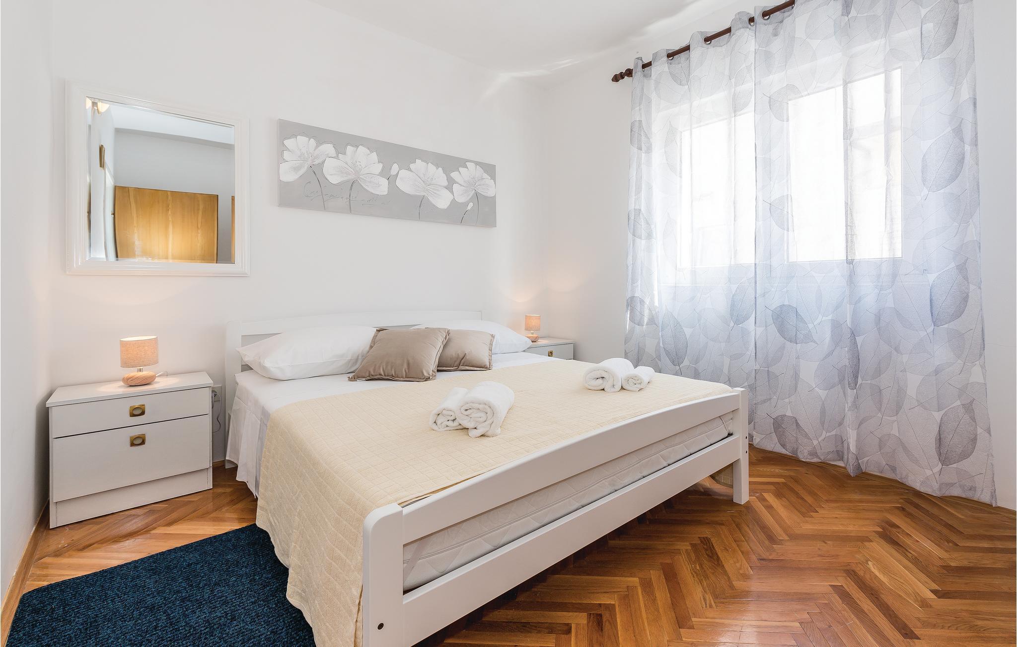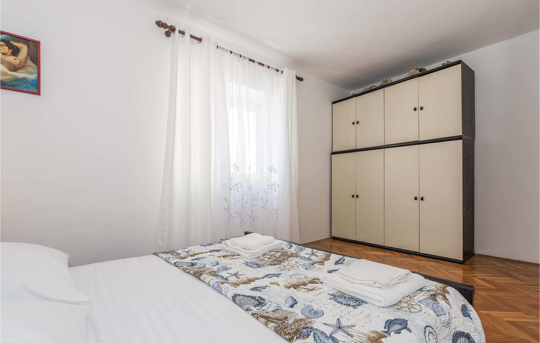 Denne ferielejlighed ligger i Brodarica, som er en attraktiv feriedestination ikke langt fra Šibenik og en kiesstrand, der er helt ideel til mindre børn. Lejligheden ligger på første sal i en privat ejendom, med en skøn udsigt over havet og øen Krapanj, med det mindste antal beboere af alle Adriaterhavets øer, kendt for sin tradition for svømmedykning. Tag på bådudflugt til øen, der er flere daglige afgange. Besøg også den historiske by Šibenik med mange spændende seværdigheder, fx Solaris Resort og de skønne nationalparker: Krka og Kornatiøerne.
