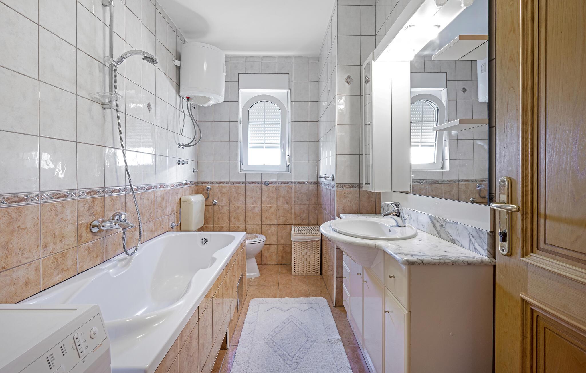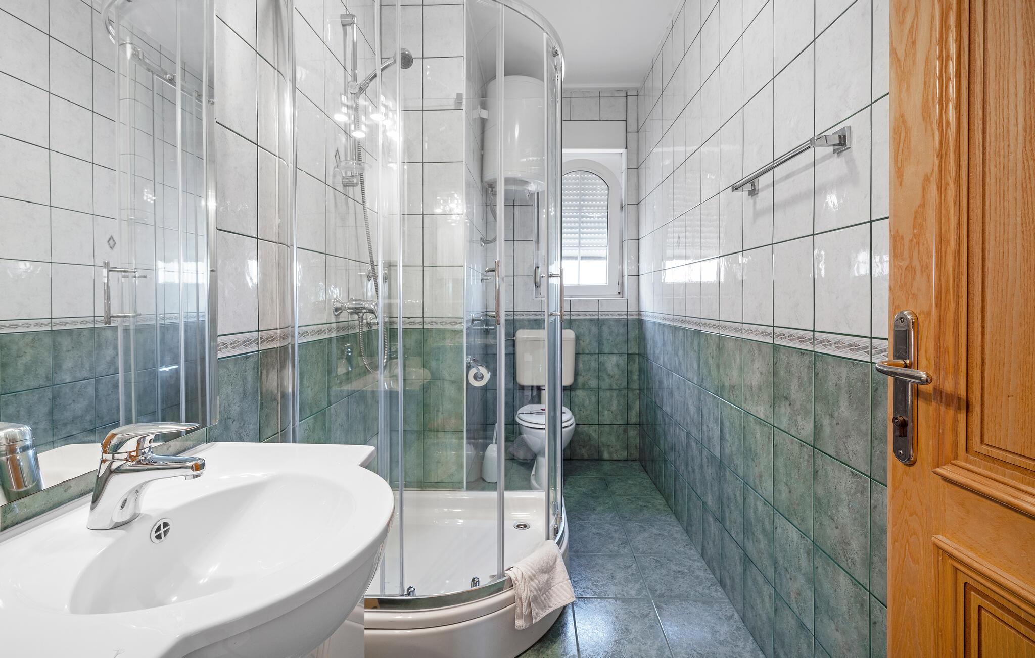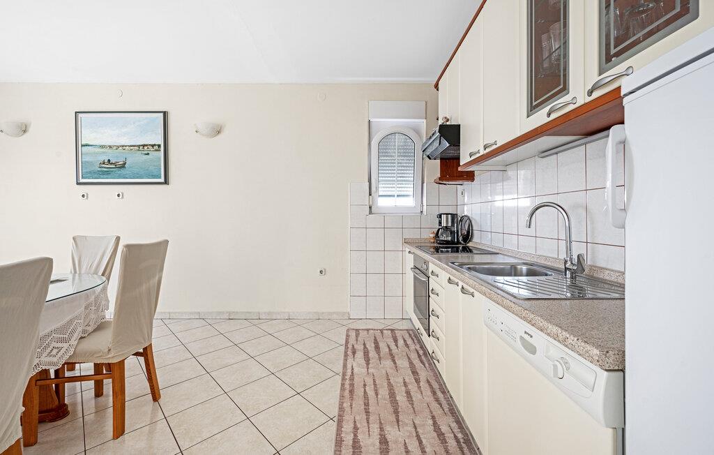 Velkommen til denne rummelige ferielejlighed i Brodarica, som giver jer en ferie med høj komfort. Der er to soveværelser og det samme antal badeværelser, så her får I perfekte rammer til en afslappende ferie som par eller familie. De stilfulde indretningsløsninger skaber en varm atmosfære og lægger op til at slappe af. Fra den store altan kan I nyde en betagende panoramaudsigt over havet - som kun er nogle få meter væk. Huset består af andre ferielejligheder, hvilket er perfekt, hvis I rejser med venner. Her kan I holde en ferie, der kombinerer afslapning og nydelse.