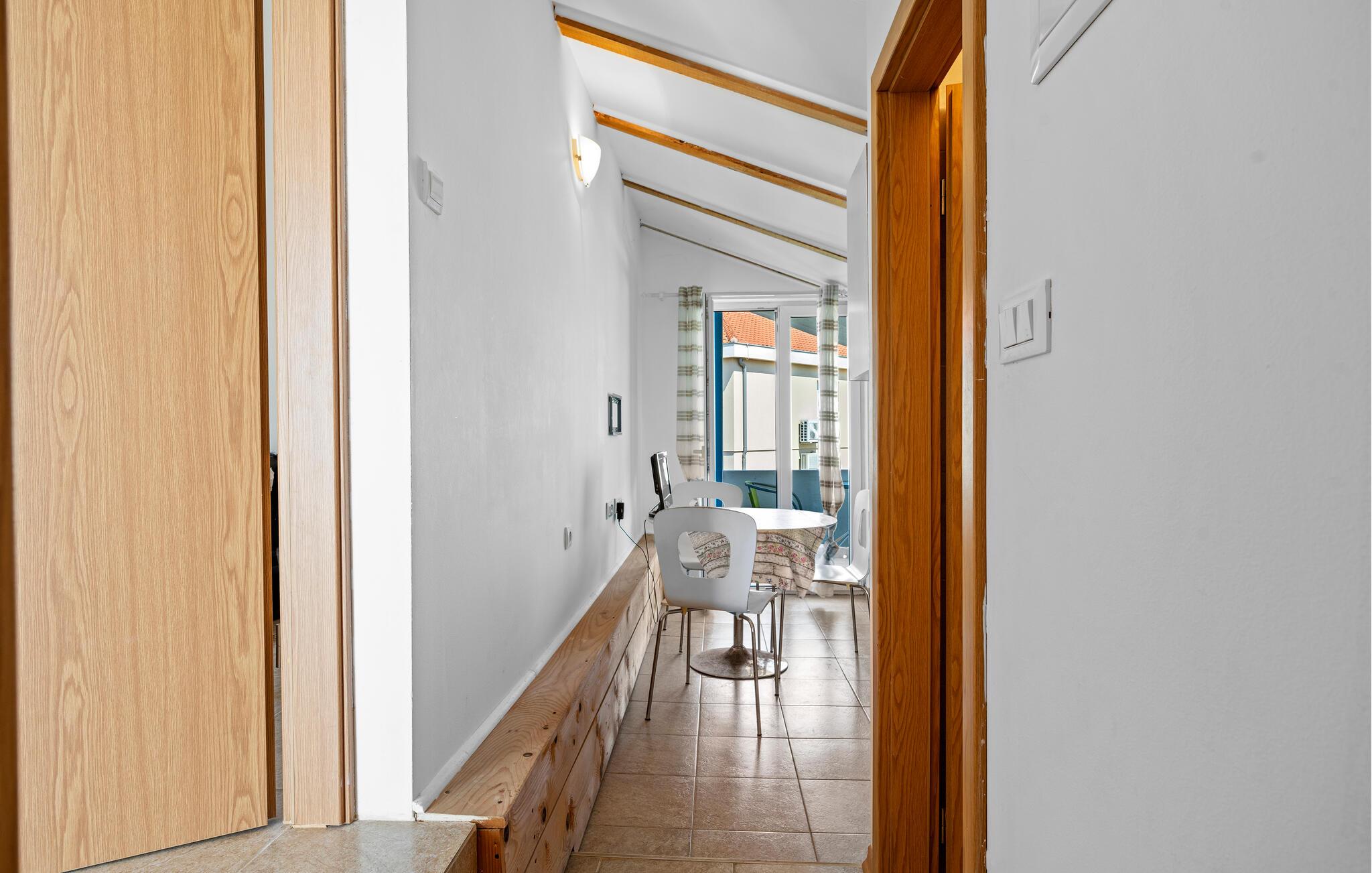 Denne smukke penthouselejlighed byder jer velkommen i første række ved havet og tilbyder et hyggeligt hjem, mens I udforsker denne charmerende region. Brug det funktionelle køkken til at tilberede små måltider, forsyninger til jeres udflugter eller en picnic til stranden. Planlæg jeres aktiviteter ved spisebordet og synk ned i den komfortable sofa med en god bog eller en film efter en lang dag.