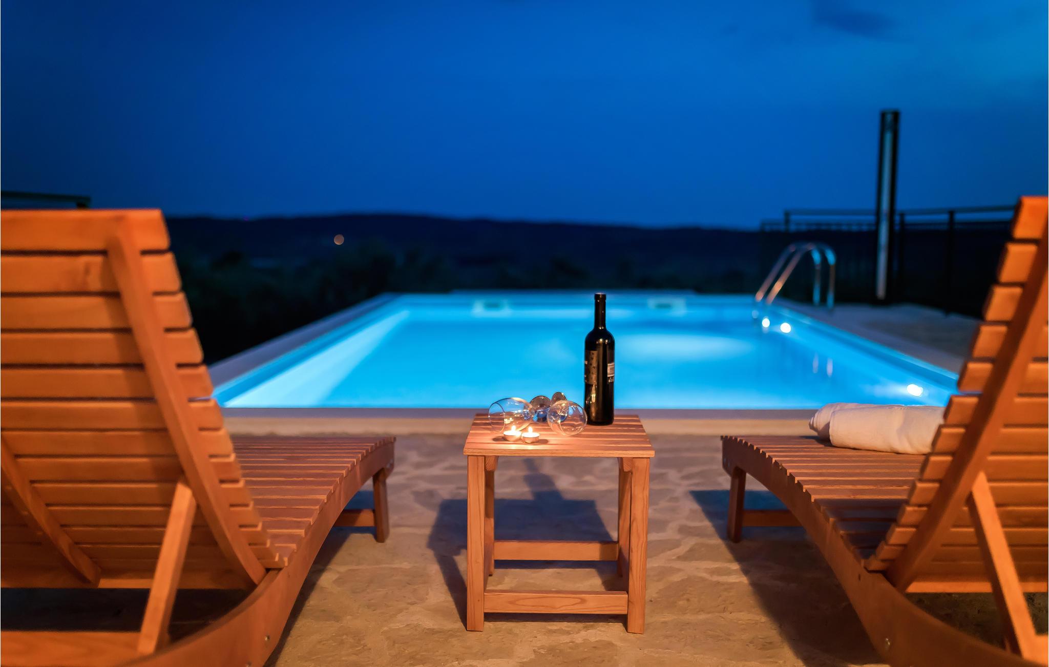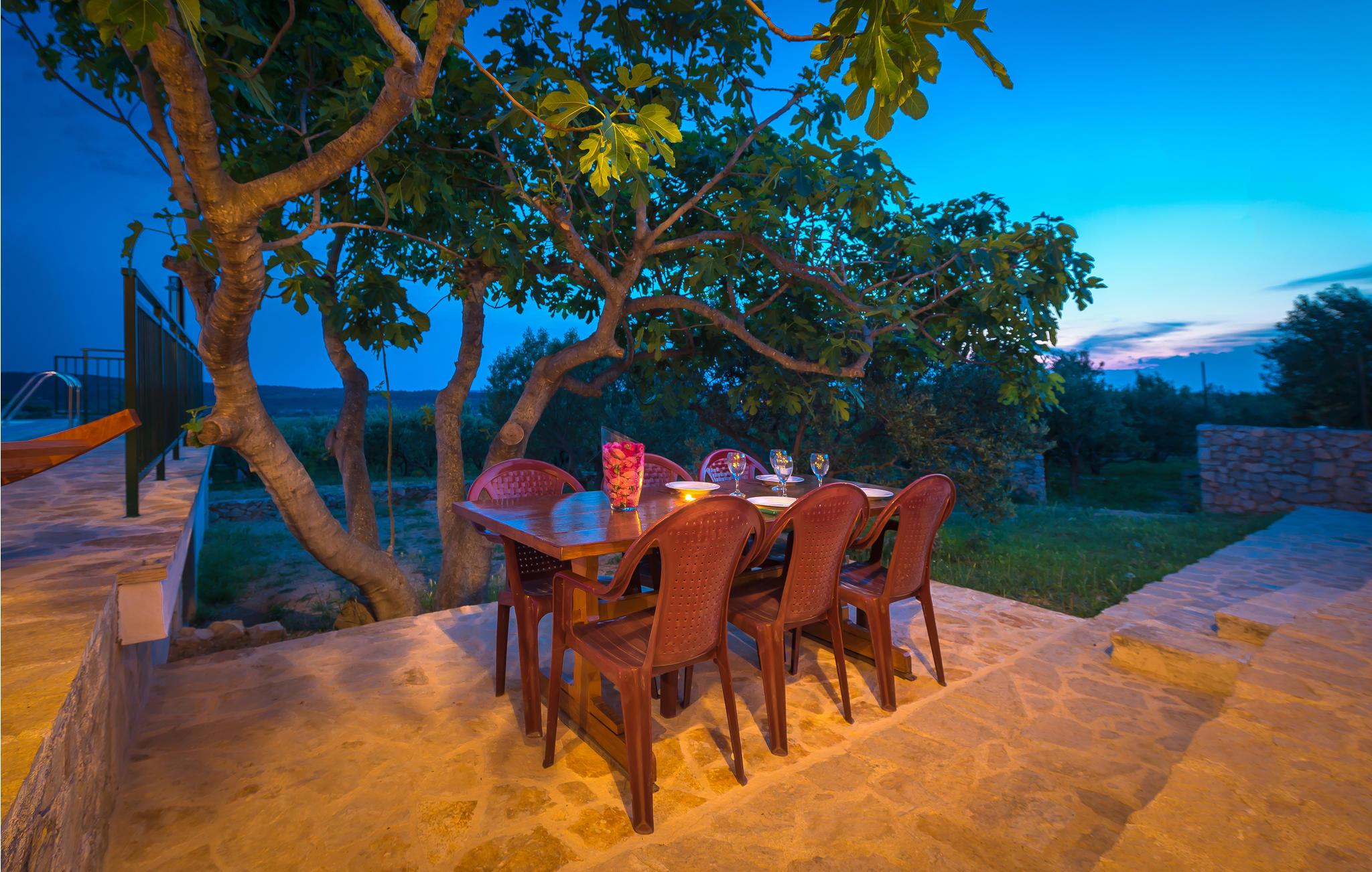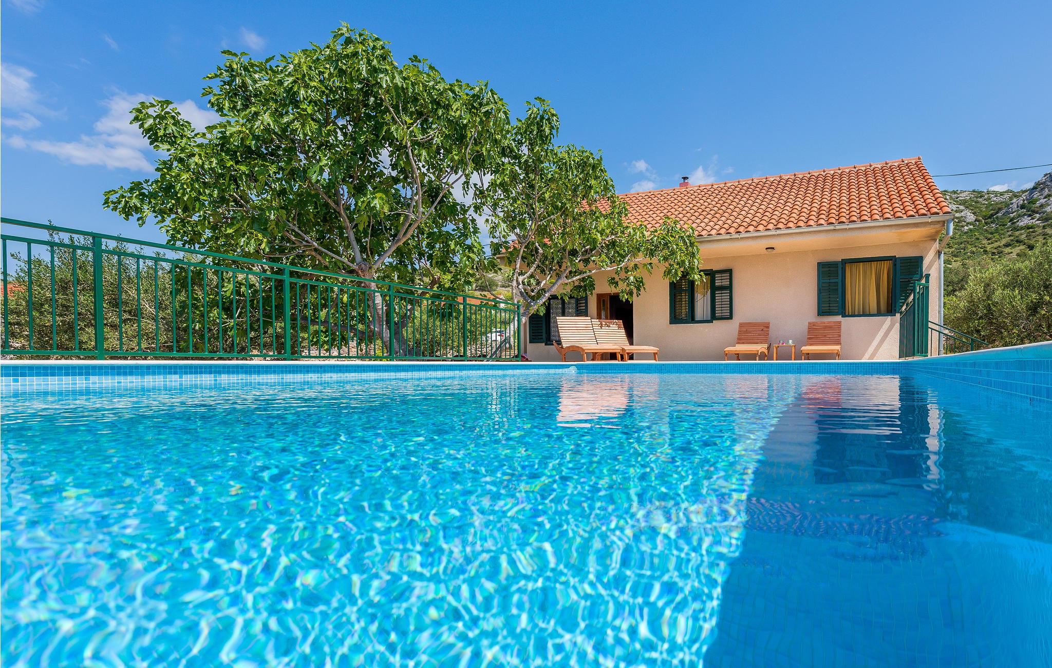 Dette funktionelle feriehus ligger i Donje Polje, ikke langt fra Sibenik. Her har I en stor grund til rådighed, som er overgroet af herligt grønt som oliventræer, vinranker, figentræer og meget andet. Slap af på terrassen efter en svømmetur i poolen og nyd der den herlige panoramaudsigt til bugten af Morinje. Her, langt fra byens glødende asfalt, kan I ånde ren luft, lyt til fuglenes kvidren og nyde jeres ferie helt uforstyrret. Besøg også de kulturelle seværdigheder og smag på de rige gastronomiske tilbud i den historiske by Sibenik og resten af regionen. På nabogrunden ligger feriehuset CDJ639, der også har privat swimmingpool.