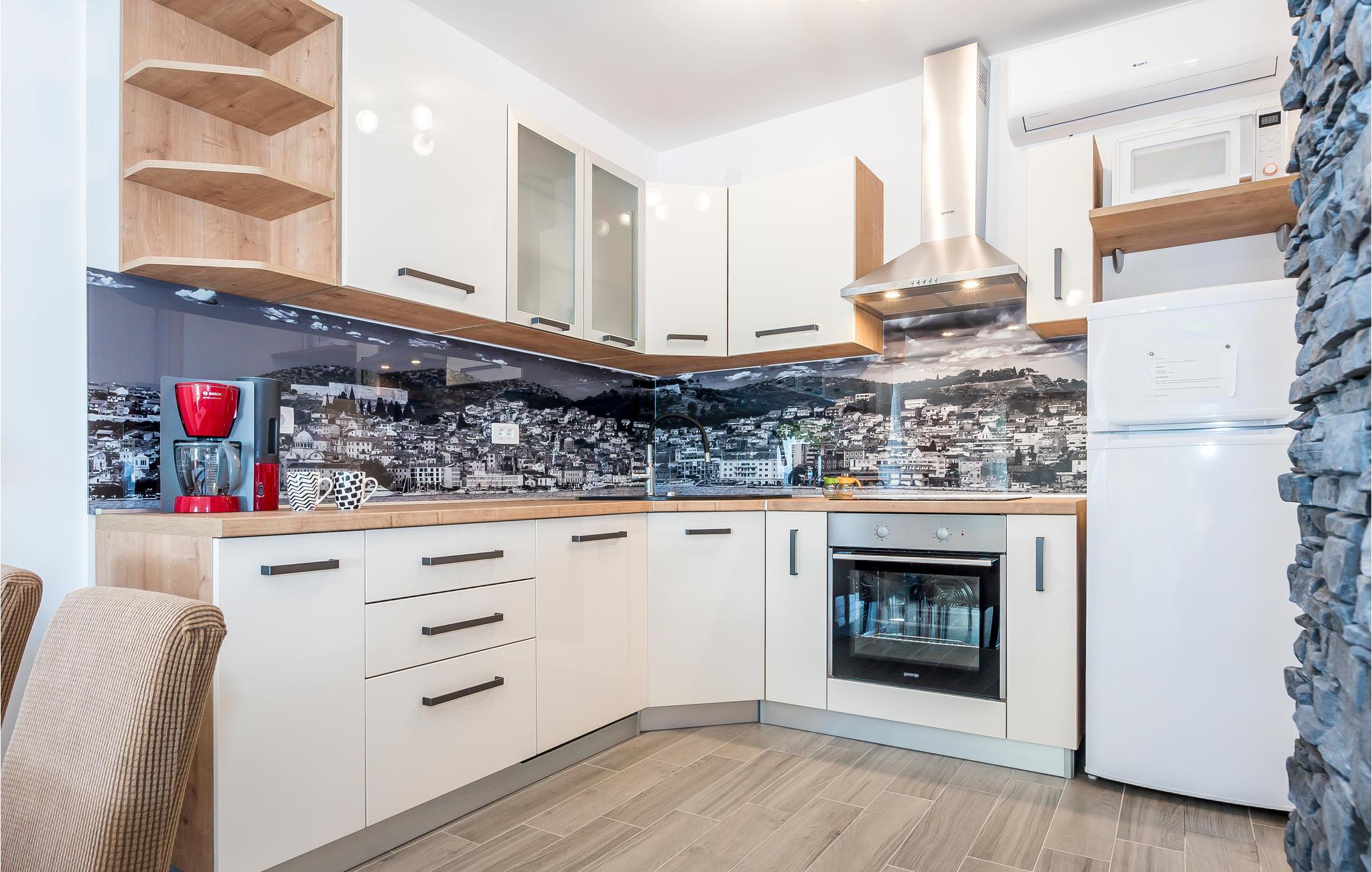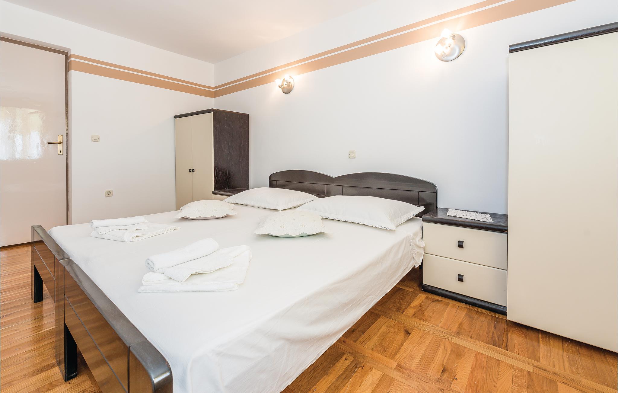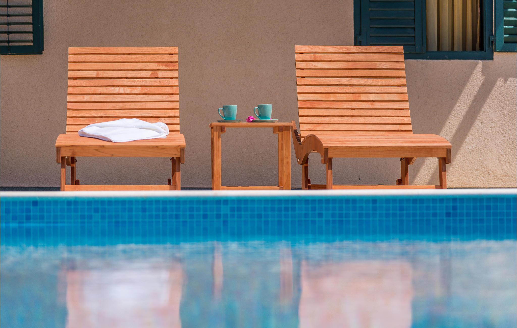 Dette funktionelle feriehus ligger i Donje Polje, ikke langt fra Sibenik. Her har I en stor grund til rådighed, som er overgroet af herligt grønt som oliventræer, vinranker, figentræer og meget andet. Slap af på terrassen efter en svømmetur i poolen og nyd der den herlige panoramaudsigt til bugten af Morinje. Her, langt fra byens glødende asfalt, kan I ånde ren luft, lyt til fuglenes kvidren og nyde jeres ferie helt uforstyrret. Besøg også de kulturelle seværdigheder og smag på de rige gastronomiske tilbud i den historiske by Sibenik og resten af regionen. På nabogrunden ligger feriehuset CDJ639, der også har privat swimmingpool.