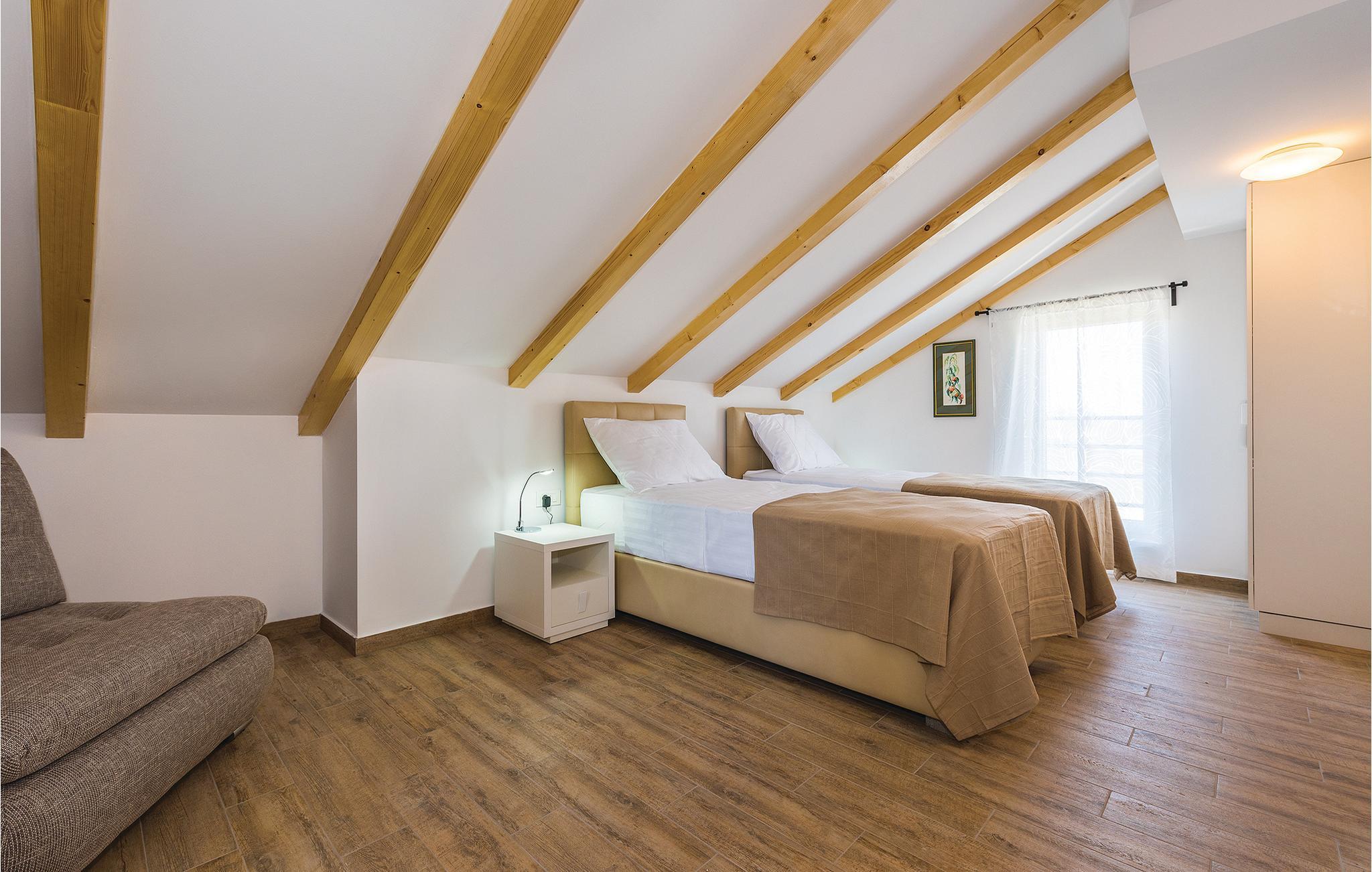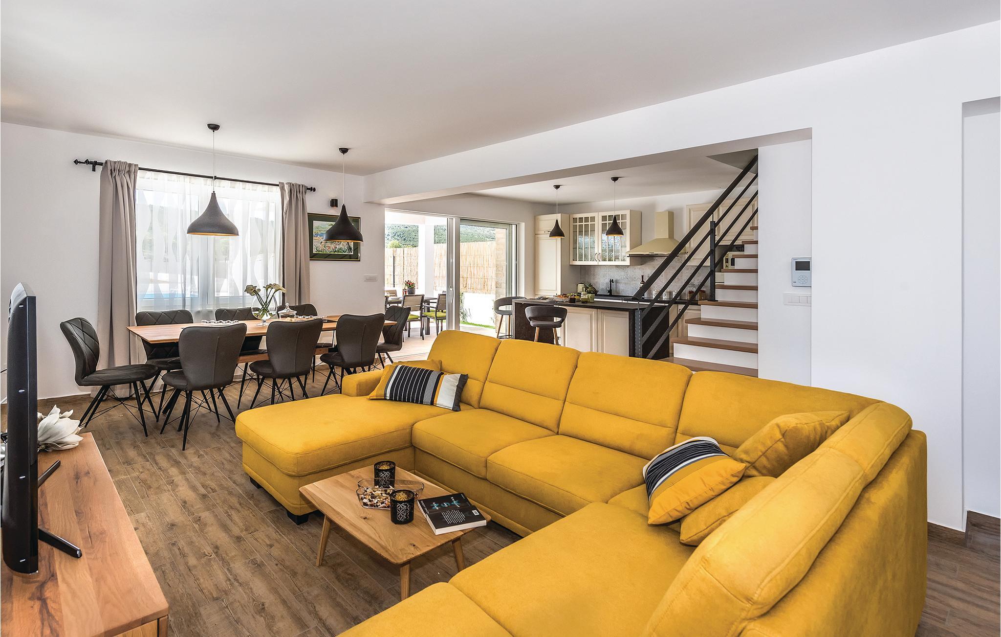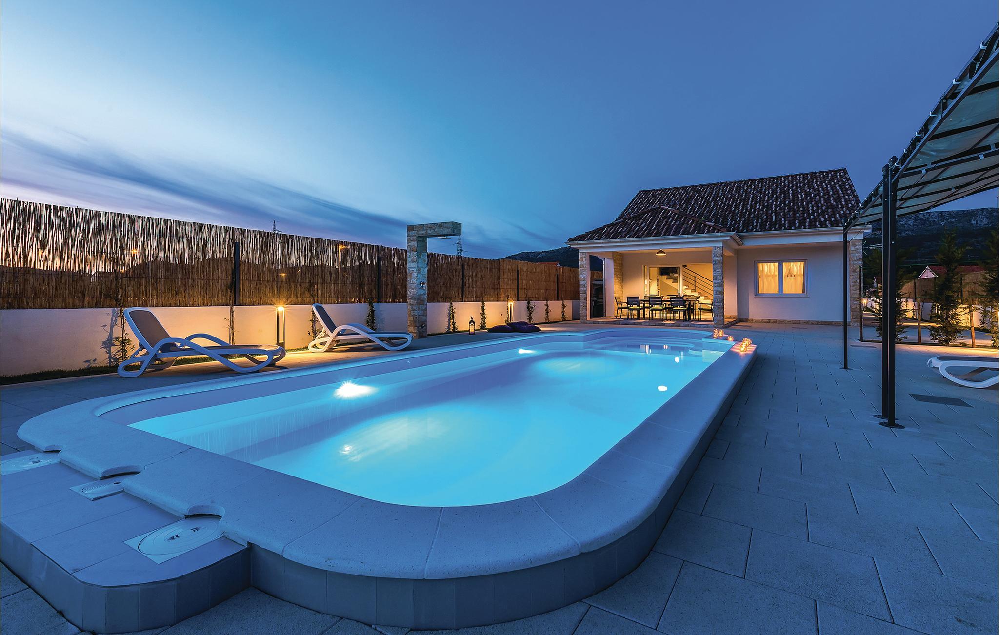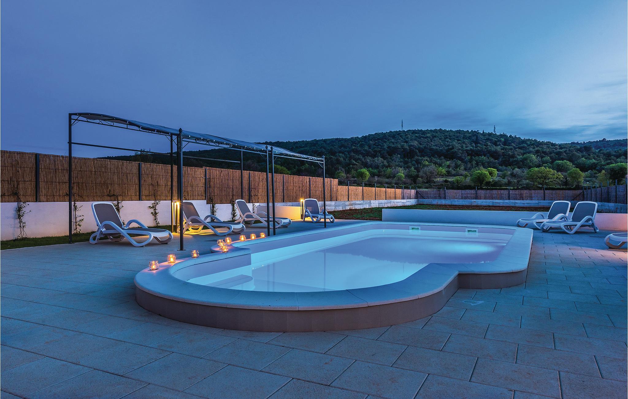 Dette luksuriøse feriehus med pool ligger i Dubrava, i nærheden af Šibenik. Omringet af natur og placeret på en stor grund, er dette hus perfekt til en afslappet ferie med familie og venner. Huset har to etager med indendørstrapper. På terrassen med poolen står der også en grill. Har I lyst til underholdning, er der et stort tilbud af forskellige arrangementer i byen Šibenik. Her kan I også besøge katedralen Sv. Jakov (UNESCO verdenskulturarv), såvel som den renoverede fæstning med spektakulær udsigt. Ca. 4 km fra huset ligger Solaris Beach-Resort. Her kan I slappe af ved fantastiske strande eller nyd et stort tilbud af sport- og fritidsaktiviteter på et stort areal. Gå ikke glip af heldagsudflugter til nationalparken Krka og Kornati.