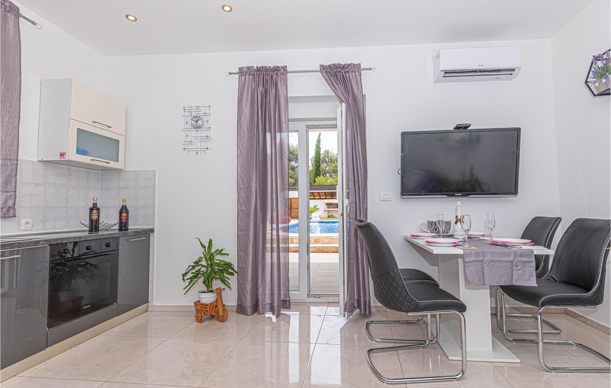 I den rolige by Dubrava nær Šibenik finder I denne rummelige og pænt møblerede lejlighed. Lejligheden ligger i stueetagen i et familiehus og har alt hvad I behøver for en behagelig ferie. I gården giver swimmingpoolen, som kun er tilgængelig for jer, mulighed for at slappe af og tage en forfriskende dukkert på varme sommerdage. Tilbring hyggelige timer på terrassen med grill, hvor I kan tilberede jeres lækre lokale råvarer om aftenen. I huset er der også en bar, der indbyder til middage og festlige arrangementer.