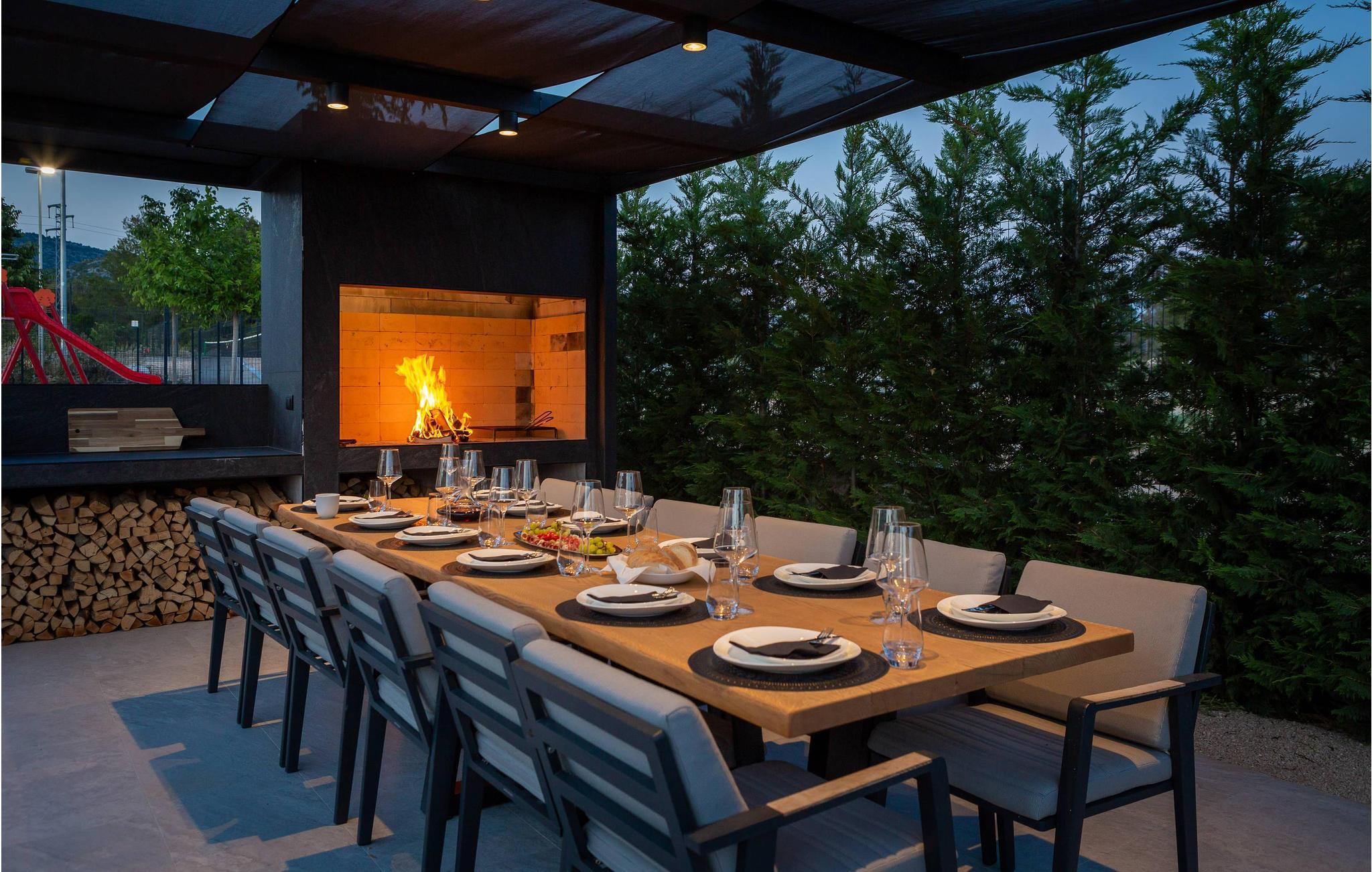 Huset ligger på en stor grund med en frugtplantage, hvor børnene kan finde masser af plads til at lege. Med gynge, legehus og rutsjebane bliver det garanteret ikke kedeligt på ferien. På varme dage tilbyder den private udendørs pool afkøling. Der er tre terrasser ved huset, så I altid kan finde et sted at slappe af i solen.