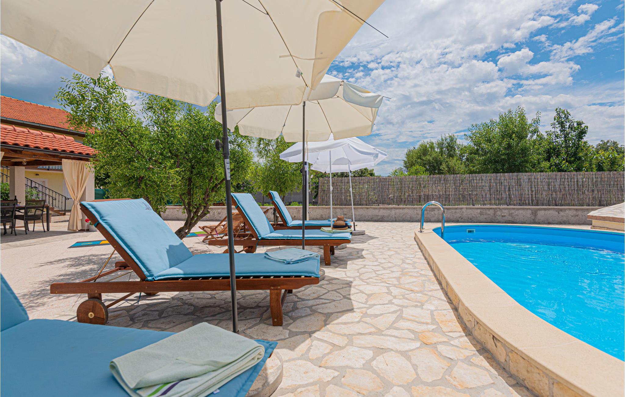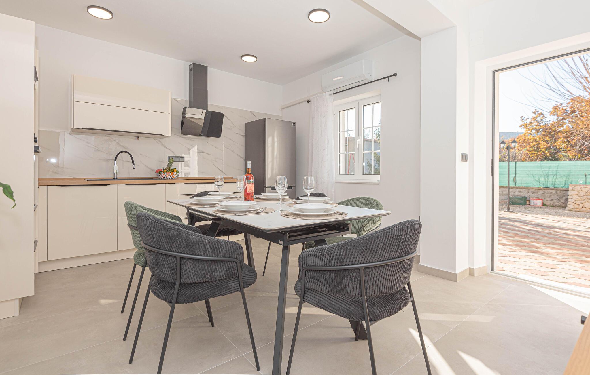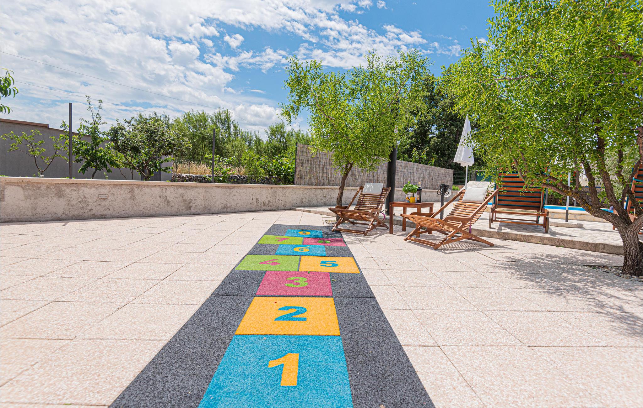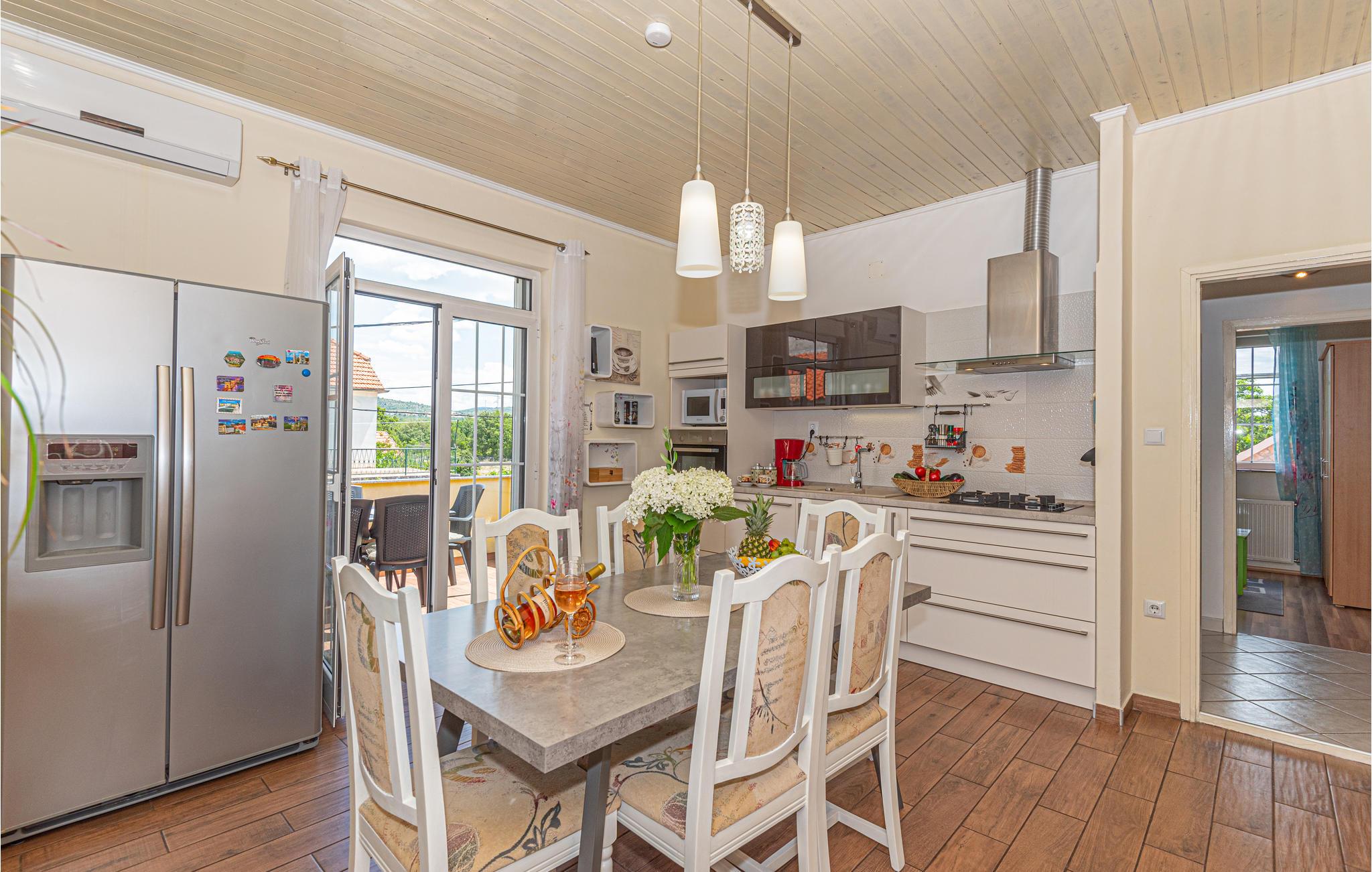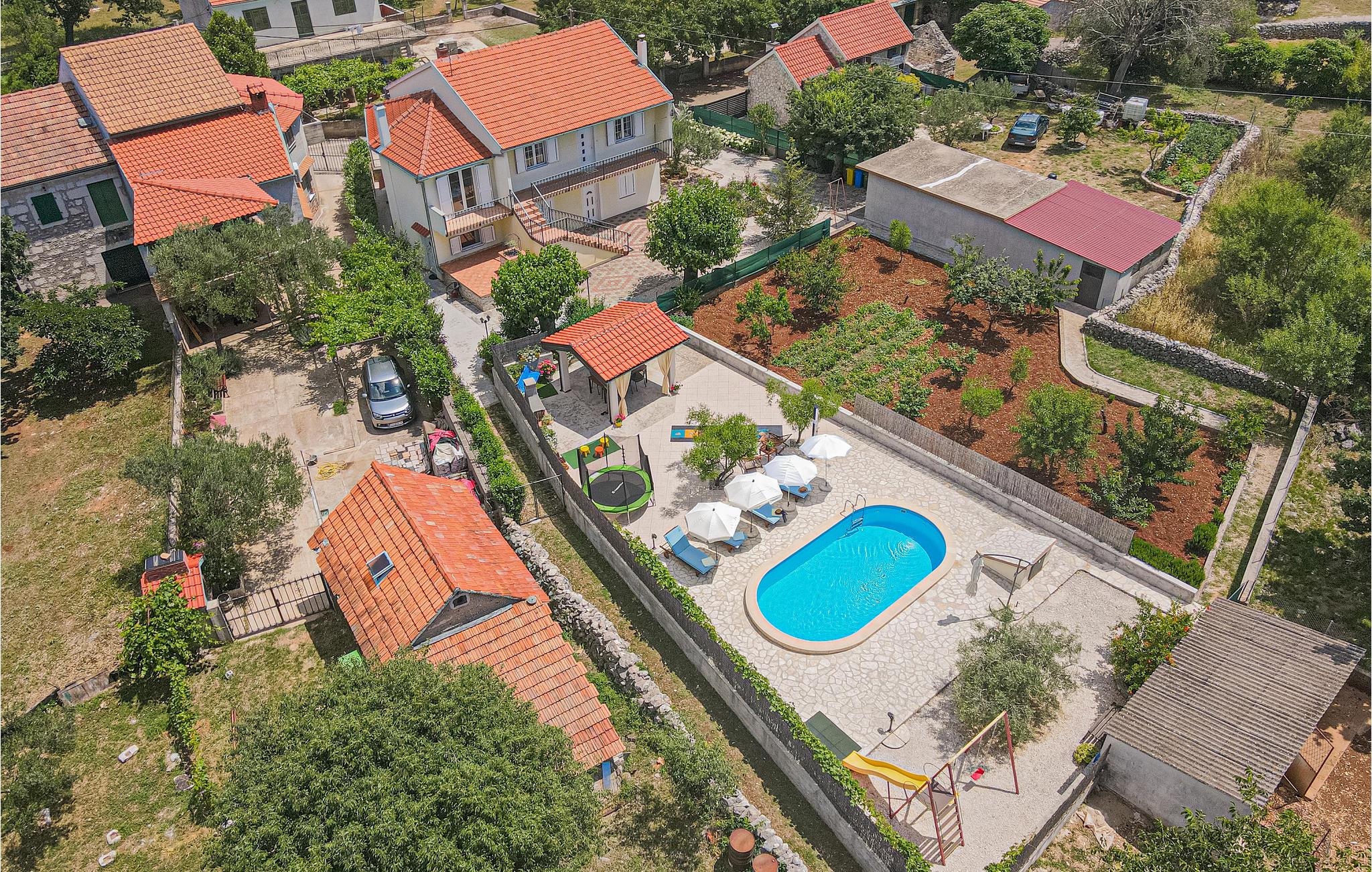 Den hyggelige bolig i Dubrava, nær Šibenik, byder med sin varme atmosfære og praktiske indretning på de perfekte rammer for en afslappende familieferie. Opholdsområdet med et åbent køkken inviterer til hyggelige stunder sammen, mens soveværelserne på øverste etage sørger for ro og komfort. Et lille fitnessrum giver mulighed for aktiv afveksling, og den forfriskende udendørspool er perfekt til varme sommerdage. I havepavillonen kan I tilberede regionale specialiteter på grillen og nyde aftenen i afslappet stemning.