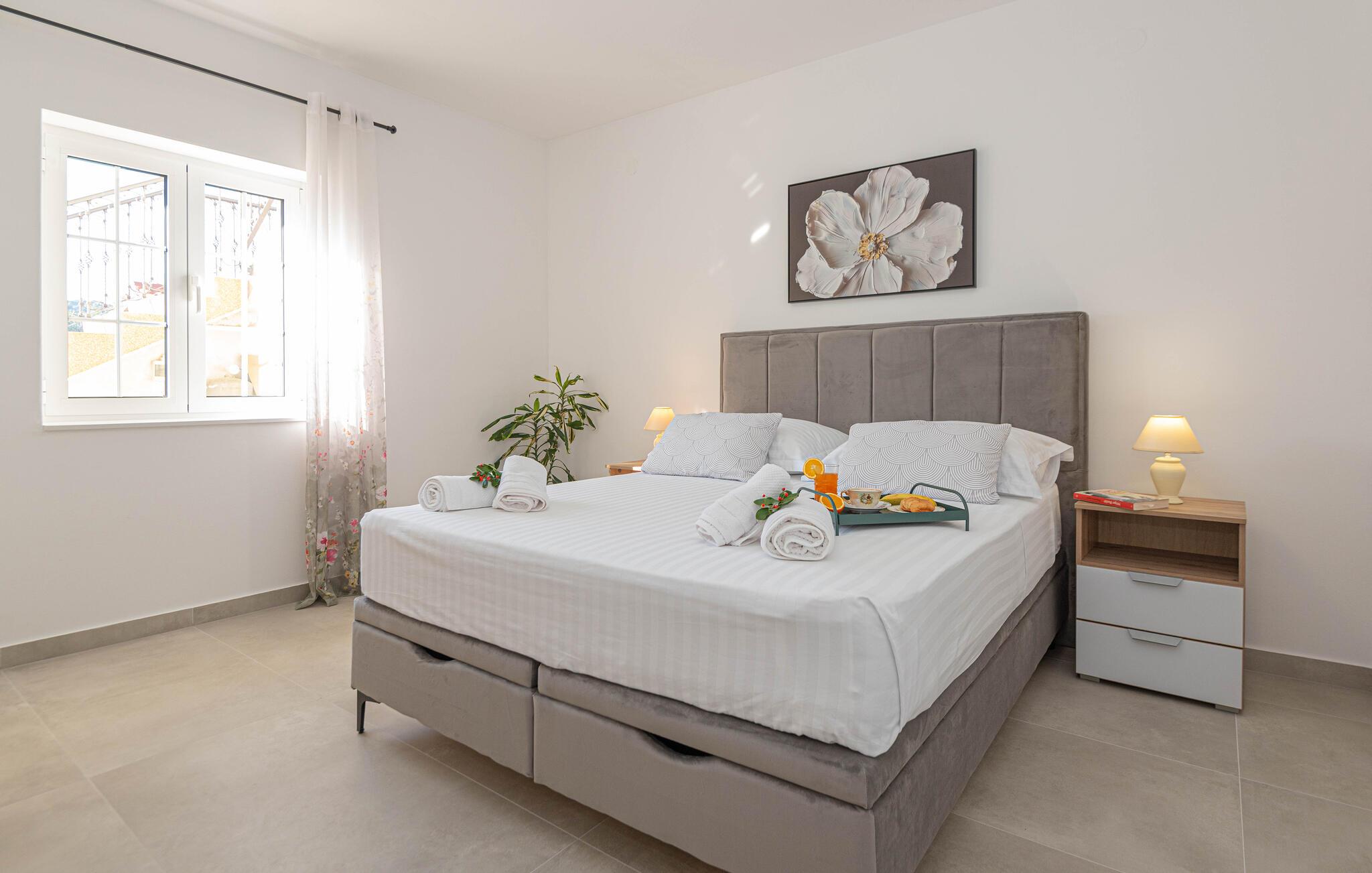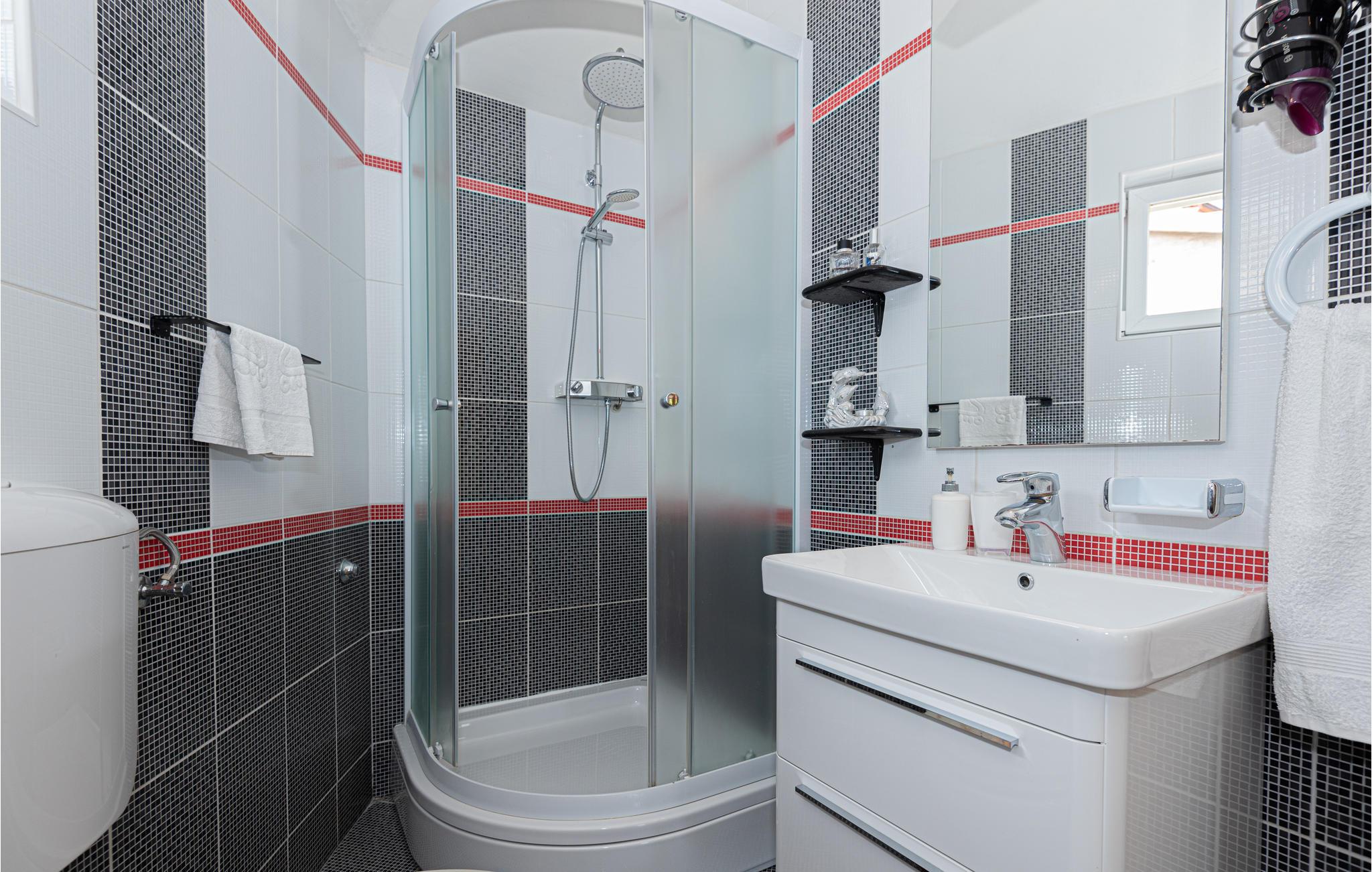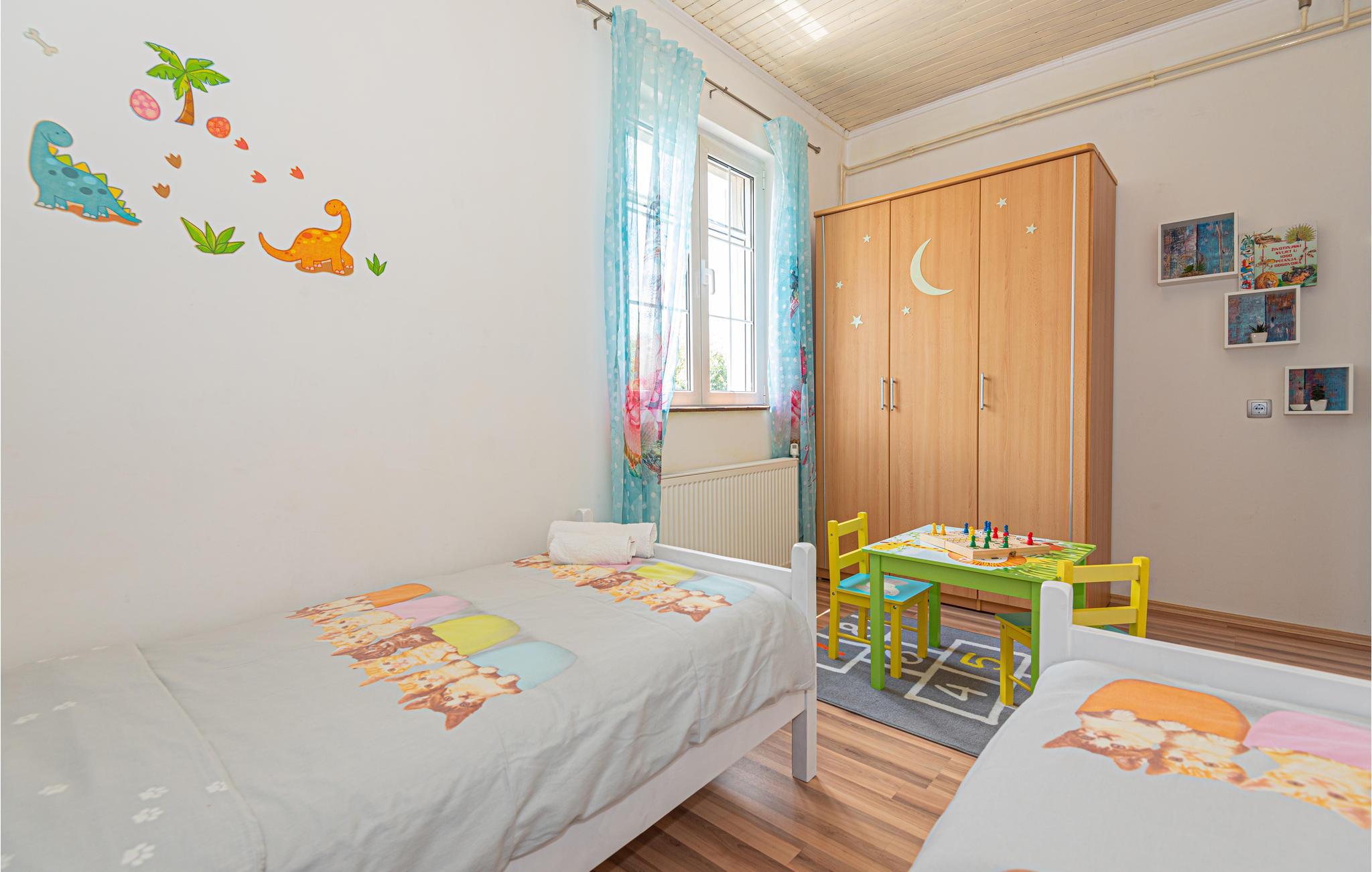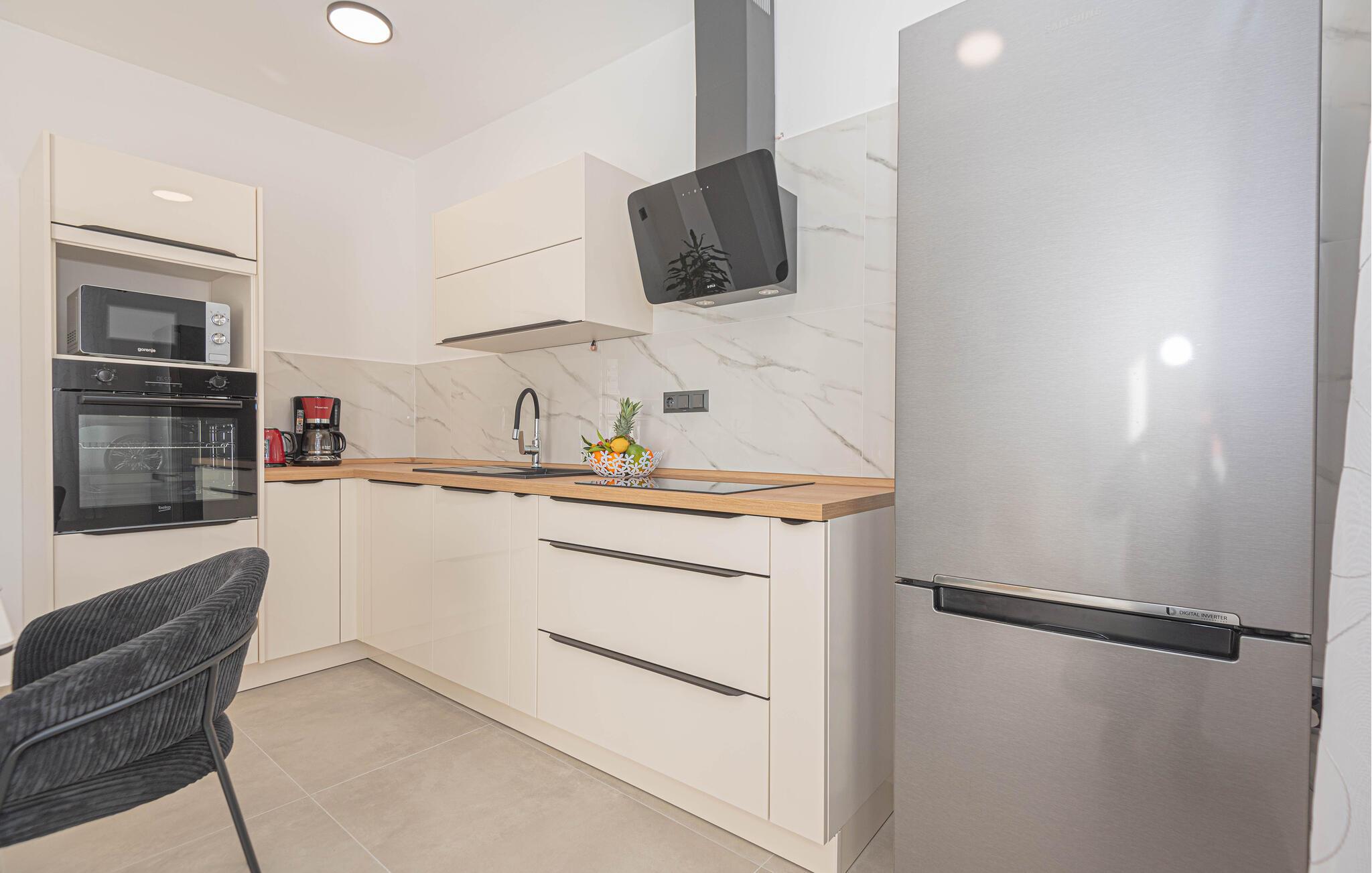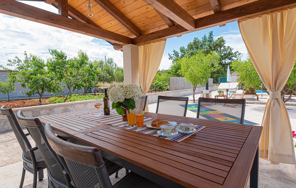 Den hyggelige bolig i Dubrava, nær Šibenik, byder med sin varme atmosfære og praktiske indretning på de perfekte rammer for en afslappende familieferie. Opholdsområdet med et åbent køkken inviterer til hyggelige stunder sammen, mens soveværelserne på øverste etage sørger for ro og komfort. Et lille fitnessrum giver mulighed for aktiv afveksling, og den forfriskende udendørspool er perfekt til varme sommerdage. I havepavillonen kan I tilberede regionale specialiteter på grillen og nyde aftenen i afslappet stemning.