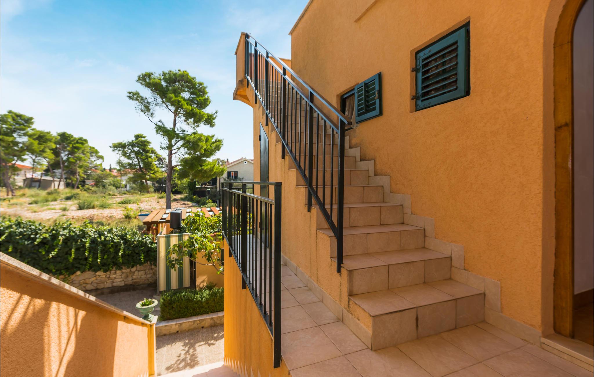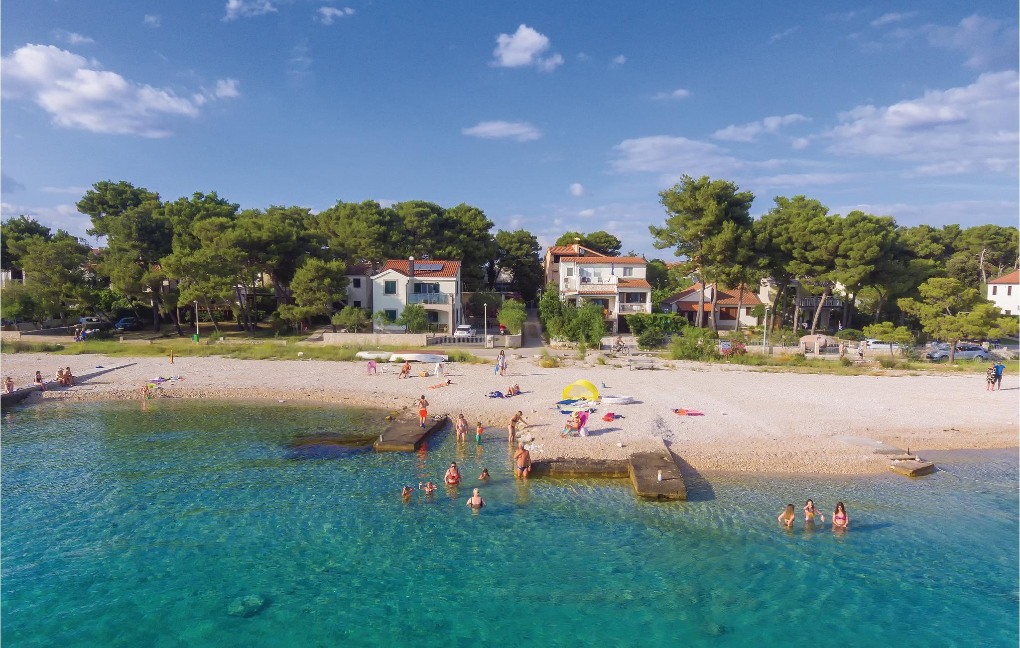 Funktionelt og komfortabelt indrettede ferielejligheder i Jadrija, tæt på havet. Fra jeres terrasser har I en herlig udsigt til havet, den nært beliggende ø Prvic, stranden og den fælles pool i gården, der er omgivet af grønt. Jadrija er en traditionsrig badeby, der er berømt for sine dejlige strande med krystalklart vand. En anbefaling værd er en bådstur og en udflugt fra Sibenik til fæstningen Sankt Nikolaus på øen. Den er en af fire fæstninger fra middelalderen, der har beskyttet byen. På stedet bliver der arrangeret mange fester, og I kan spise godt. Den mindste loftshøjde i CDJ129 er 120 cm.