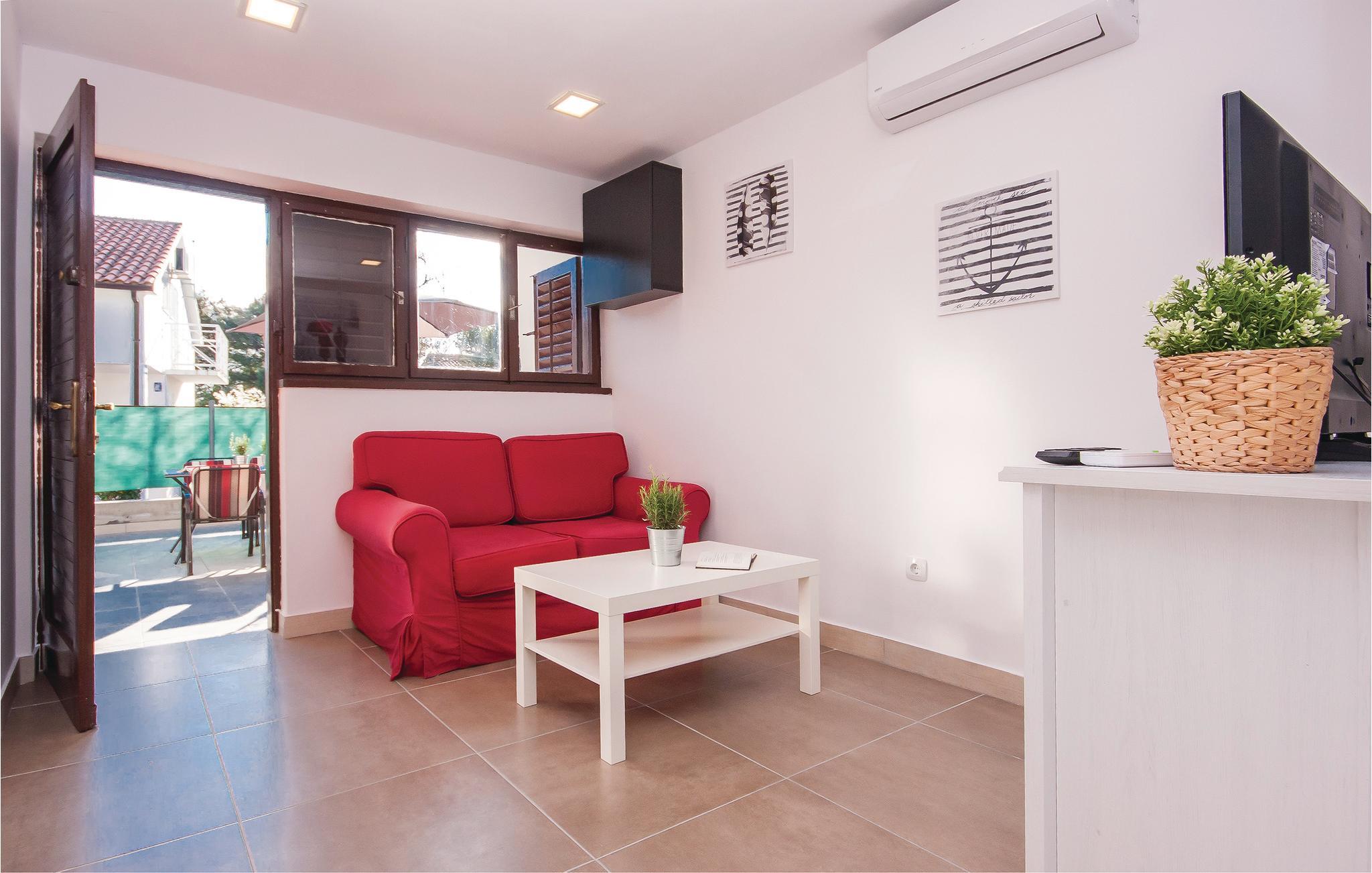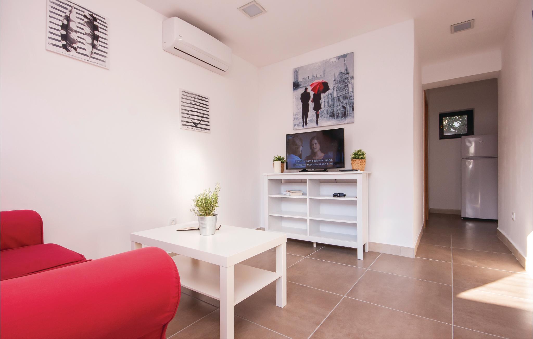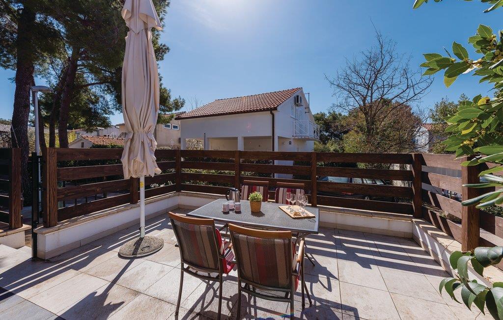 Denne meget enkelt og praktisk indrettede ferielejlighed ligger i Jadrija, ligger i stueplan i en familieejendom, der er omgivet af en dejlig have. Til lejligheden hører hele to terrasser, hvoraf den ene er overdækket og dejlig på de varme dage. I nærheden ligger en kiesstrand, der er populær blandt børnefamilier. Skønne strande, forskellige sportsanlæg, restauranter og taverne samt mange former for liveunderholdning venter jer i denne lille by, hvor alle kan blive underholdt uanset alder. Vi kan anbefale jer at besøge nationalparkerne Krka og Kornati, og den nærliggende historiske by Šibenik.