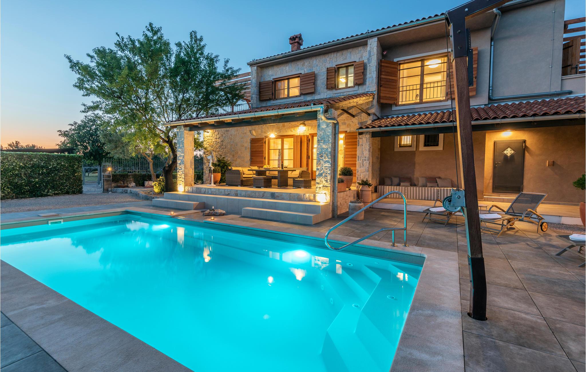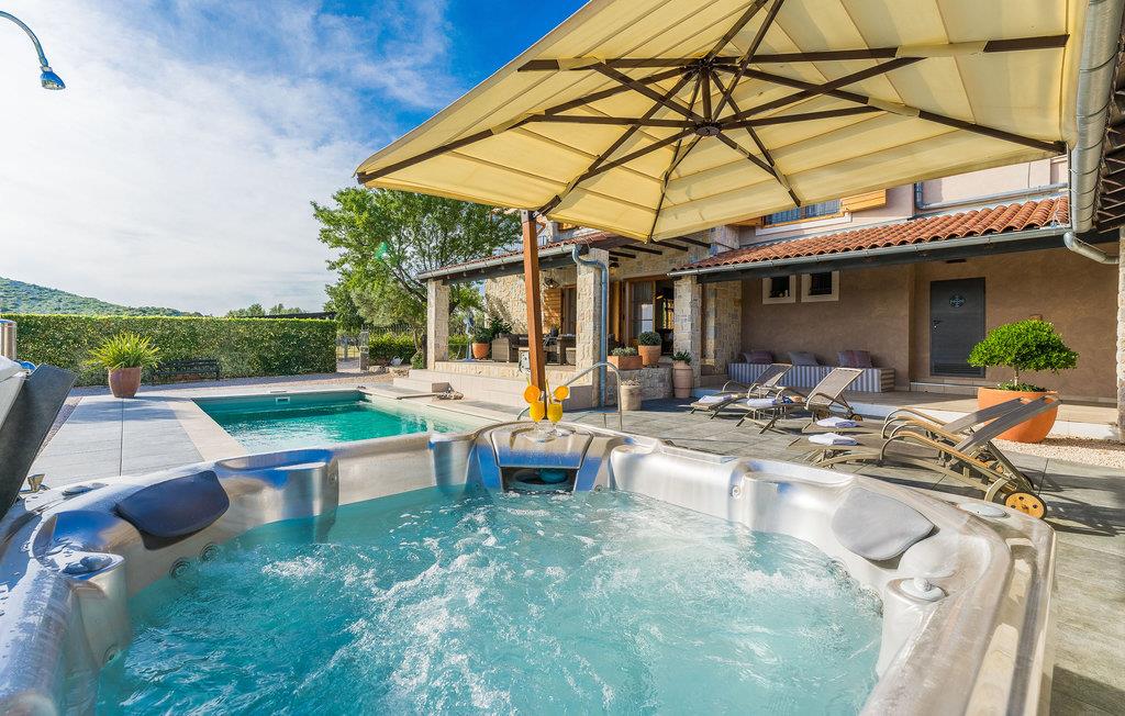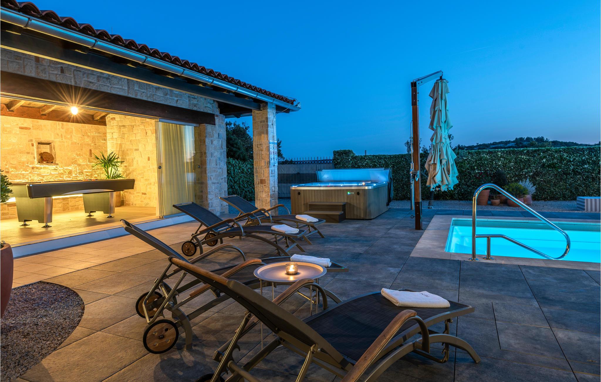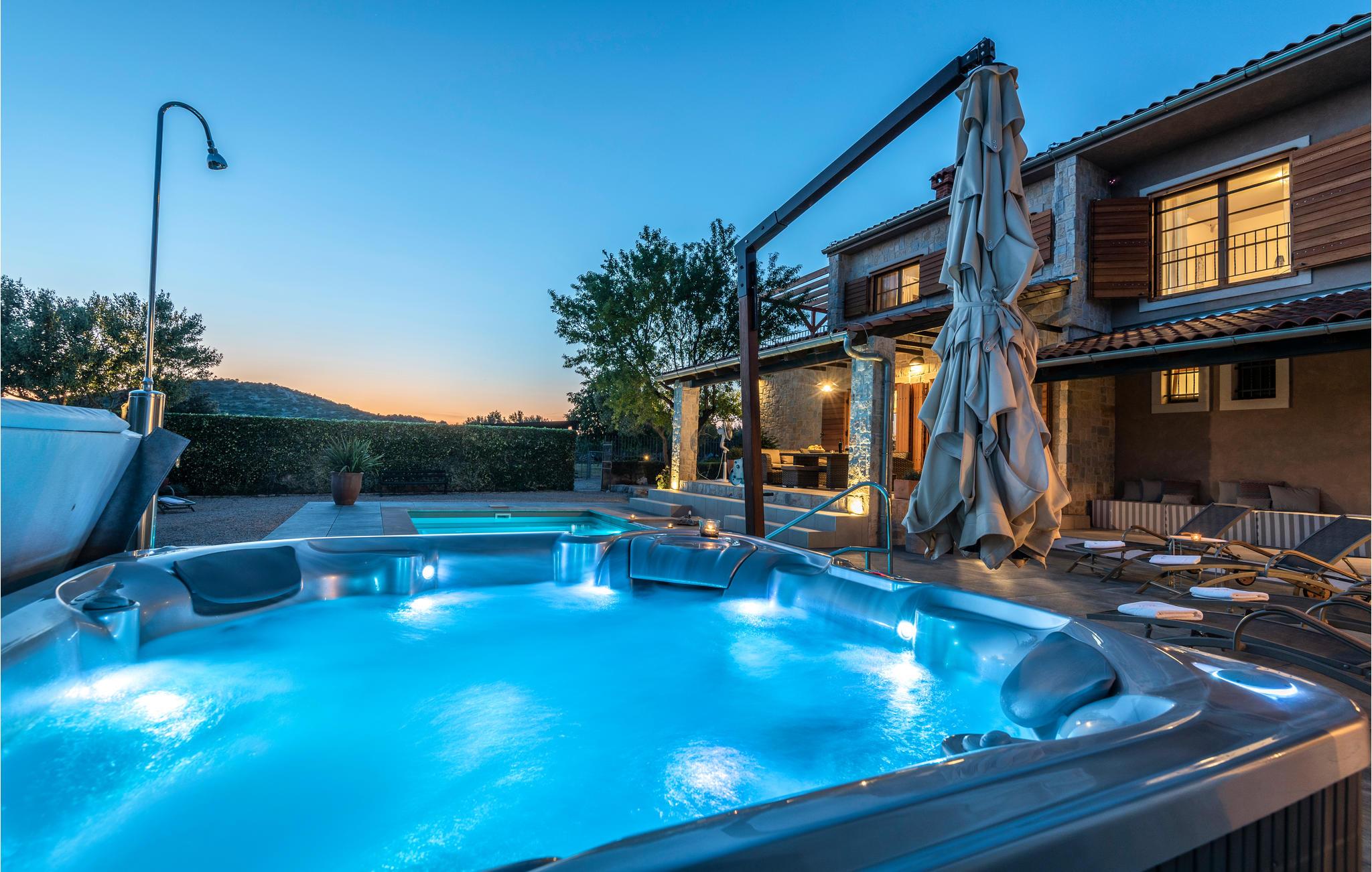 Ud over husets stilfulde og moderne interiør får I også en stor naturgrund med komfortable faciliteter såsom en swimmingpool og jacuzzi. Udendørsarealet er udformet som en middelhavspark og byder på en række sports- og børnefaciliteter for hele familien.