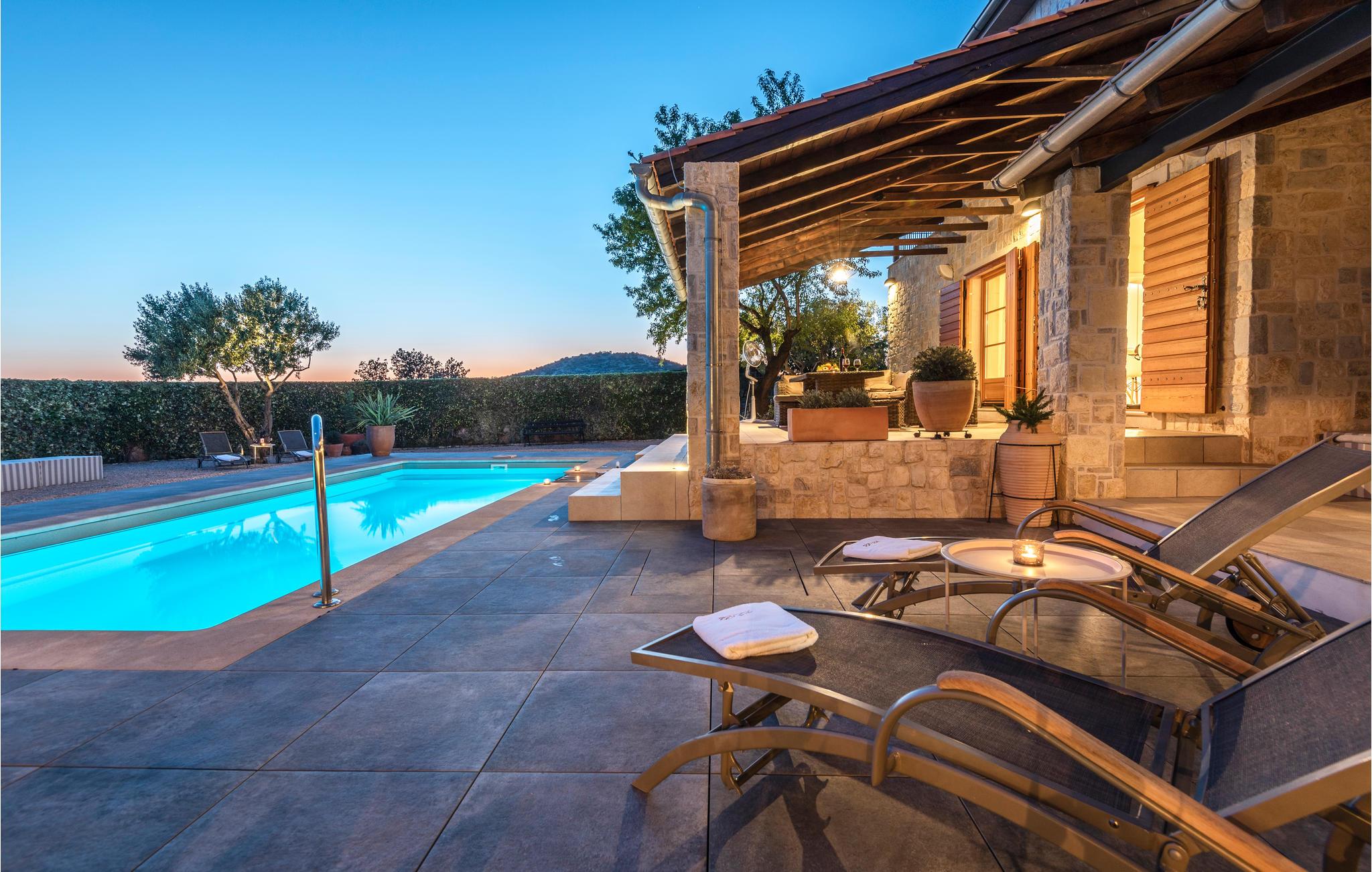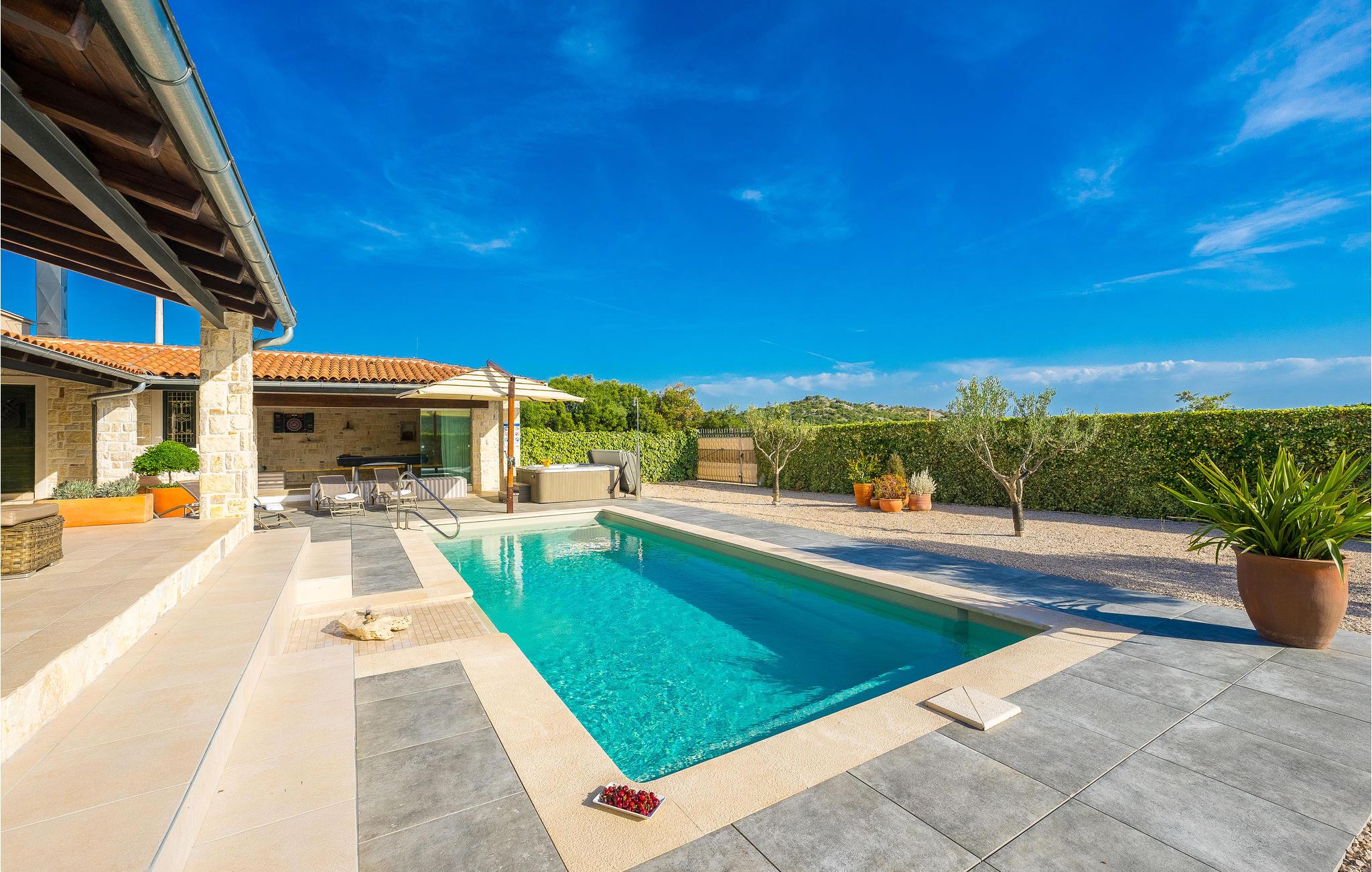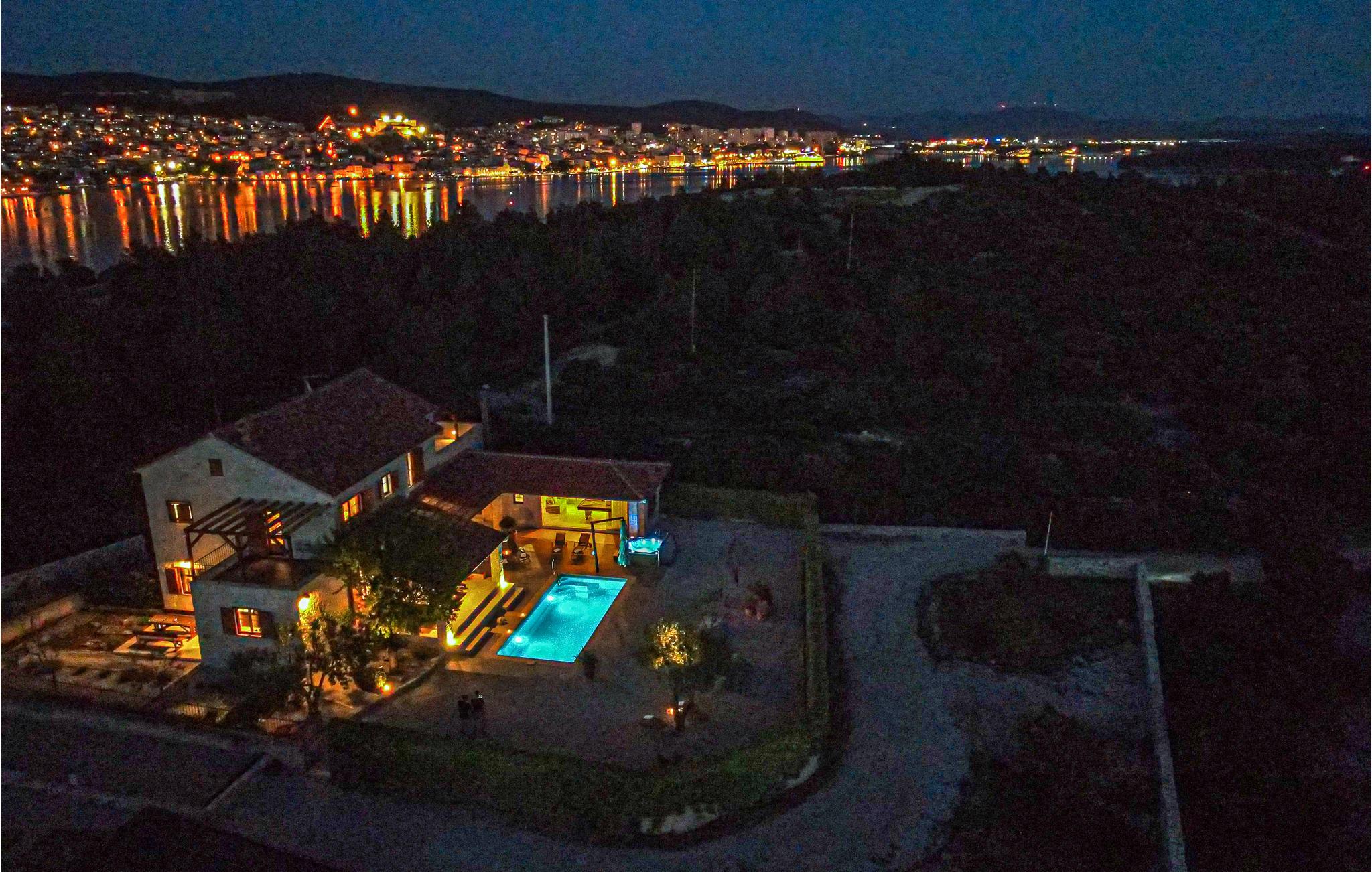 Der er kun 800 meter fra huset til den nærmeste strand. Stranden Martinska er omgivet af en fyrreskov og byder på en smuk udsigt over byen Šibenik. Herfra kan I komme til Šibenik med båd på få minutter. I bor 3 km fra byens strand i Jadrija. Ud over de smukke strande finder I her i sommersæsonen adskillige restauranter, caféer, pizzeriaer, et konditori, en lille butik og et bageri. Hvis I ønsker kulturelle udflugter, kan I besøge Vodice, 8 km derfra, eller Šibenik, 12 km derfra. Besøg også de betagende vandfald i Krka National Park og oplev paradisøerne i Kornati National Park.