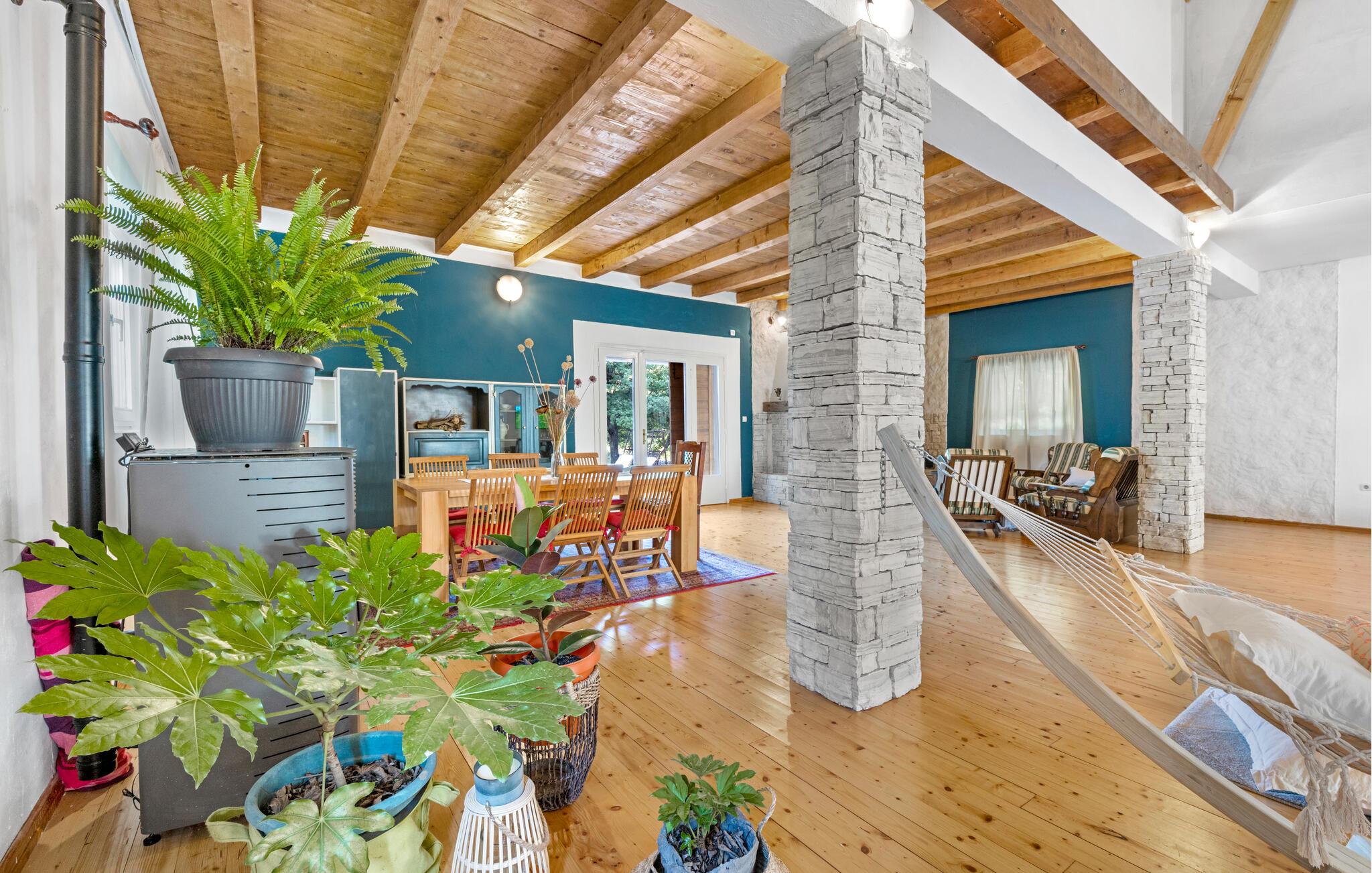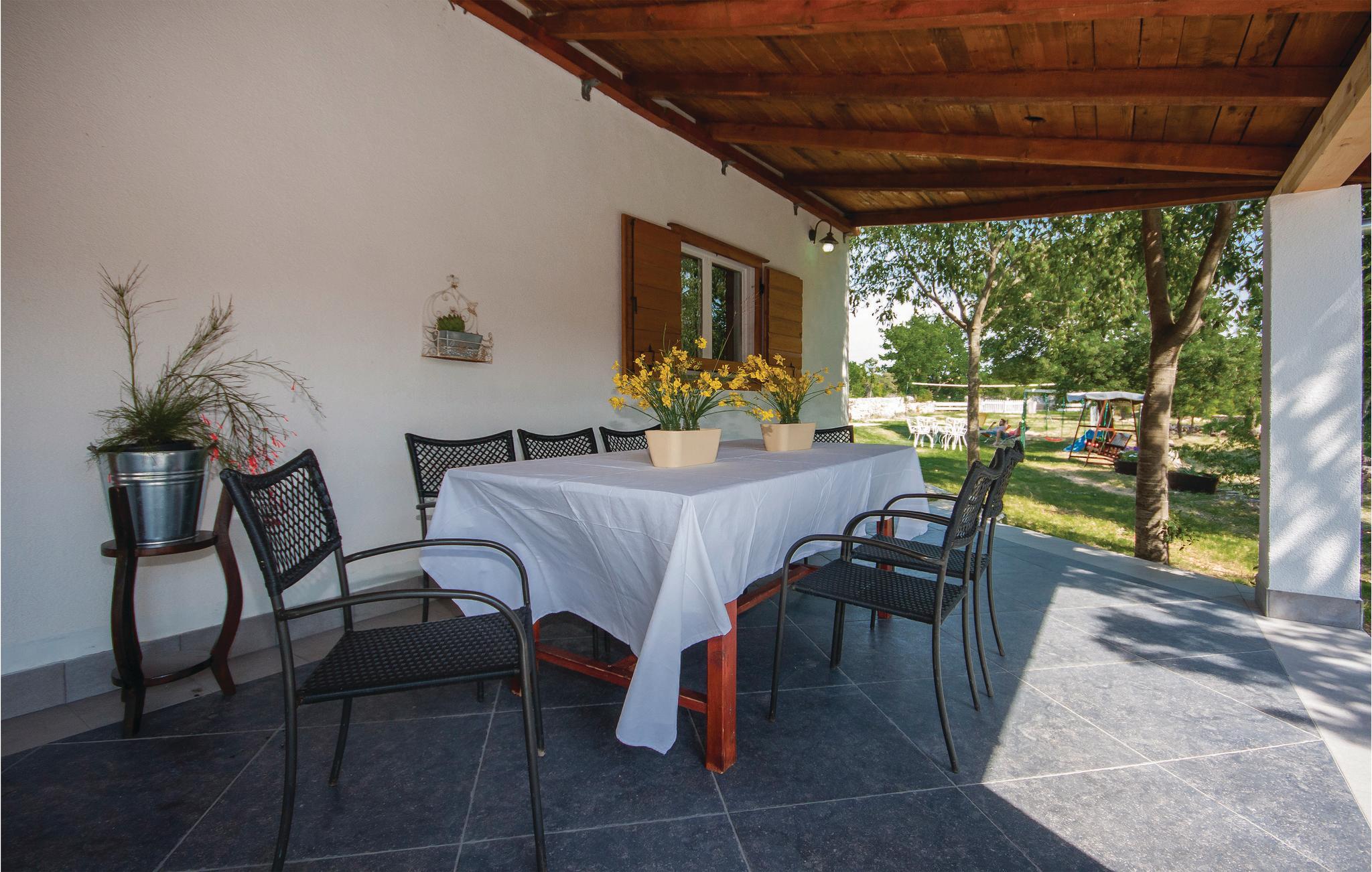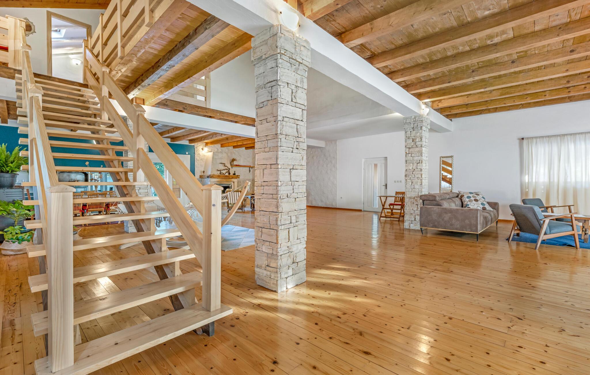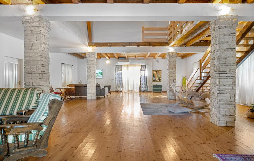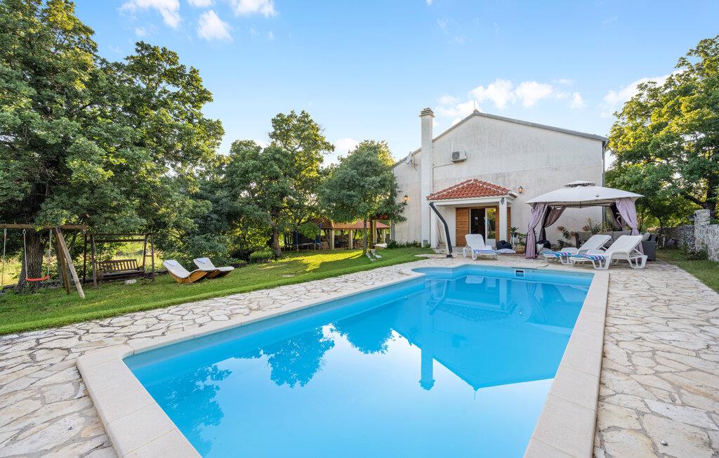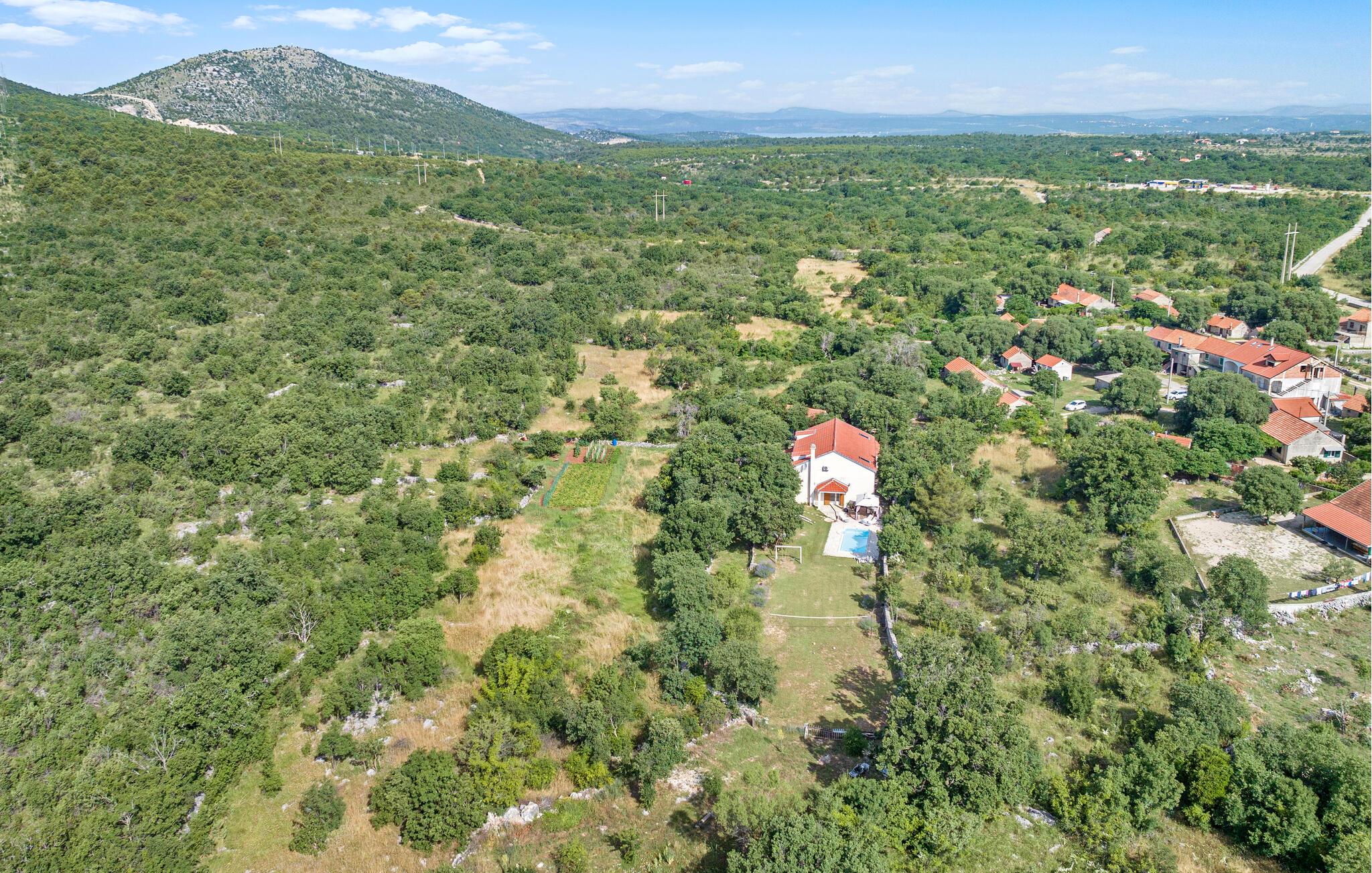 Dette komfortable og rustikt indrettede feriehus er med sin størrelse helt ideelt til store familier, som gerne vil holde ferie langt væk fra hverdagens stress og jag og slappe af uden at blive forstyrret. På grunden er der også en lækker swimmingpool, som lokker til en forfriskende dukkert. I stueplan imponerer huset med sit store spiseområde, hvor I alle sammen med garanti hurtigt finder jer en yndlingsplads! Her kan I sidde og nyde jeres måltider i fulde drag, mens snakken går. En trætrappe fører jer op til soveområdet. Derudover er der et lille tekøkken, hvor I kan tilberede jer et lille morgenmåltid. Til ejendommen hører der også nogle separate huse, hvor I finder en Konoba, en stengrill og et køkken. Fra den overdækkede terrasse kan I nyde den fantastiske udsigt. Har I lyst til at opleve naturen, er det oplagt at besøge nationalparken Krka, som kun ligger 2 km. fra huset. Særligt attraktiv er også udsigtstårnet, fra hvilket I både kan se nationalparken Kornati og øgruppen i ?ibenik.