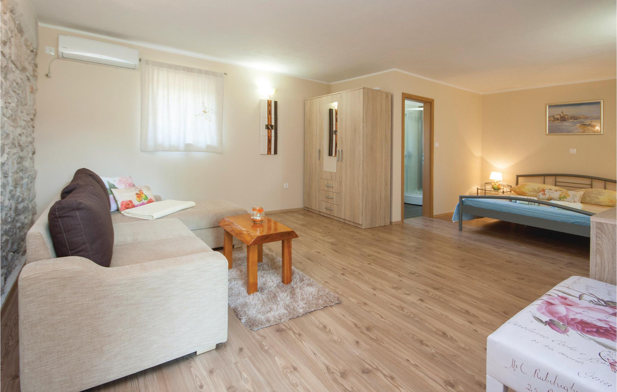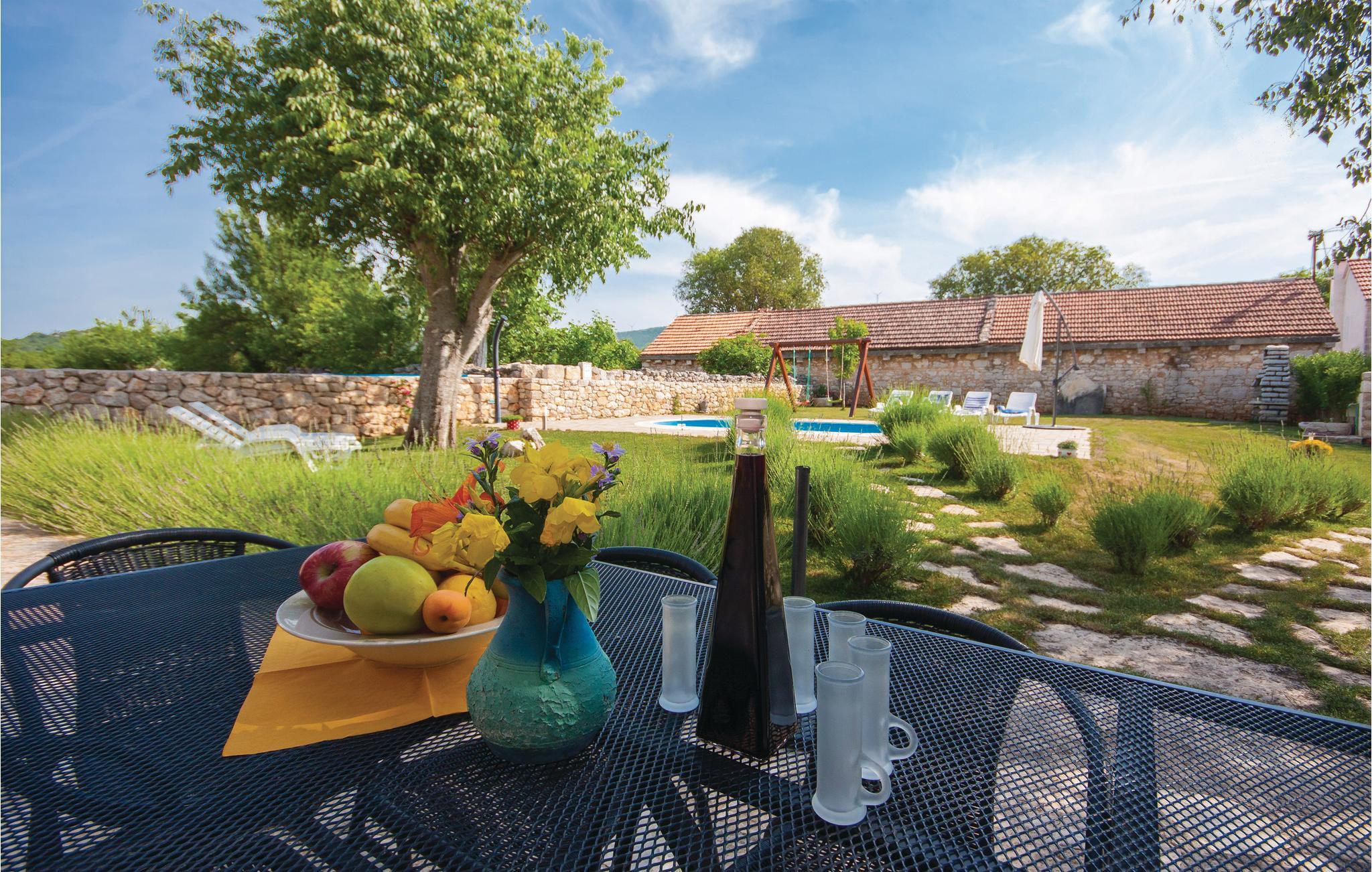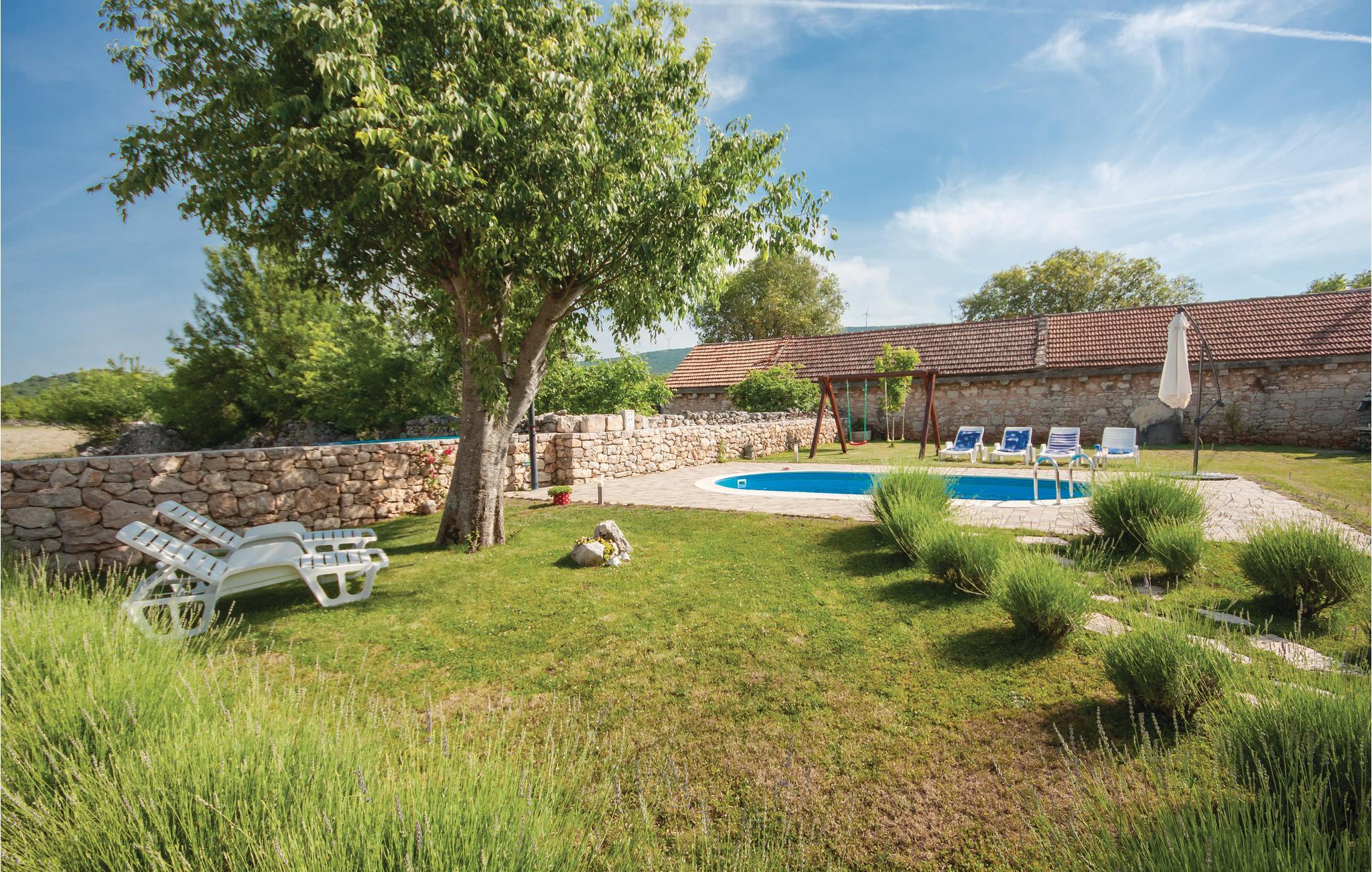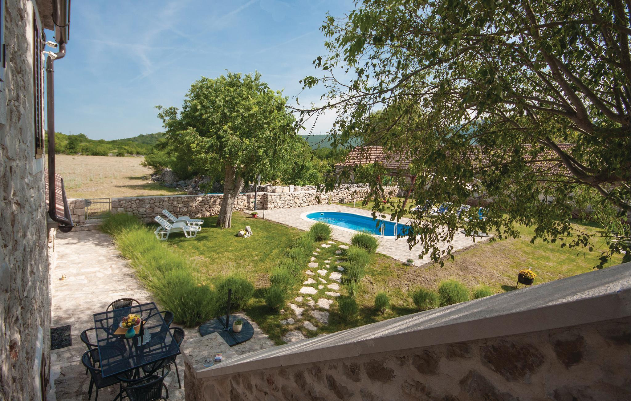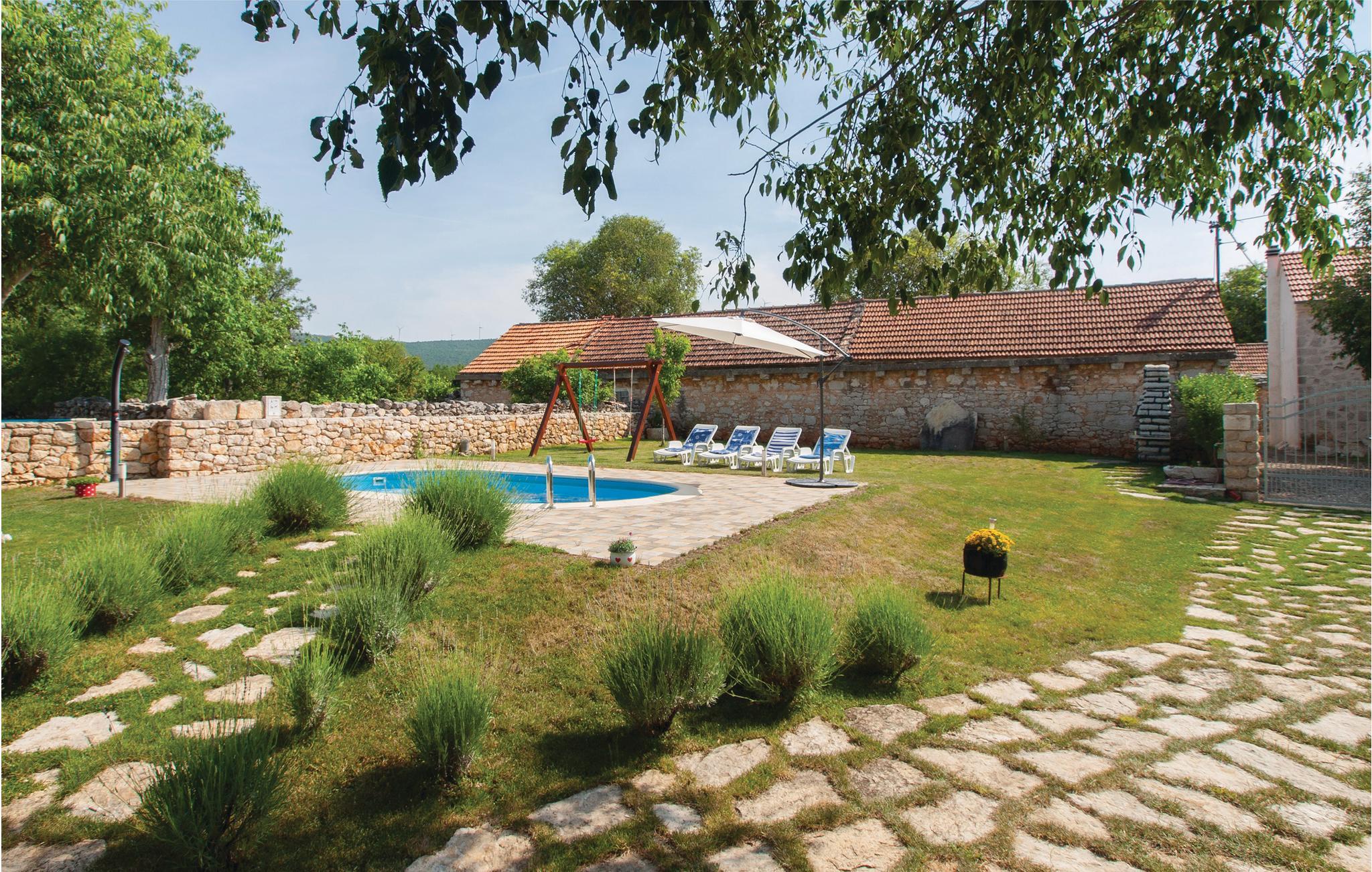 I baglandet af Šibenik, i en lille, rolig by, ligger denne jordforbundne dalmatiske dobbelthus af sten med egen pool. Det ligger kun få km fra nationalparken Krka. Huset er blevet komplet renoveret og er indrettet i en blanding af landlig og moderne stil. Boligerne strækker sig over to etager, der er forbundet med ydertrapper. Besøg nationalparken i nærheden og se de smukke vandfald Roski slap og Skradinski buk. Byen Skradin er på grund af sin beliggenhed meget populær blandt søfarere.