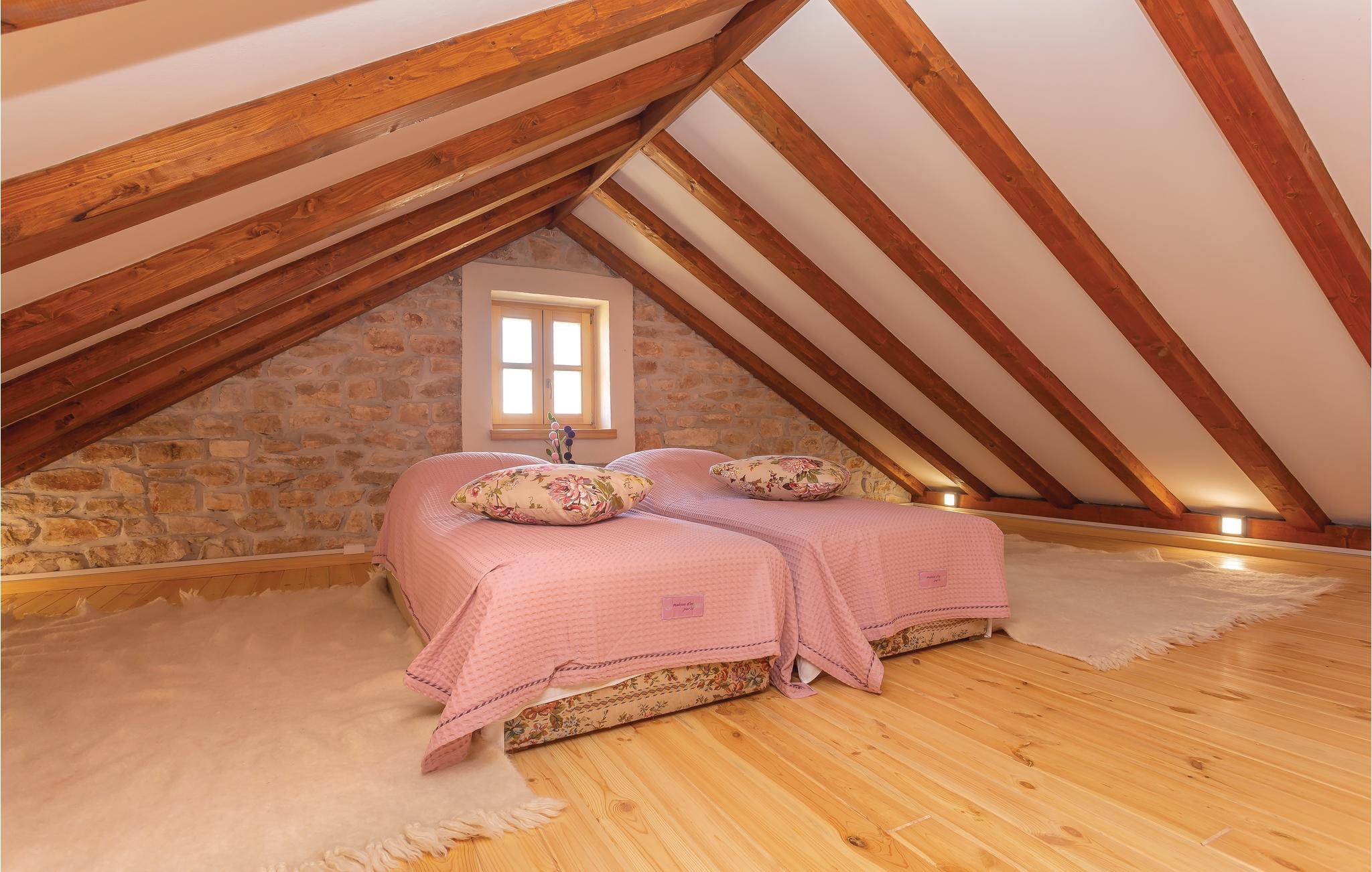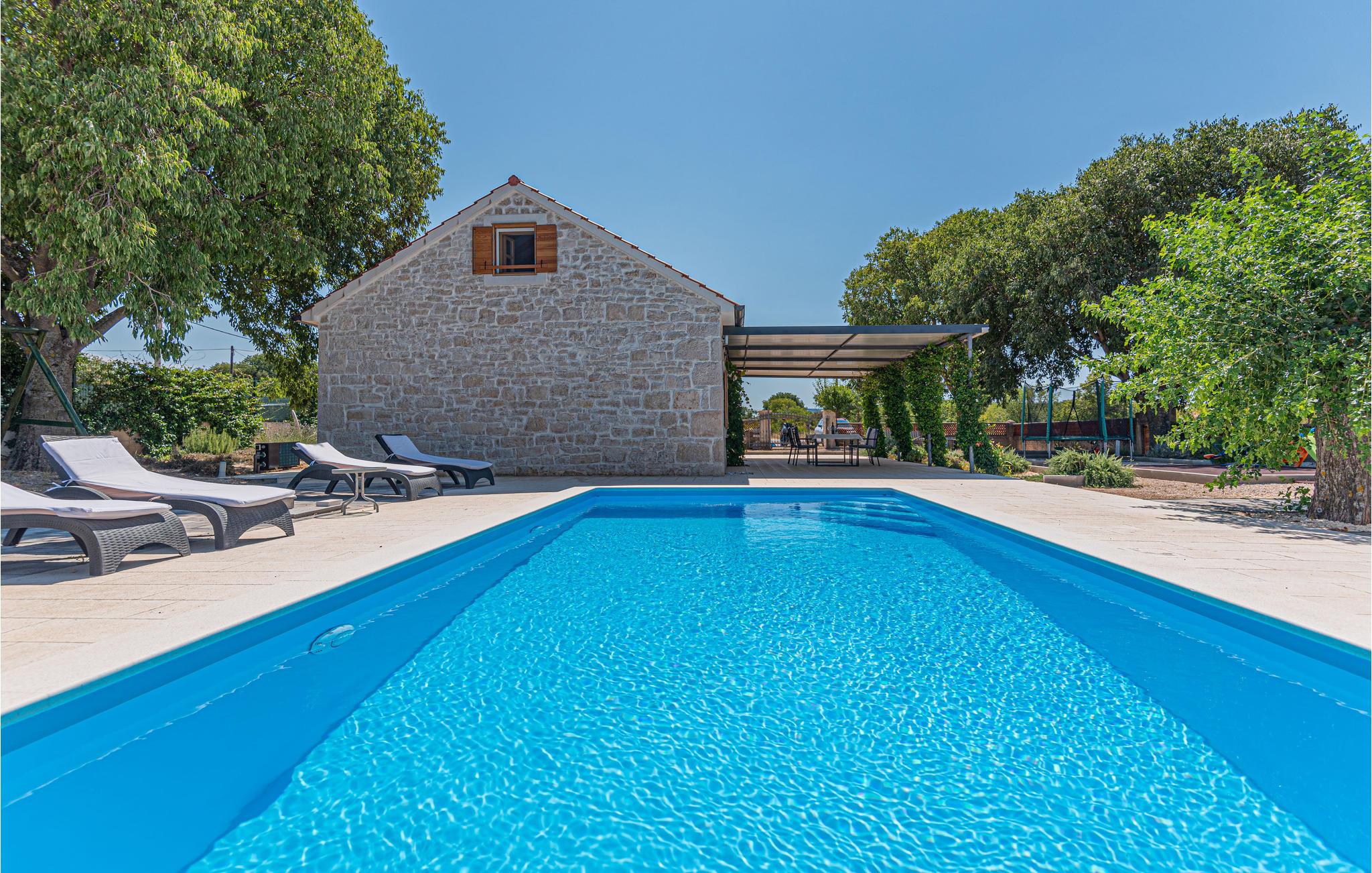 Dette skønne feriehus med pool ligger i den lille by Pakovo Selo, ikke langt fra den større by Šibenik. Dejligt rolige omgivelser, langt væk fra den hektiske hverdag. På de solrige sommerdage, er det oplagt at køle af i poolen, ligesom de store plæner indbyder til leg og boldspil. Det er oplagt at besøge nationalpark Krka, med både smuk natur og arkæologiske fundpladser. Besøg den lille mediterrane by Skradin samt mange andre maleriske seværdigheder i omgivelserne. Lær regionens mange former for kultur og historie at kende.
