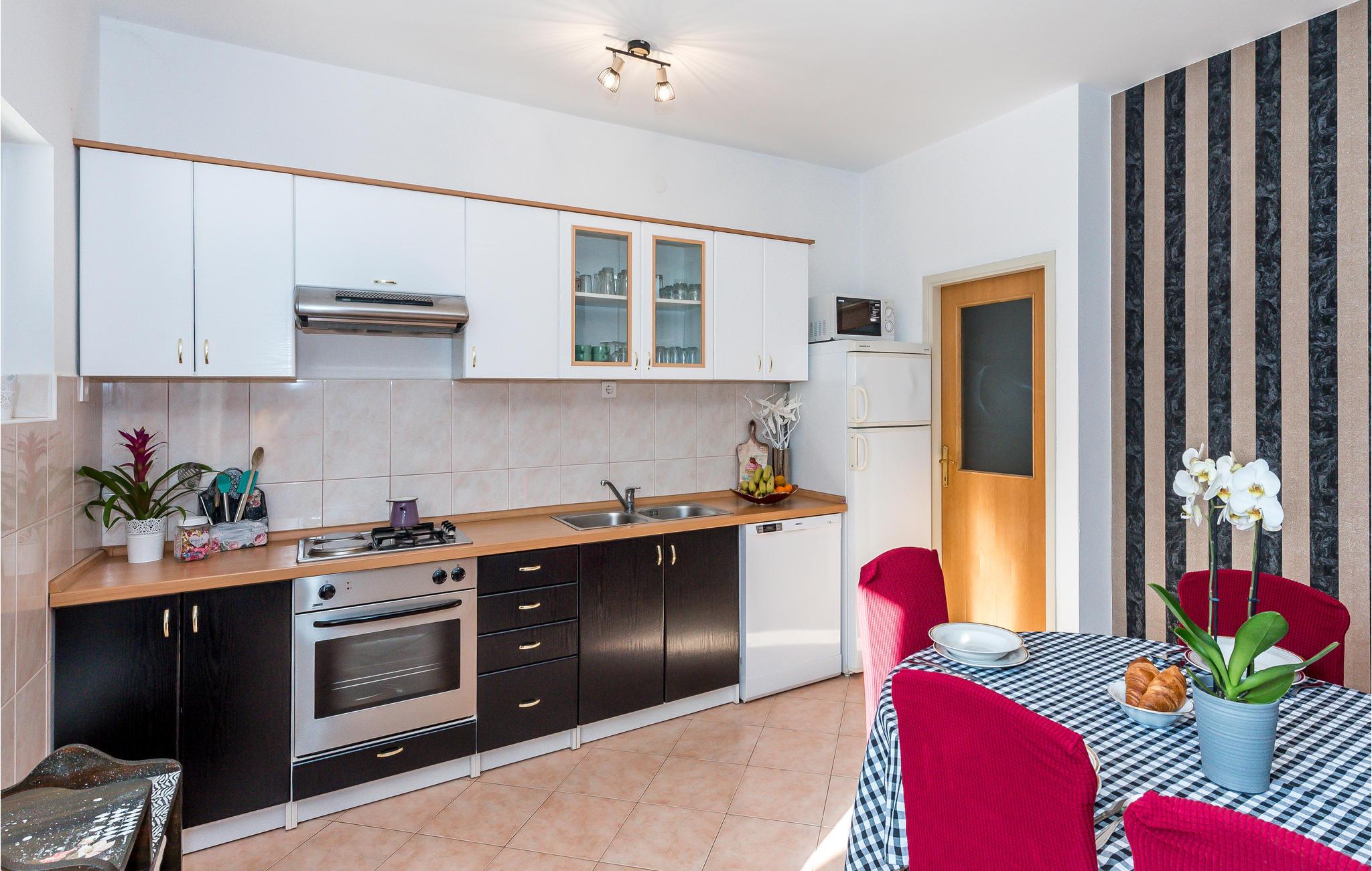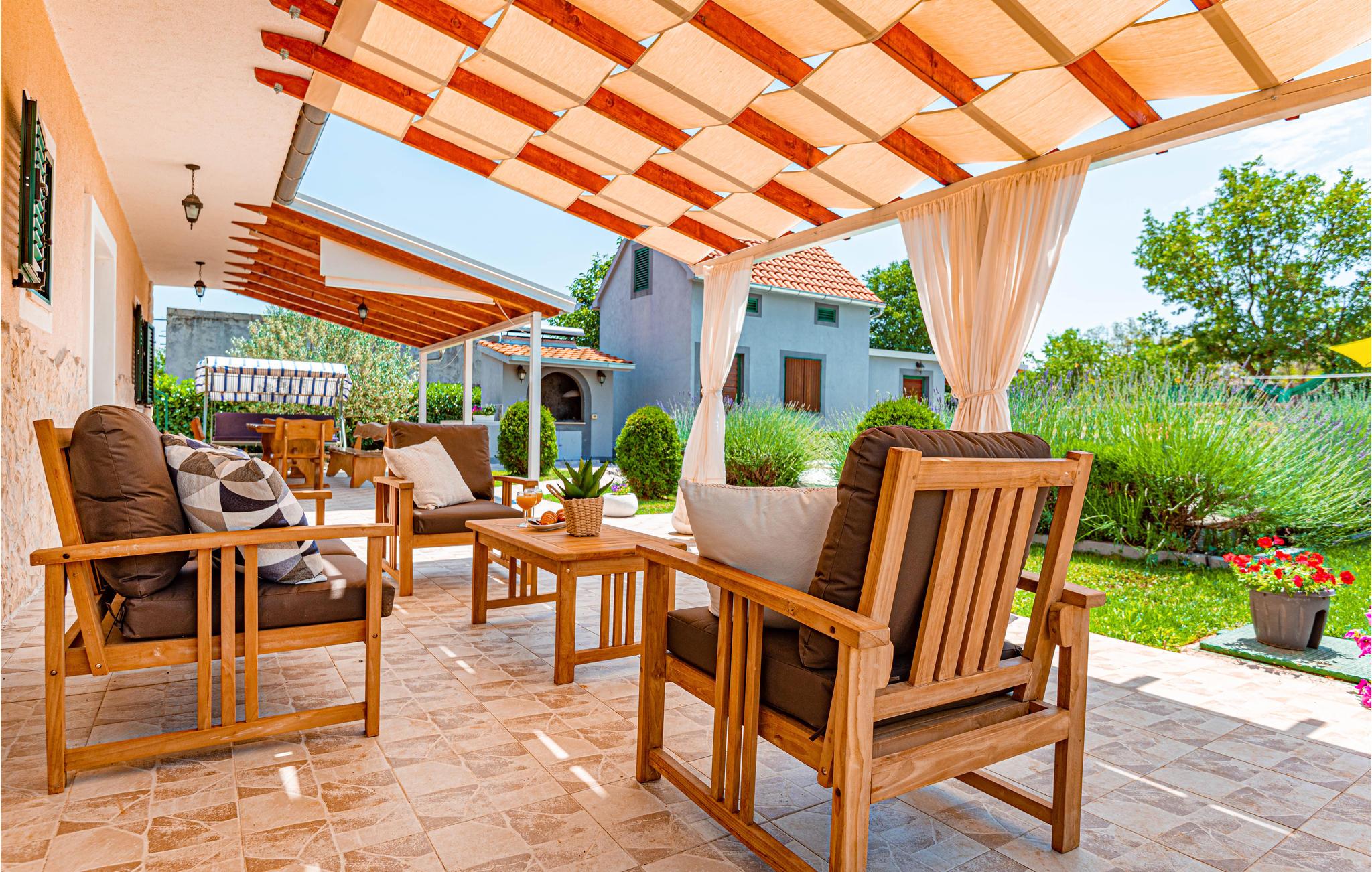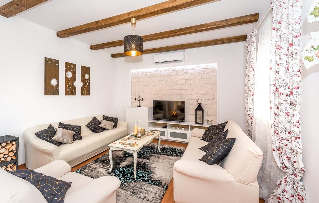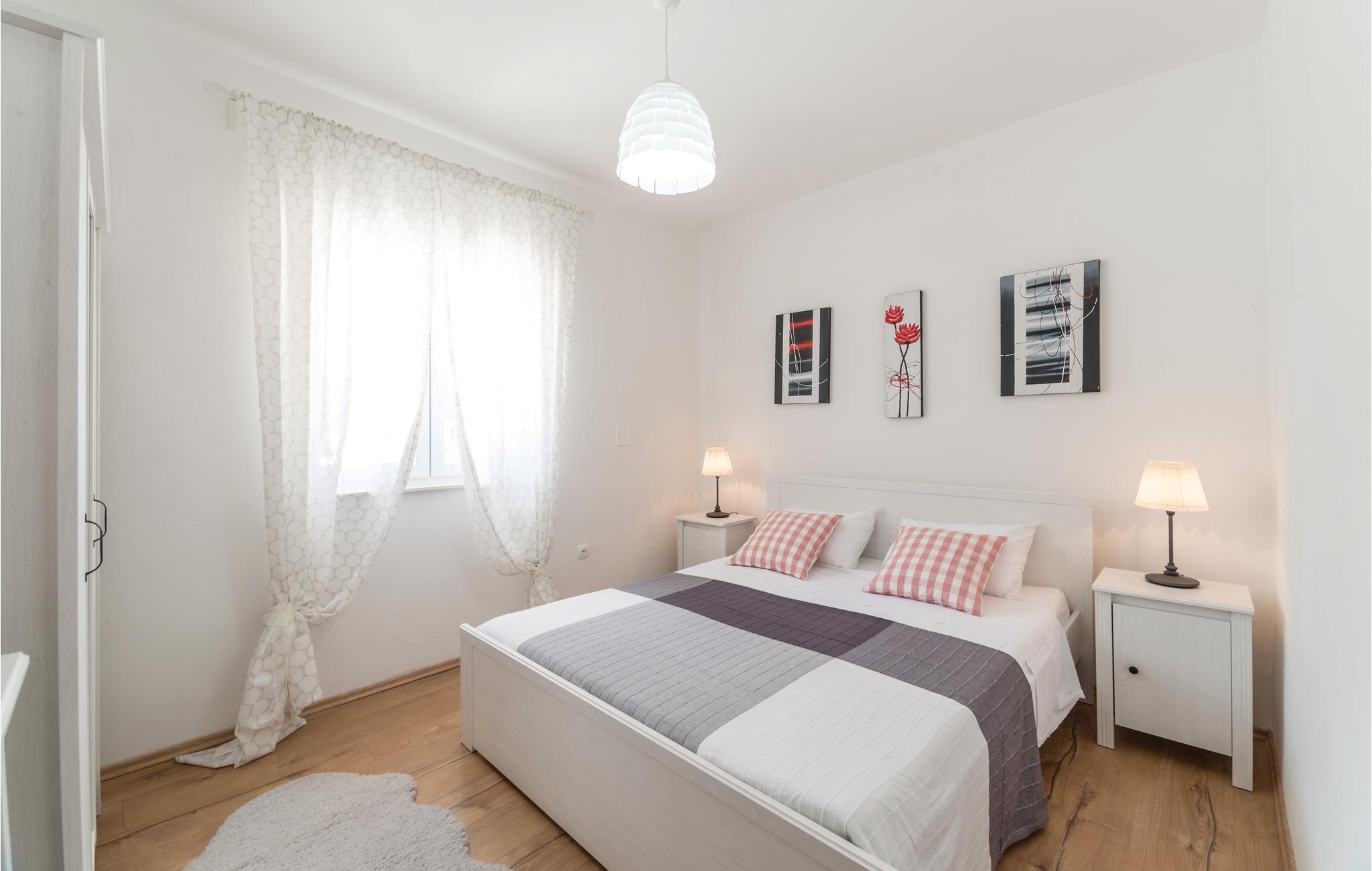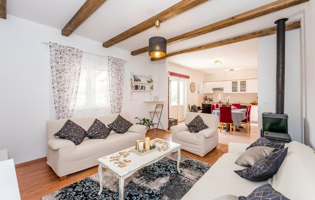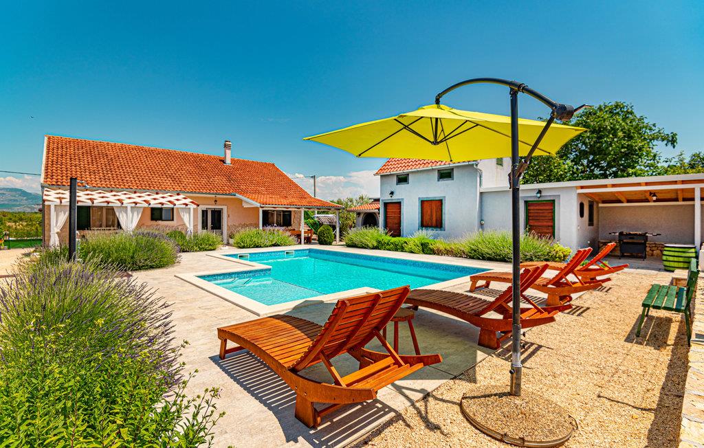 Dette komfortable og venligt indrettede feriehus ligger i den lille landsby Pakovo Selo, ikke langt fra Sibenik. Hvis I vil undgå byens travlhed og nyde jeres ferie i fred og ro, så er I her på rette sted med familien. Slap af ved poolen, mens børnene nyder ubesværet leg. I gården er der også en grill, som I kan tilberede lækre retter på. Gå ikke glip af lejligheden til at besøge Sibenik med mange historiske og kulturelle seværdigheder. Dertil anbefaler vi en udflugt til den flotte nationalpark Krka.
