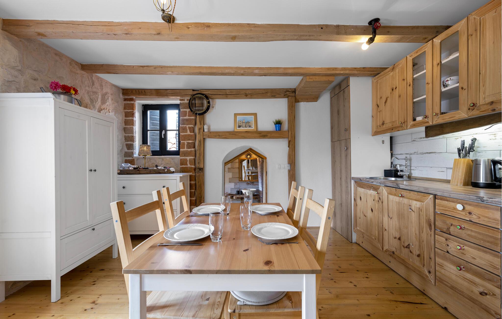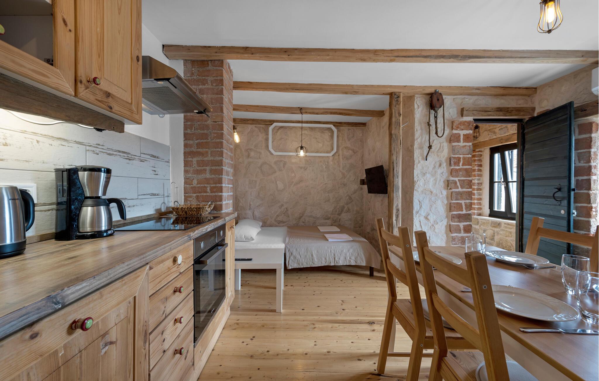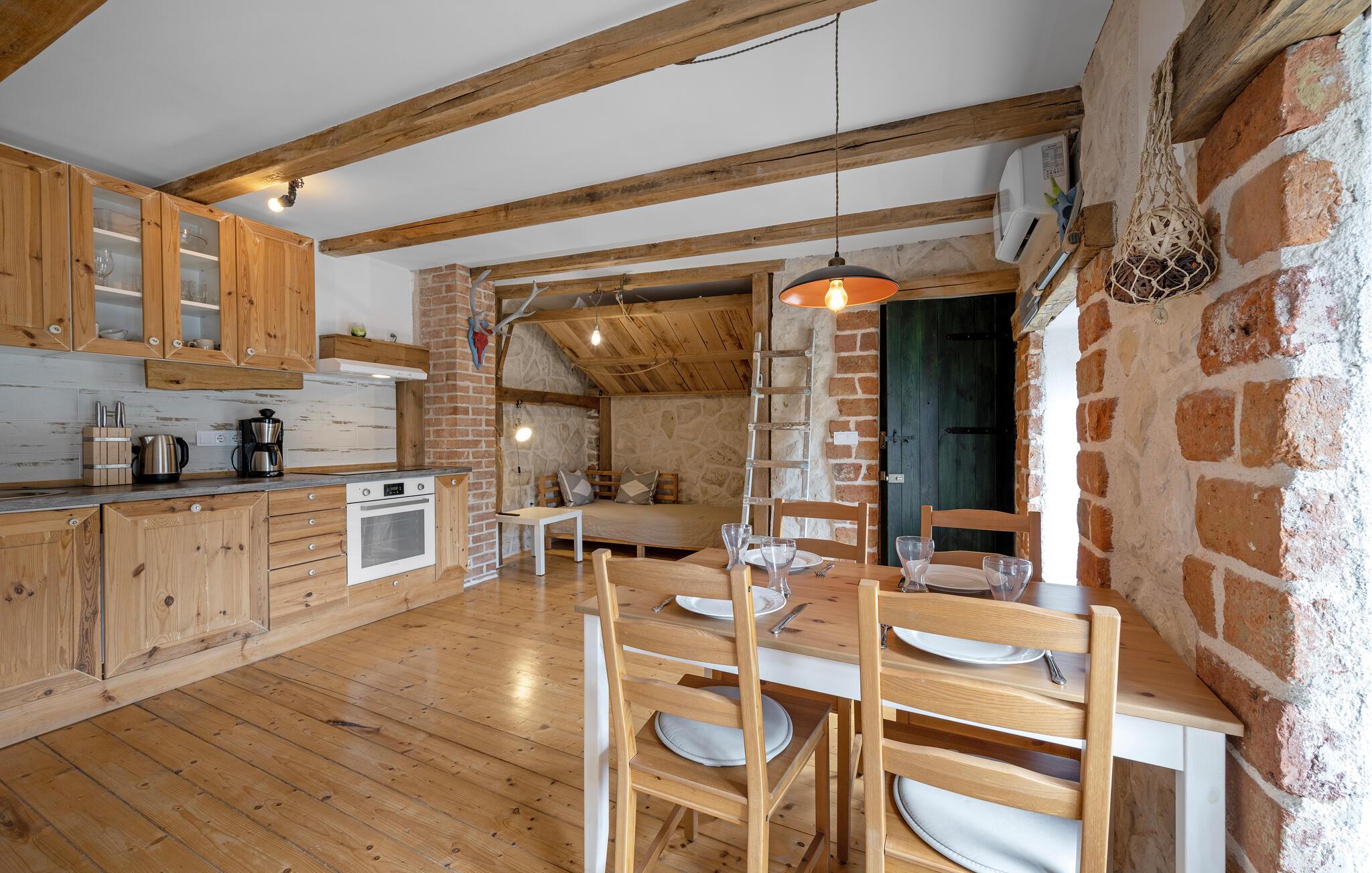 Dette rummelige feriehus har en hyggelig, rustik atmosfære og moderne bekvemmeligheder. Glæd jer til hyggelige måltider og harmoniske spilleaftener i det charmerende, åbne køkken. Efter en begivenhedsrig dag kan I streame en spændende serie på Netflix eller reflektere over dagen med et glas vin ved hånden.