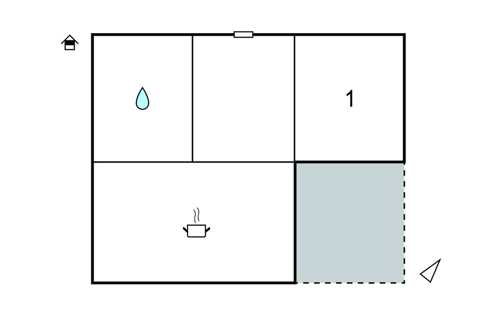 Komb. spisestue/køkken 20m2 - 2 Sovepladser. (Sofa, madras eller lignende).