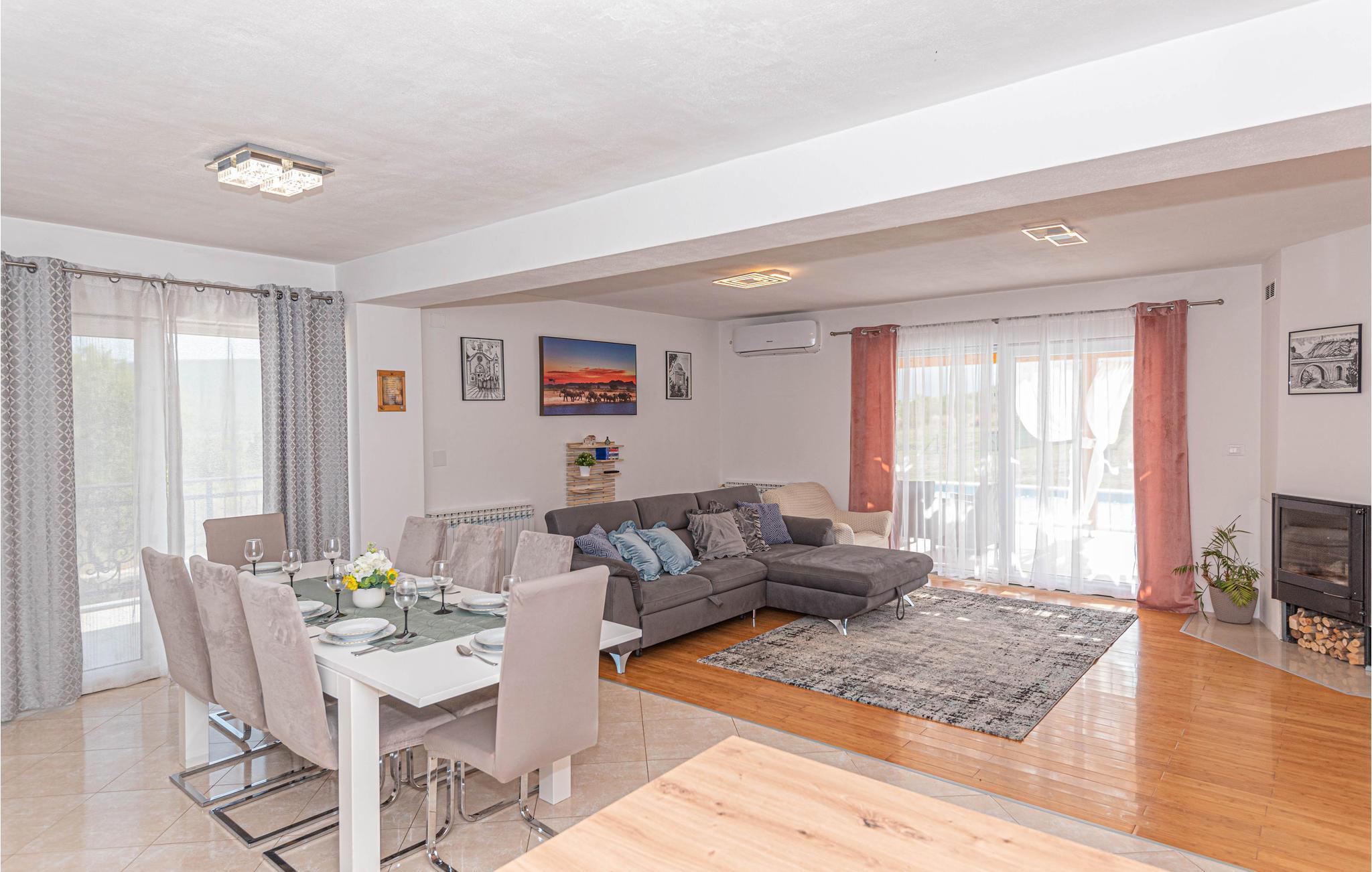 Huset giver jer en skøn ramme, hvor I kan slappe af og få en pause fra hverdagen sammen med hele familien og jeres hund. Nyd den vide udsigt til det smukke landskab fra en af ??de to altaner. I løbet af dagen kan I tage en frisk dukkert i poolen lige foran huset og nyde den kroatiske sol.