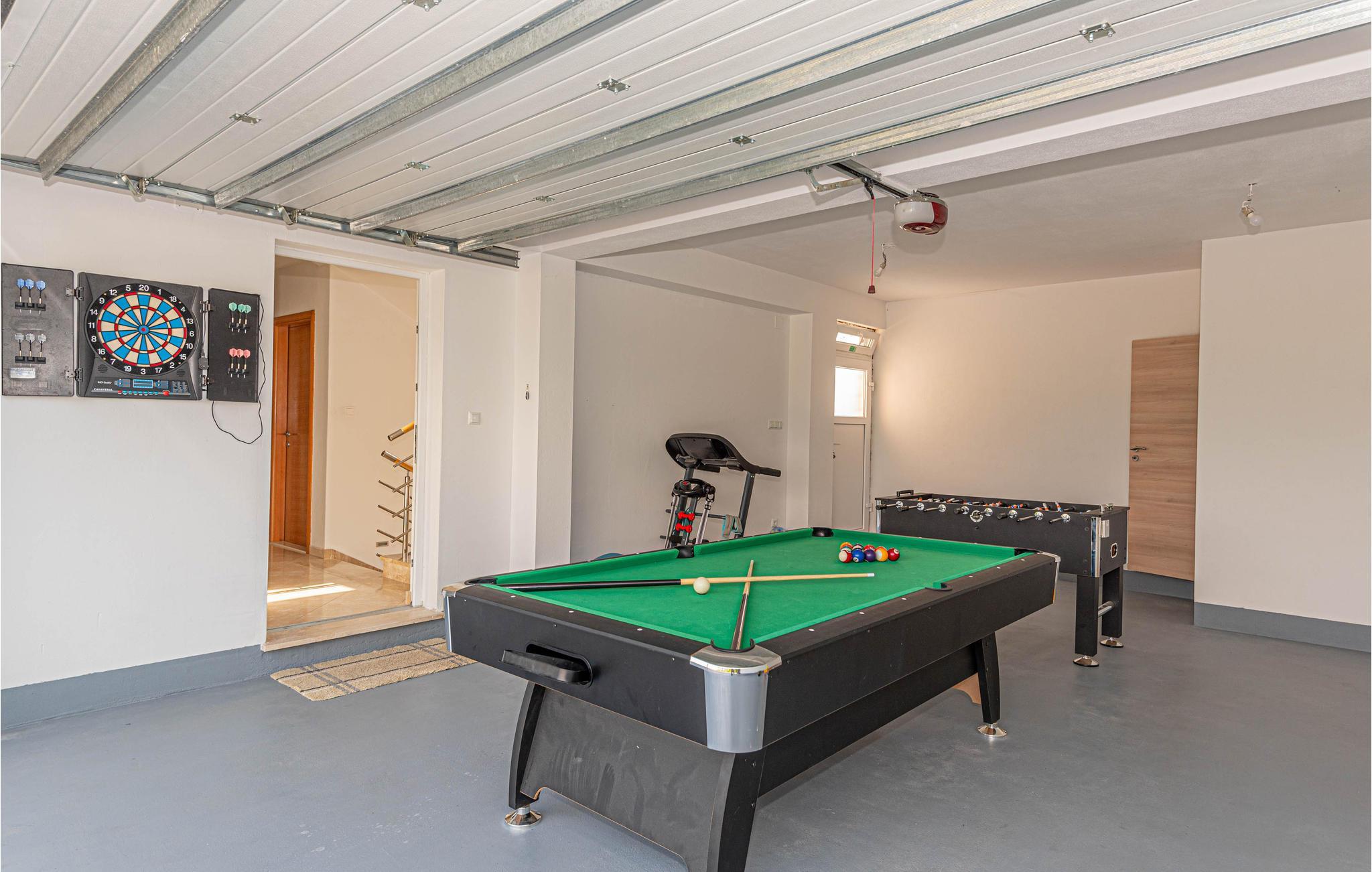 I middagsvarmen kan I trække indenfor til de rummelige opholds- og spiseområder med aircondition. På kølige dage kunne I måske tænke jer at slappe af foran pejsen eller ved baren i køkkenet. Der er masser af muligheder for aktive mennesker, som vil dyrke sport. Der er nemlig både mulighed for at tage et spil badminton eller en basketballkamp. Løbebånd, petanque og en Playstation er også tilgængelige. I kommer med garanti ikke til at kede jer. Der er en gynge til de mindste.