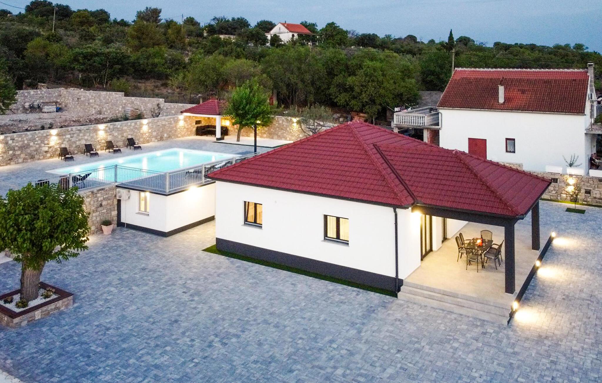 Til dem, der ønsker at udforske området, er villaen en behagelig køretur fra det livlige Sibenik, Vodica og den smukke strand. Oplev naturen i nationalparken Krka-vandfaldene. I villaens omgivelser kan I se mere smuk natur, Burnum, kilden til Krka-floden og det arkæologiske område Bribirska GLavica. En sejltur rundt om øerne Prvic Luka eller Kornat vil skabe særlige minder. Fordyb jer i Dalmatiens spændende arv og skønne natur.