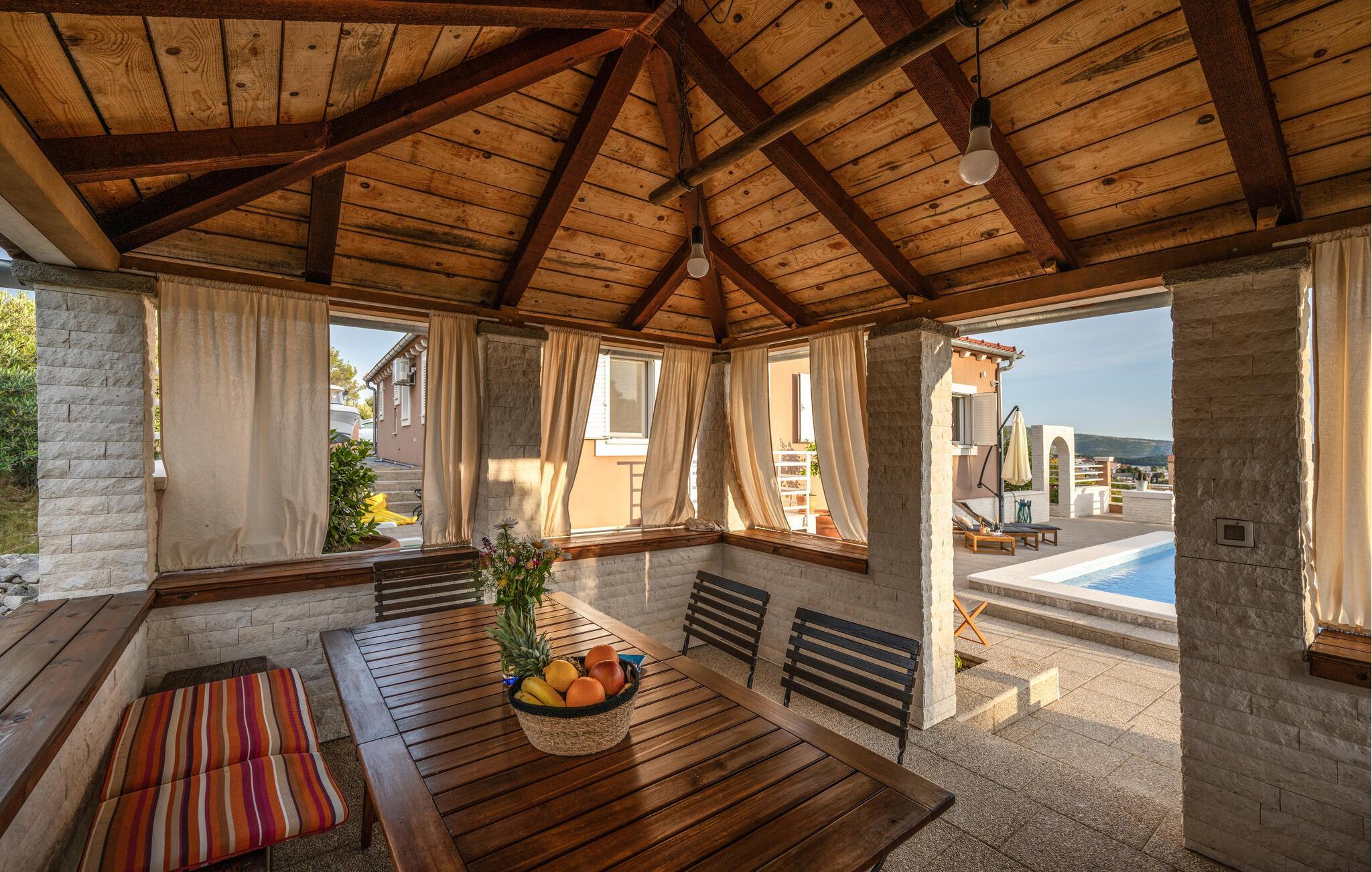 Sandstranden Zaboric ligger kun få minutter væk, ligesom den imponerende middelaldermur i Ostrica. De omkringliggende kystbyer er værd at besøge, og alle har caféer og restauranter med havudsigt, en indbydende, livlig atmosfære og gode bademuligheder. Hvis du er mere i humør til en vandretur, kan du køre ind i landet til Balkans bjerge. Nationalparken Krka med sine berømte vandfald ligger også tæt på.