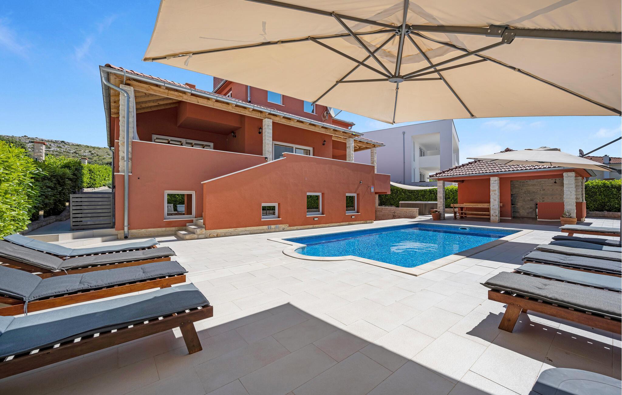 Forkæl jer selv med en solrig pause i dette rummelige feriehus med pool nær stranden.