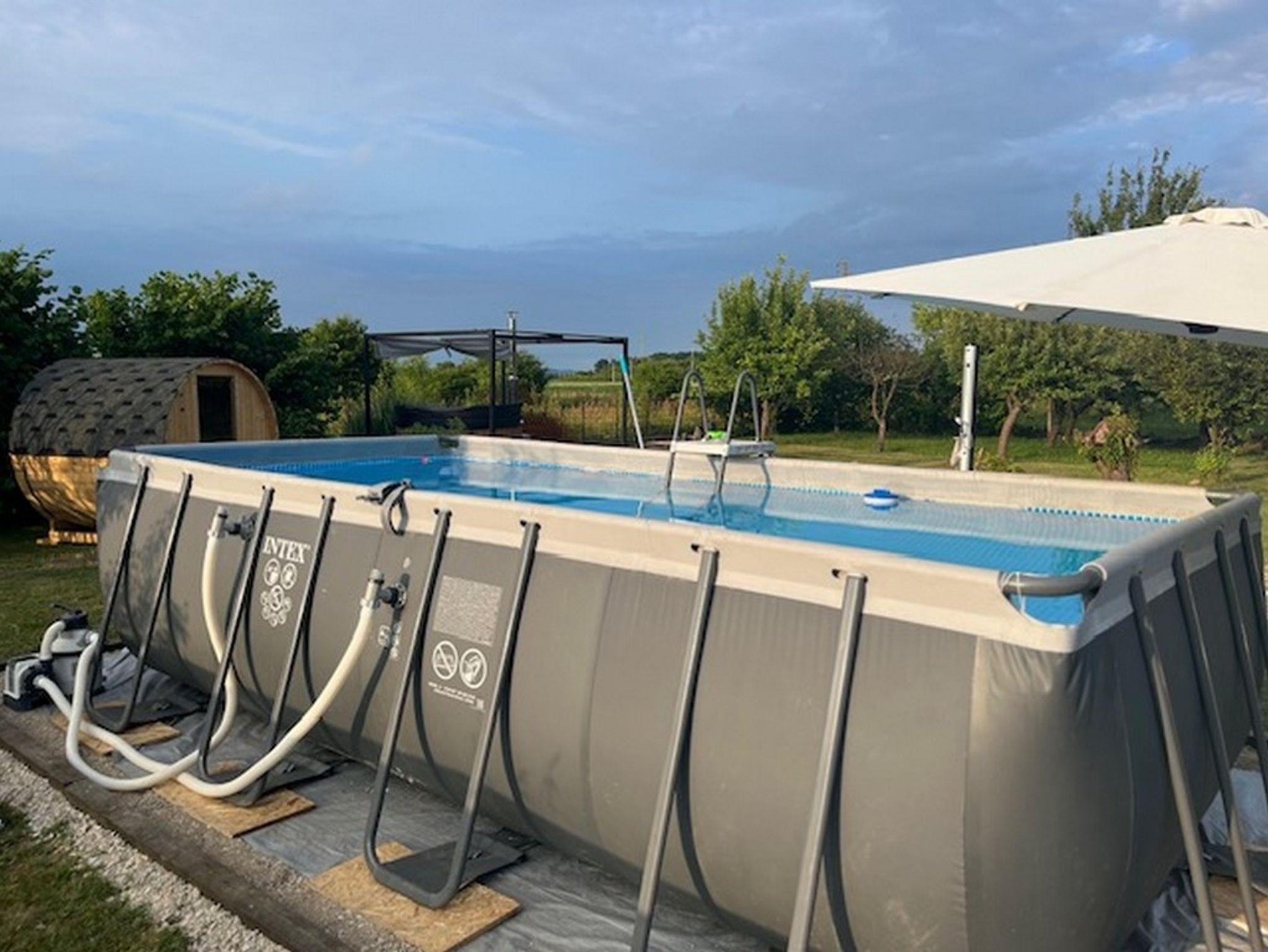 Hof (90m2, Kinderbereich, Sitzbereich), Parkplatz (Anzahl der Parkplätze: 2, Entfernung vom Objekt: im Hof), Pool: gemeinsam, Dimensionen: 5m x 2m x 1.5m, Wassertyp: Süßwasser, Grill: gemeinsam, WiFi Internet, Föhn, Kinderbett