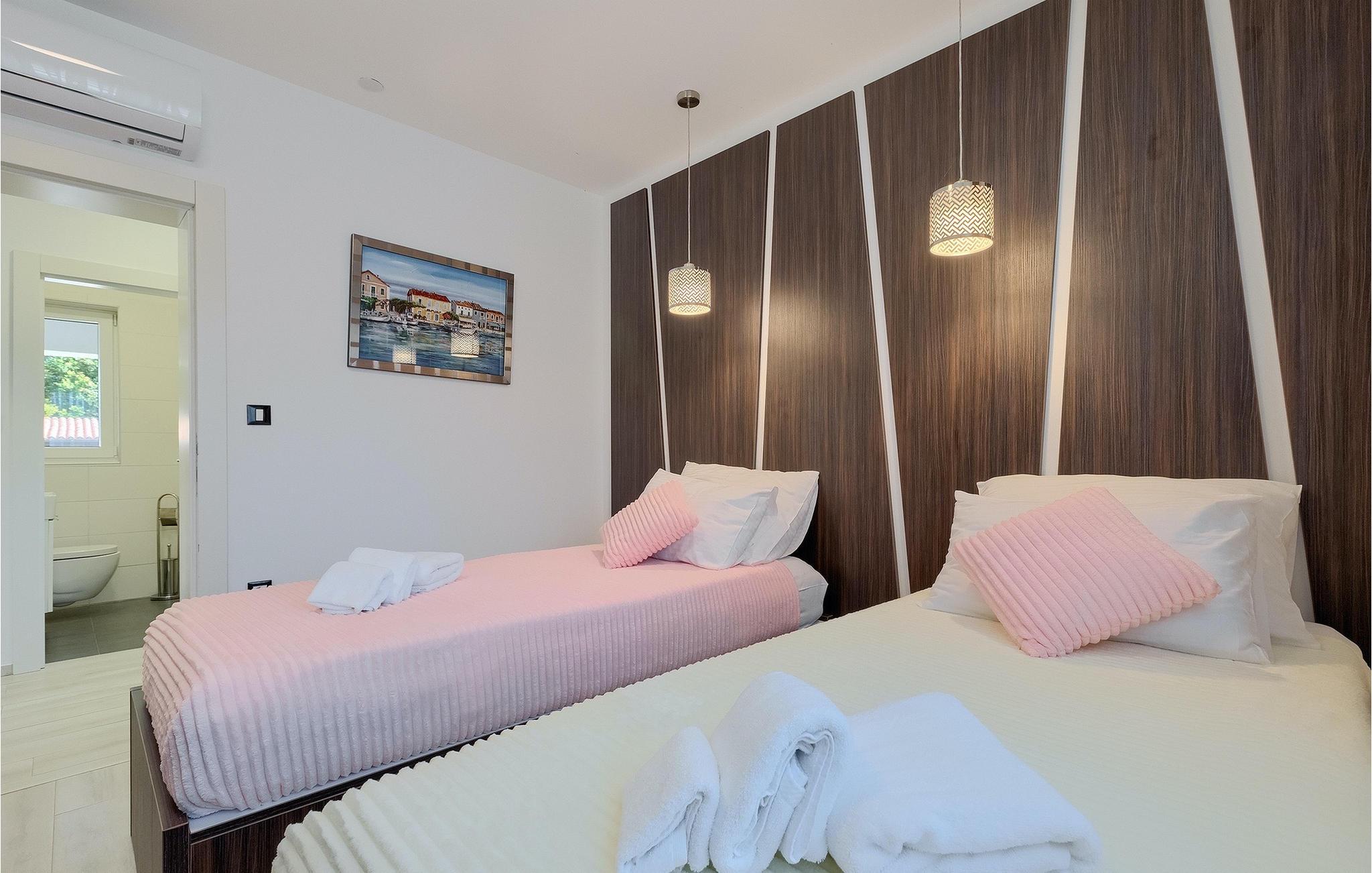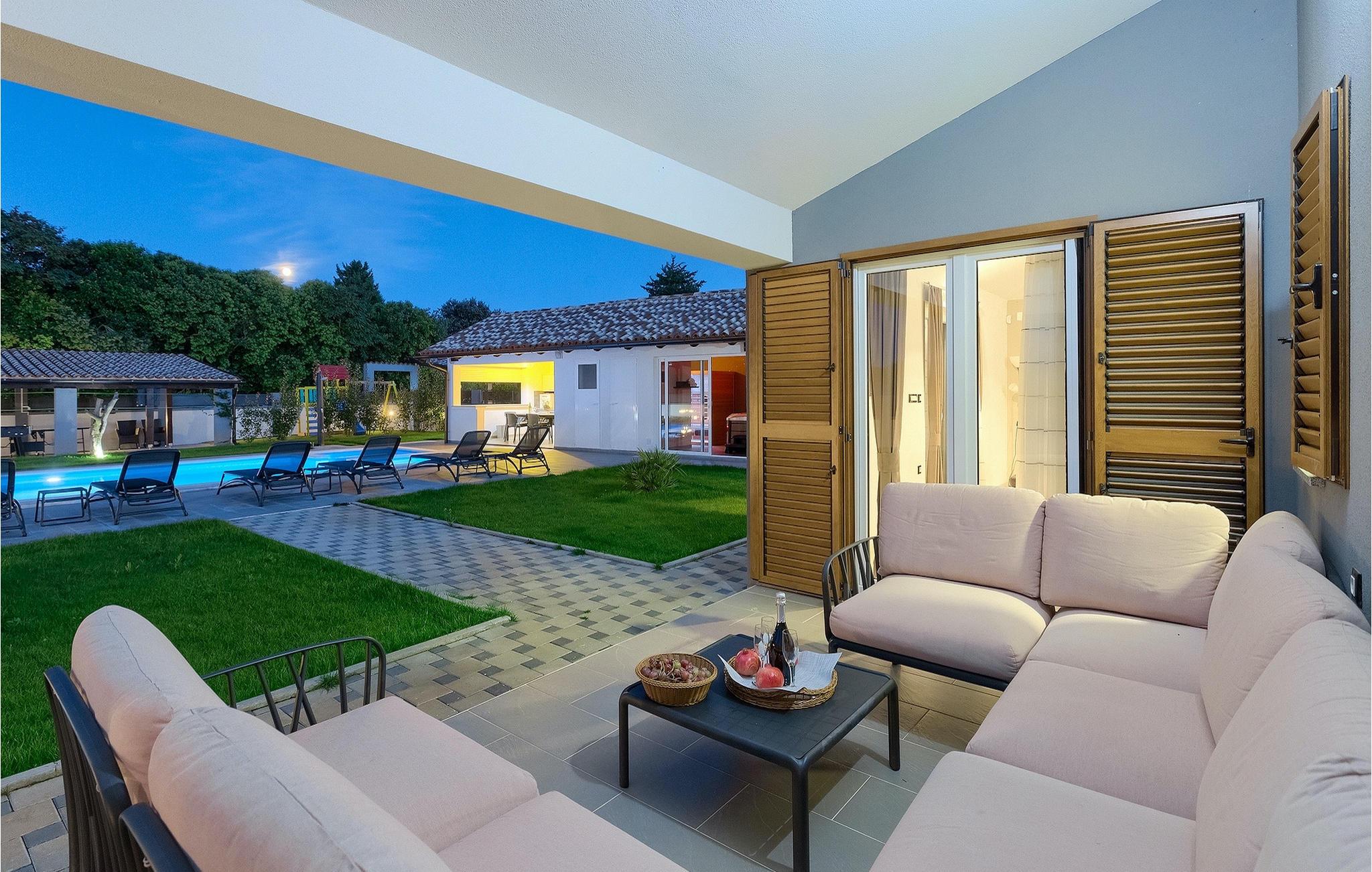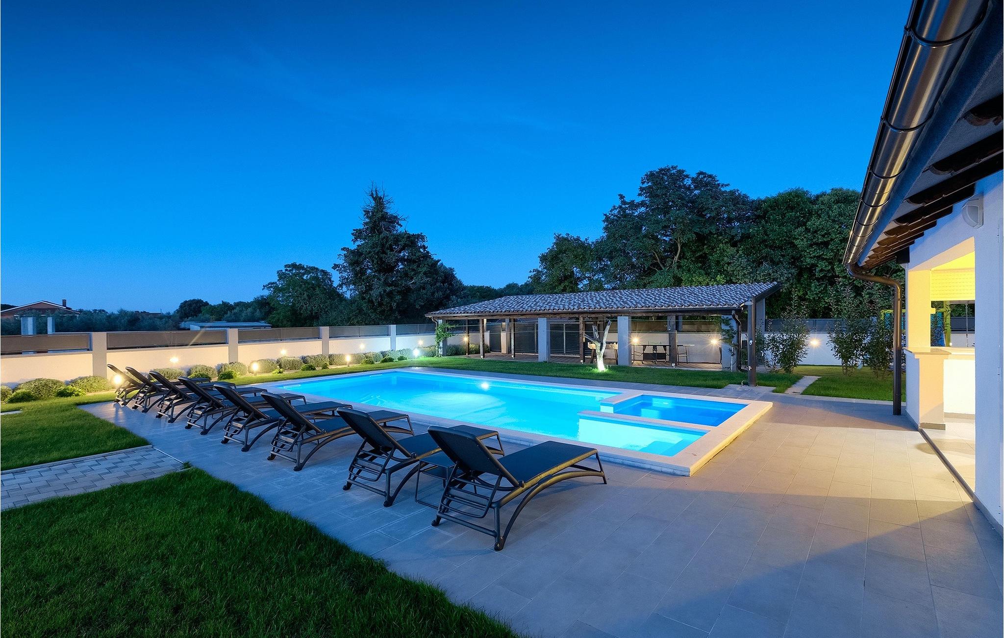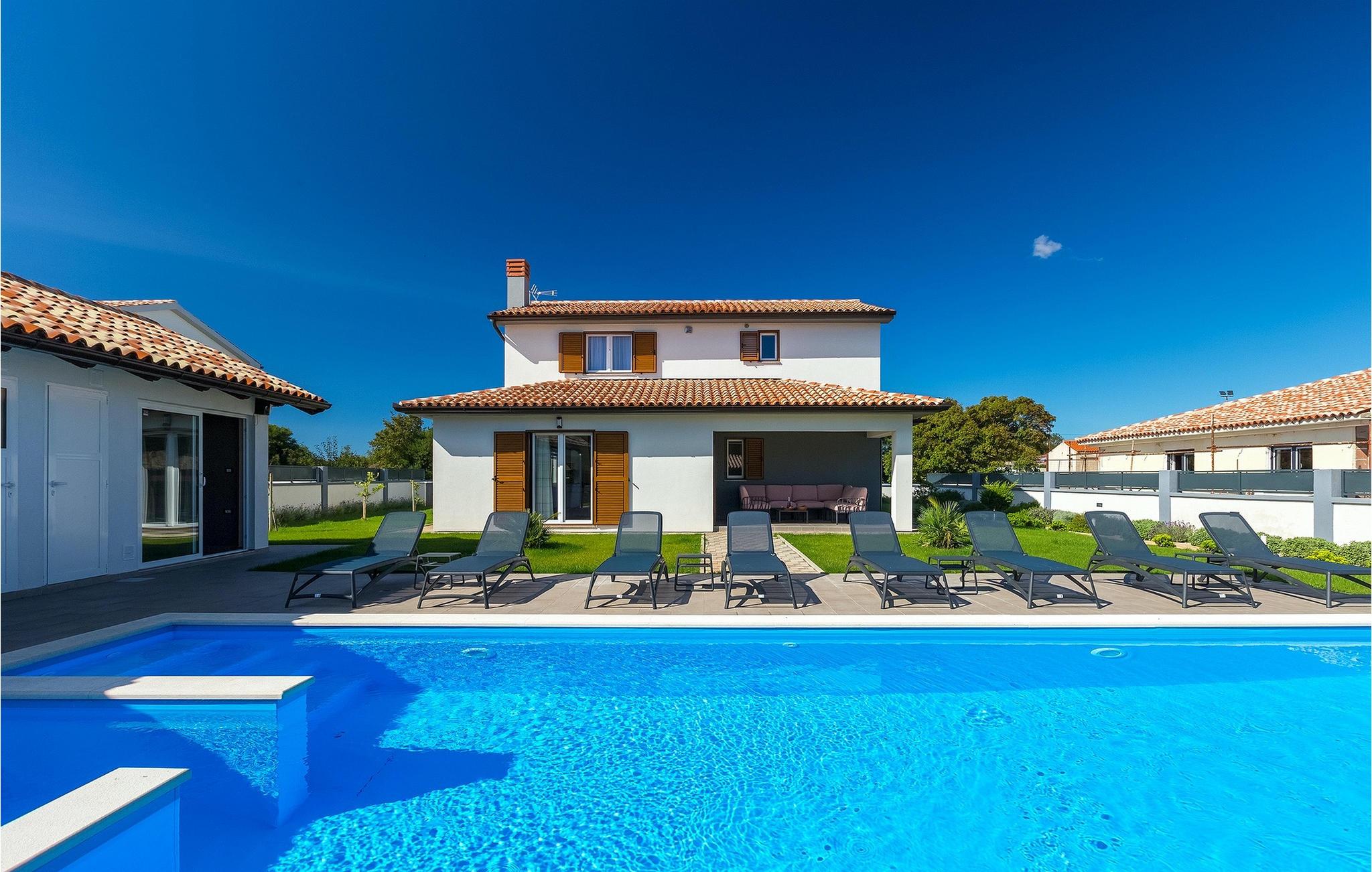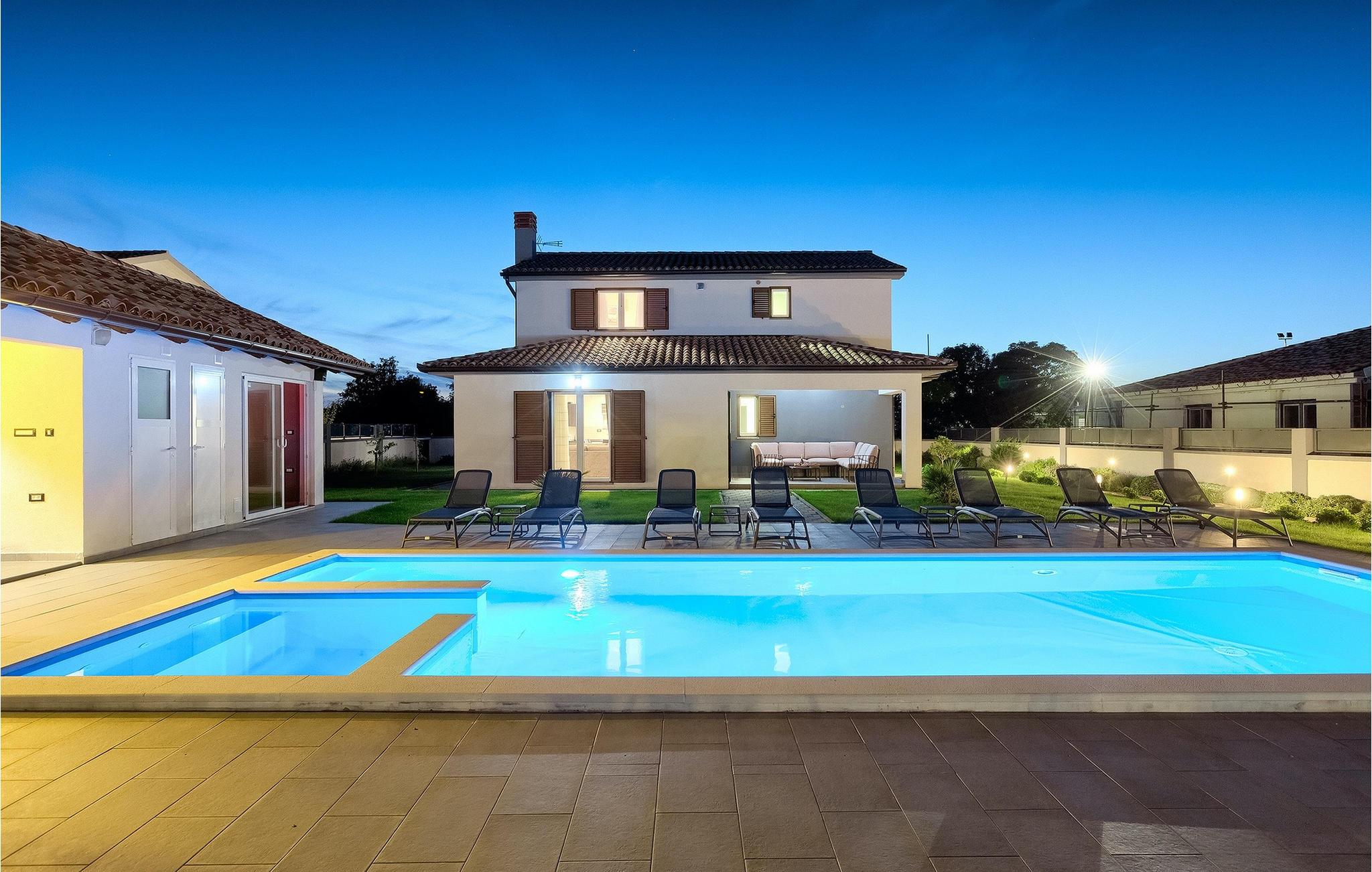 Denne smukke villa Alba Rossa er beliggende i den lille by Sisan nær den største by i Istrien - Pula. Ligesom hendes søstervilla Alba Bianca tilbyder denne villa dig alt til den perfekte ferie med din familie. Villaen kan rumme op til 8 personer. Hver villa fungerer som en separat enhed, og hvert hus har sin egen swimmingpool, jacuzzi, spa, grill, legeplads, bordtennis og bordfodbold. Husene hænger sammen, så de kan lejes af en større familie, og I kan alle slappe af og nyde naturens lyde og den smukke stemning, som begge villaer har at byde på. Ligesom Villa Alba Bianca har stueetagen i Villa Alba Rossa et vidunderligt køkken og spiseplads, en komfortabel og hyggelig stue og et soveværelse med to enkeltsenge. På første sal finder du to fuldt udstyrede dobbeltværelser med tv og aircondition og hver med eget badeværelse. Du ønsker at tilbringe det meste af din tid udendørs, hvilket er en god idé, da villaen byder på et smukt og stort overdækket sommerkøkken, hvor du kan tilberede lækre istriske delikatesser eller friske op og svømme i poolen. Vi tænkte også på jeres små, der kan hænge ud og hygge sig på den søde legeplads, mens de voksne hygger sig med jacuzzi eller grill. Hvis du vil have en drømmeferie, skal du sørge for at booke Alba Bianca Villa eller Alba Rossa Villa, det vil du ikke fortryde.Villaen Alba Rossa ligger i den beboede lille by Sisan i kommunen Liznjan i Istrien Amt, nær den største istriske by Pula. Kun 1,5 km væk fra villaen vil du støde på smukke sten- og sandstrande. Er du interesseret i mere aktive ferier og adrenalin, er der forskellige faciliteter såsom sejlads, golf, cykling, ridning, adrenalinpark osv. Der er en masse historiske og kulturelle seværdigheder i denne del af Istrien, som du skal besøge. Specialiteten i denne del af Istrien er de lækre istriske delikatesser lavet af Adriaterhavsfisk og den hjemmelavede "Malvazija", der passer til næsten enhver fiskeret. En uundværlig del af Pula er det mest berømte amfiteater fra det første århundrede, endda det sjette største i verden kaldet Arena, som stadig bruges i dag under forskellige kulturelle remedier og film- og sommerfestivaler. Byen har en lang tradition inden for vinfremstilling, fiskeri, skibsbygning og turisme.