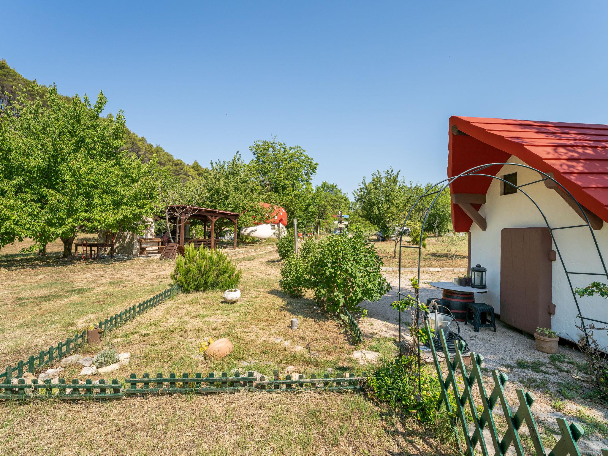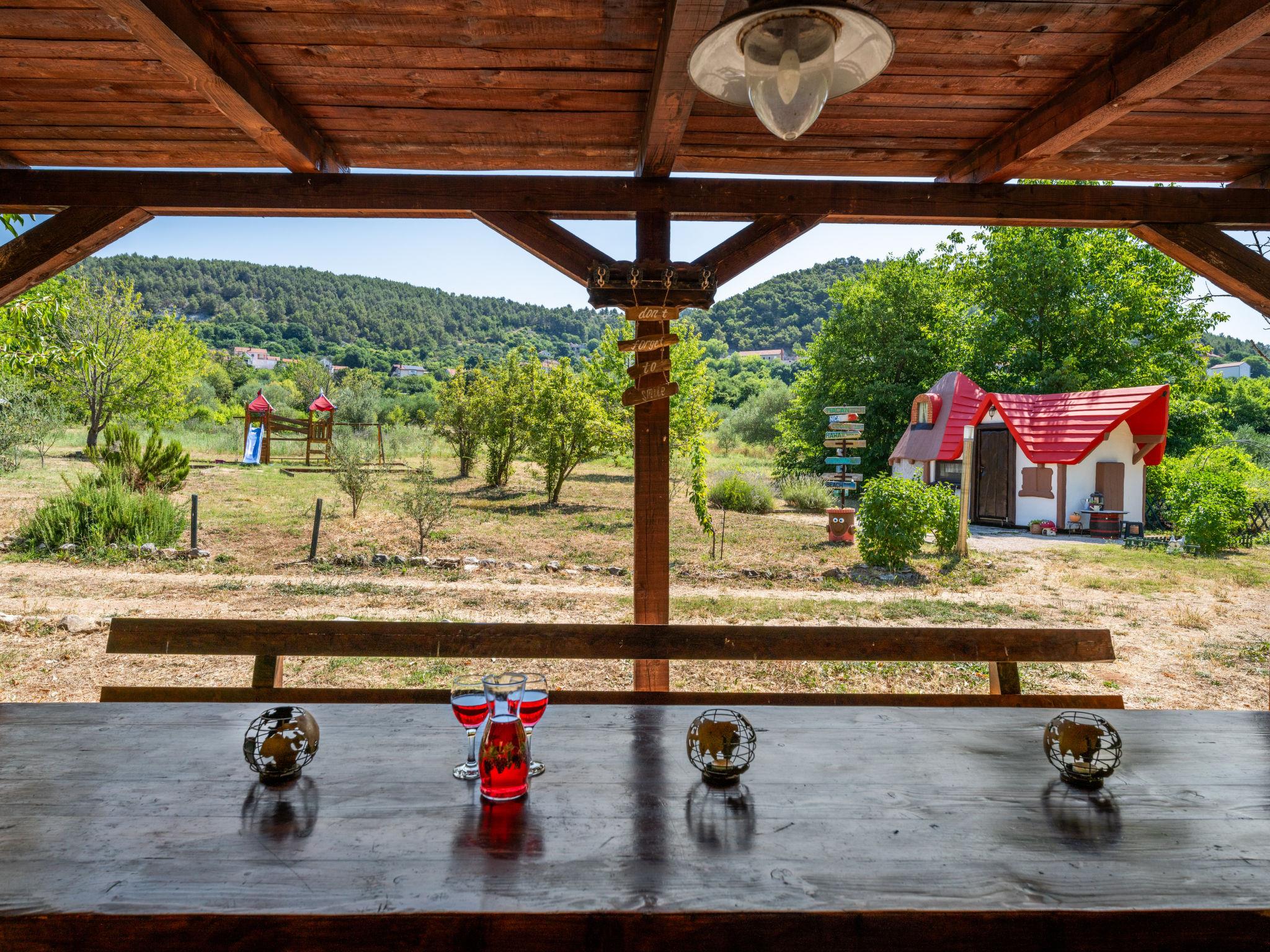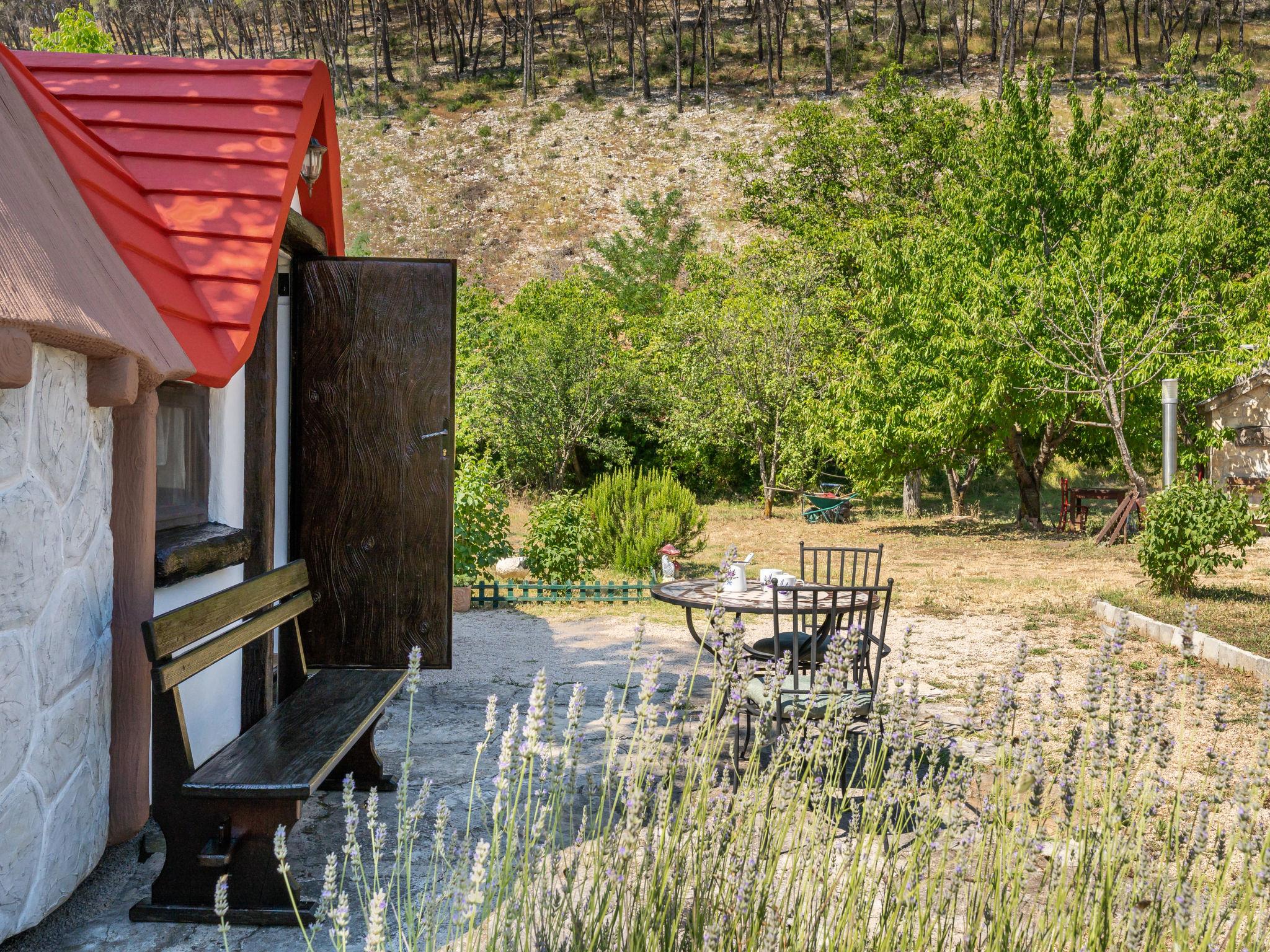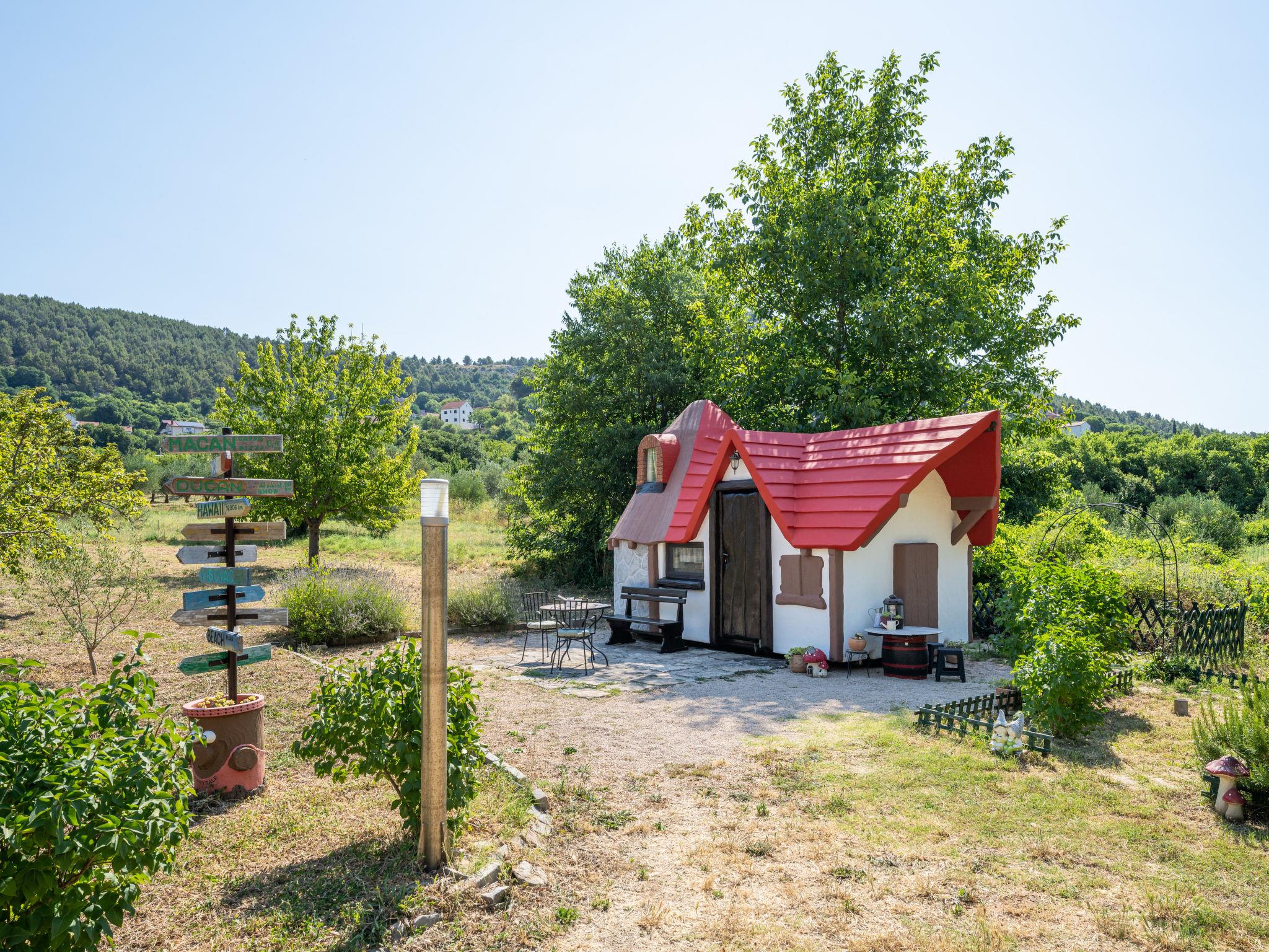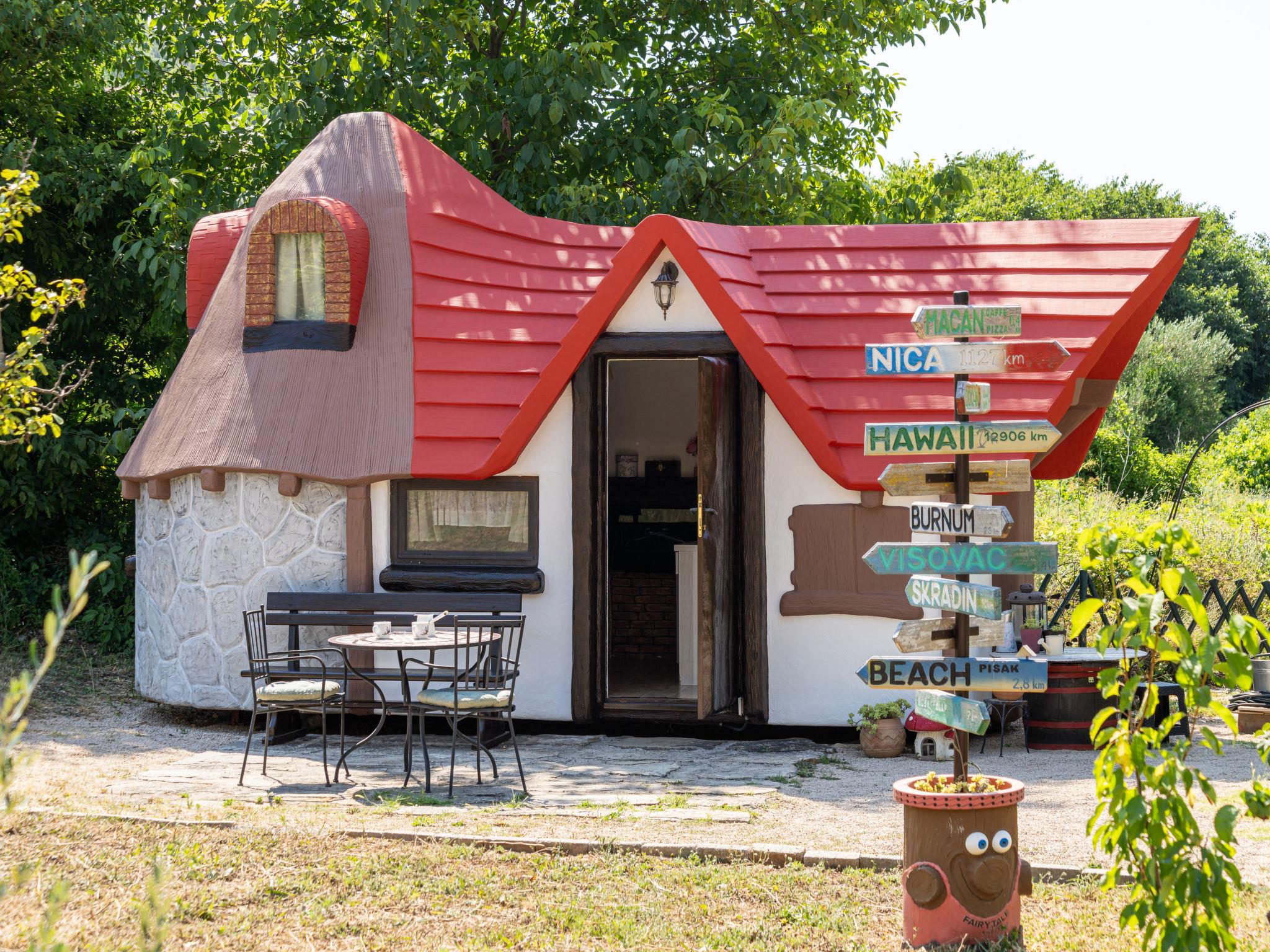 Rupe: Bungalow "Little Castle". 11 km from the centre of Skradin, in a quiet position, 11 km from the sea, in the countryside. For shared use: property 5'000 m2 with trees. Terrace (30 m2), garden furniture, barbecue. Private: property 150 m2, small garden. In the house: internet access. Motor access to the house (40 m via unmade road). Parking at the house on the premises. Shop 600 m, supermarket 11 km, restaurant 7.5 km, bus stop 16.4 km, pebble beach 11 km. Nearby attractions: NP Krka 5 km. Object suitable for 2 adults + 2 children.
