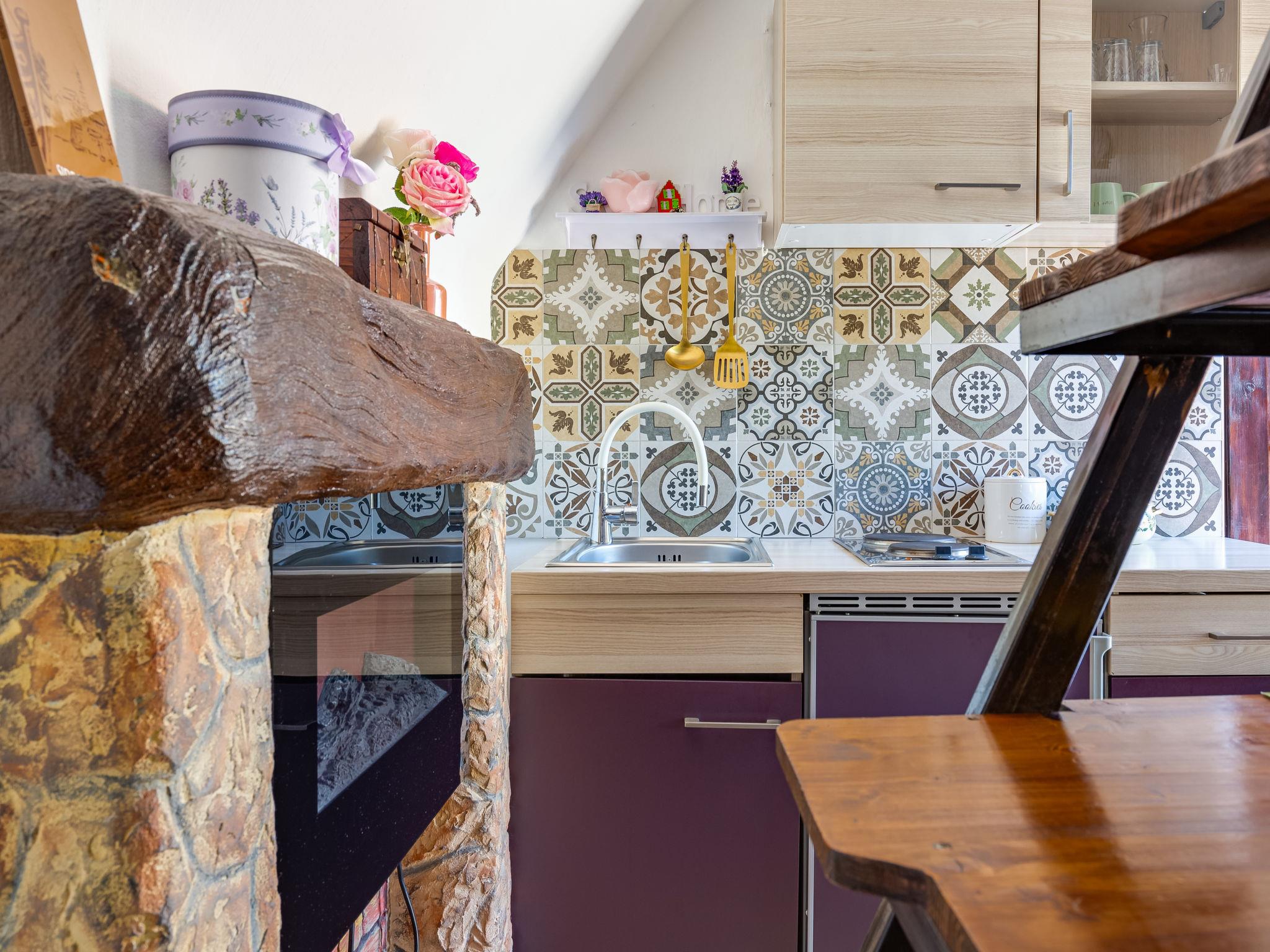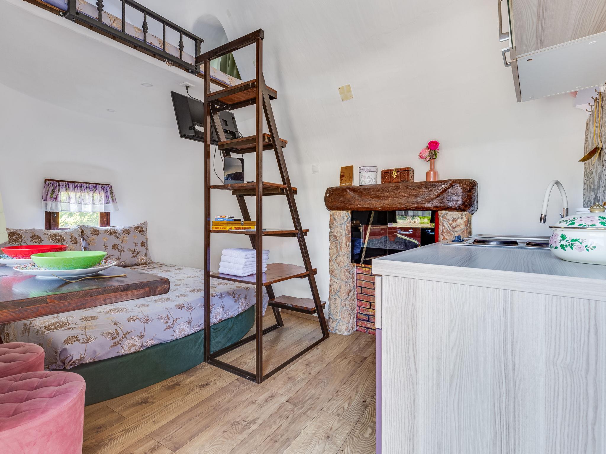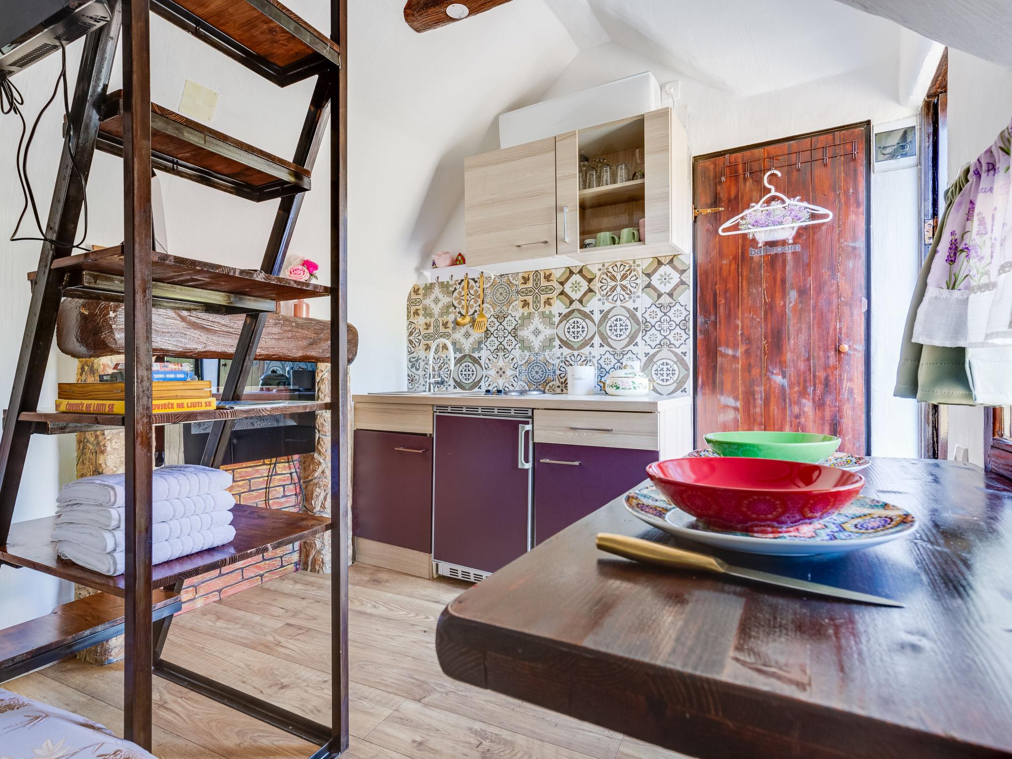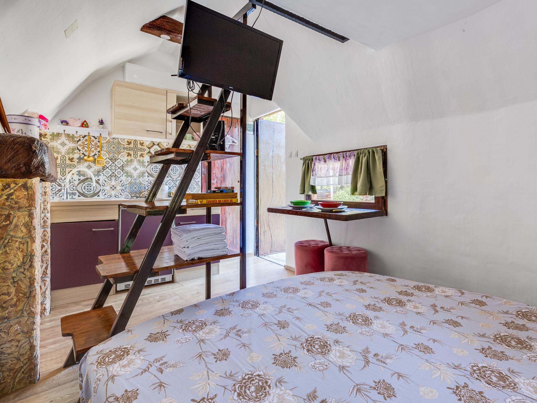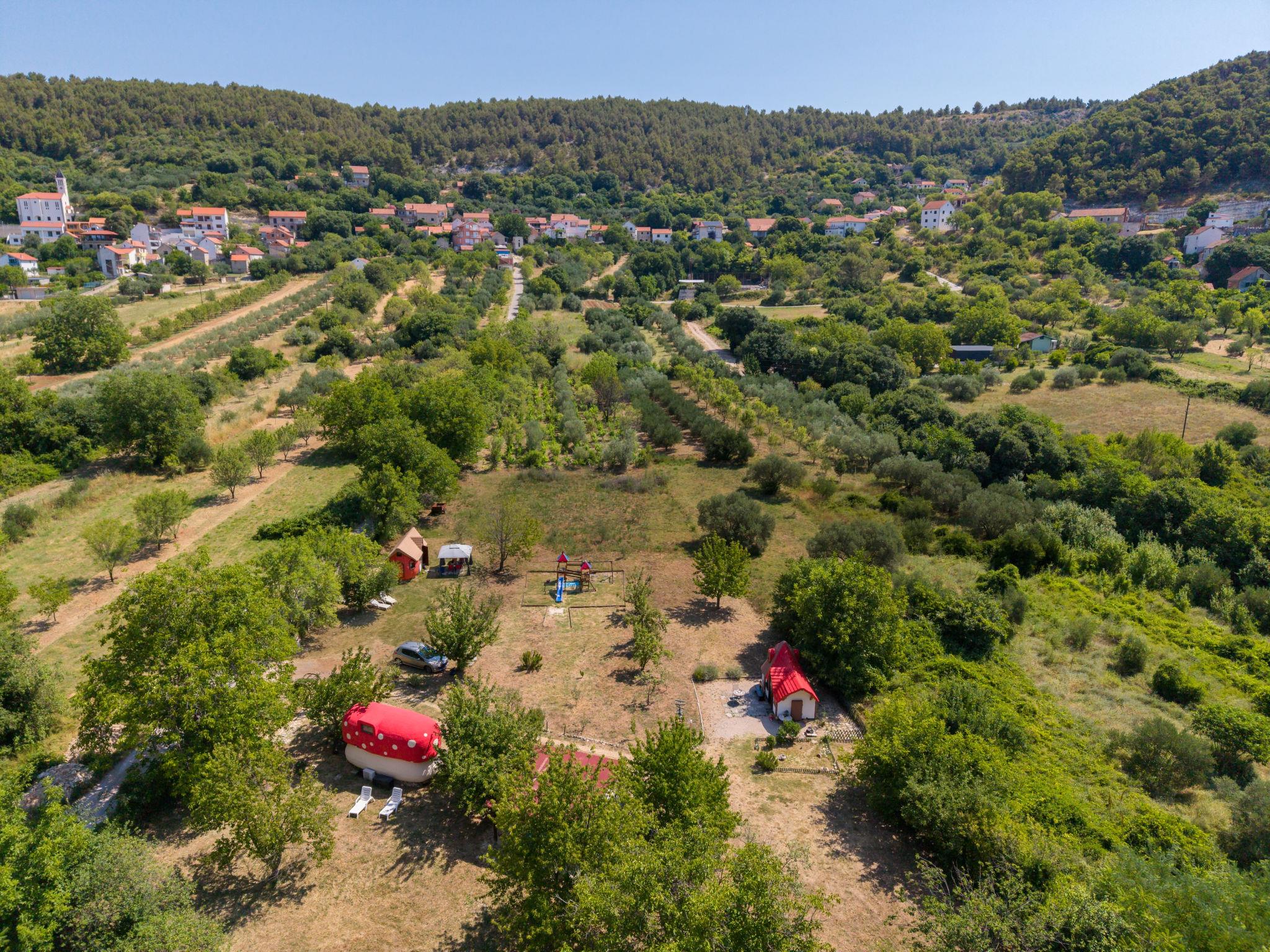 Rupe: Bungalow "Little Castle". 11 km from the centre of Skradin, in a quiet position, 11 km from the sea, in the countryside. For shared use: property 5'000 m2 with trees. Terrace (30 m2), garden furniture, barbecue. Private: property 150 m2, small garden. In the house: internet access. Motor access to the house (40 m via unmade road). Parking at the house on the premises. Shop 600 m, supermarket 11 km, restaurant 7.5 km, bus stop 16.4 km, pebble beach 11 km. Nearby attractions: NP Krka 5 km. Object suitable for 2 adults + 2 children.