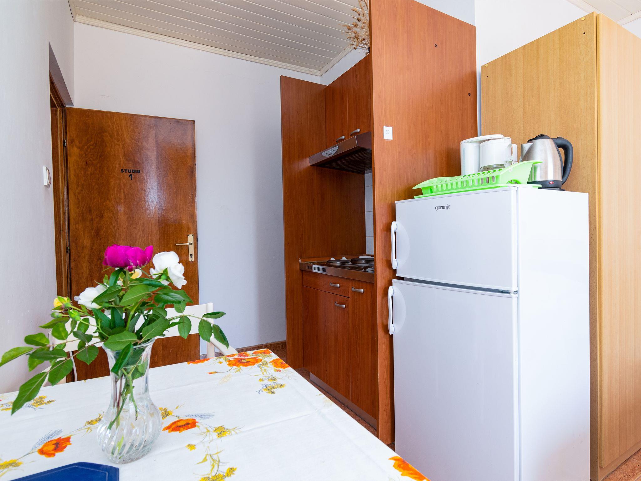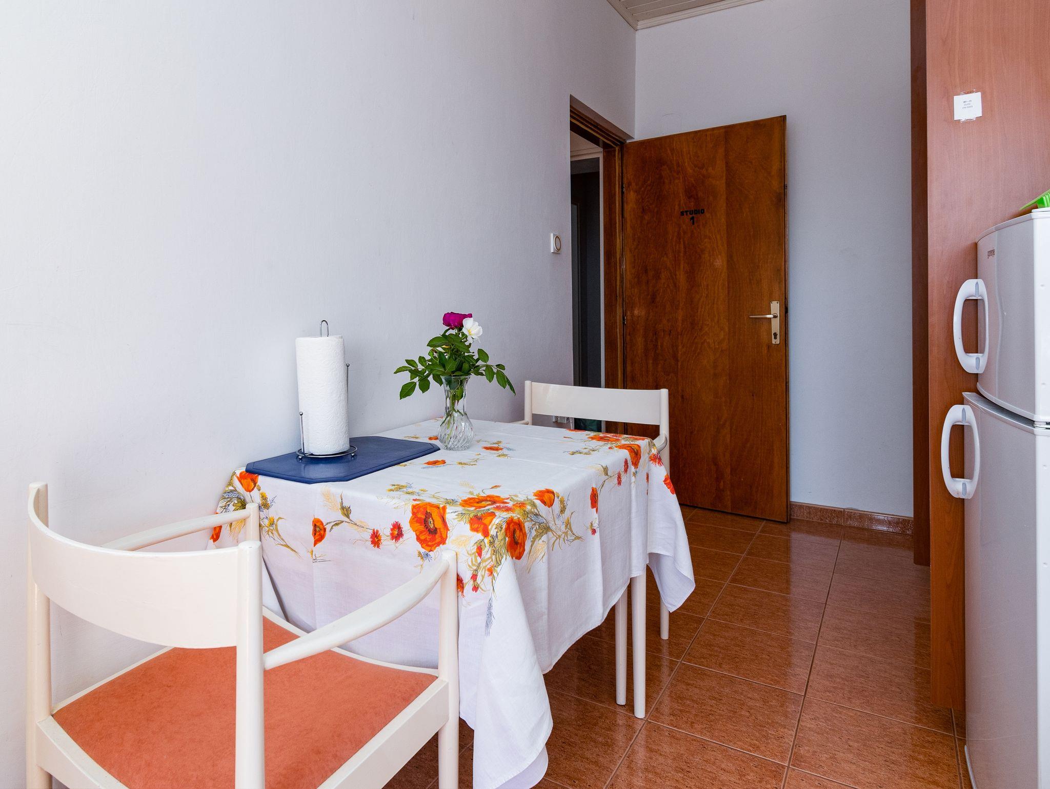 Studio bietet Platz für 2 Gäste. Die Betten sind in Schlafzimmern, die es 1 gibt, innerhalb einer Gesamtfläche von 22m2, angeordnet. Die Gäste haben eine eigene Terrasse zur Verfügung, auf der sie in warmen Sommernächten genießen können. Es ist erlaubt, Speisen auf dem Gemeinschafts-Grill vorzubereiten. IM PREIS INBEGRIFFEN: Kurtaxe, Endreinigung, Klimatisierung, Parkplatz, Internet, Bügeleisen, Bügelbrett. VERBINDLICHE ZUSÄTZLICHE KOSTEN: Aufzahlung für Kurzaufenthalte (prozentualer Zuschlag pro Nächtigungsanzahl: 30% - 1, 20% - 2, 10% - 3). UNVERBINDLICHE ZUSÄTZLICHE KOSTEN: Zusatzbett (10,00 € pro Nacht). Die Verfügbarkeit zusätzlicher Dienstleistungen in Ihrem reservierten Termin und die Preise derselben (falls nicht aufgeführt) müssen im Voraus überprüft werden. Zusätzliche Dienstleistungen die in der Zahlungsaufforderung nicht aufgeführt sind werden direkt beim Vermieter bezahlt, angenommen der Gast nutzt auch diese. Ermäßigung auf den Grundpreis: Gratistag 14=13 (bei einem Aufenthalt von 14 Tagen oder mehr erhalten Sie einen Gratistag für den Aufenthalt bis 31.12.26).