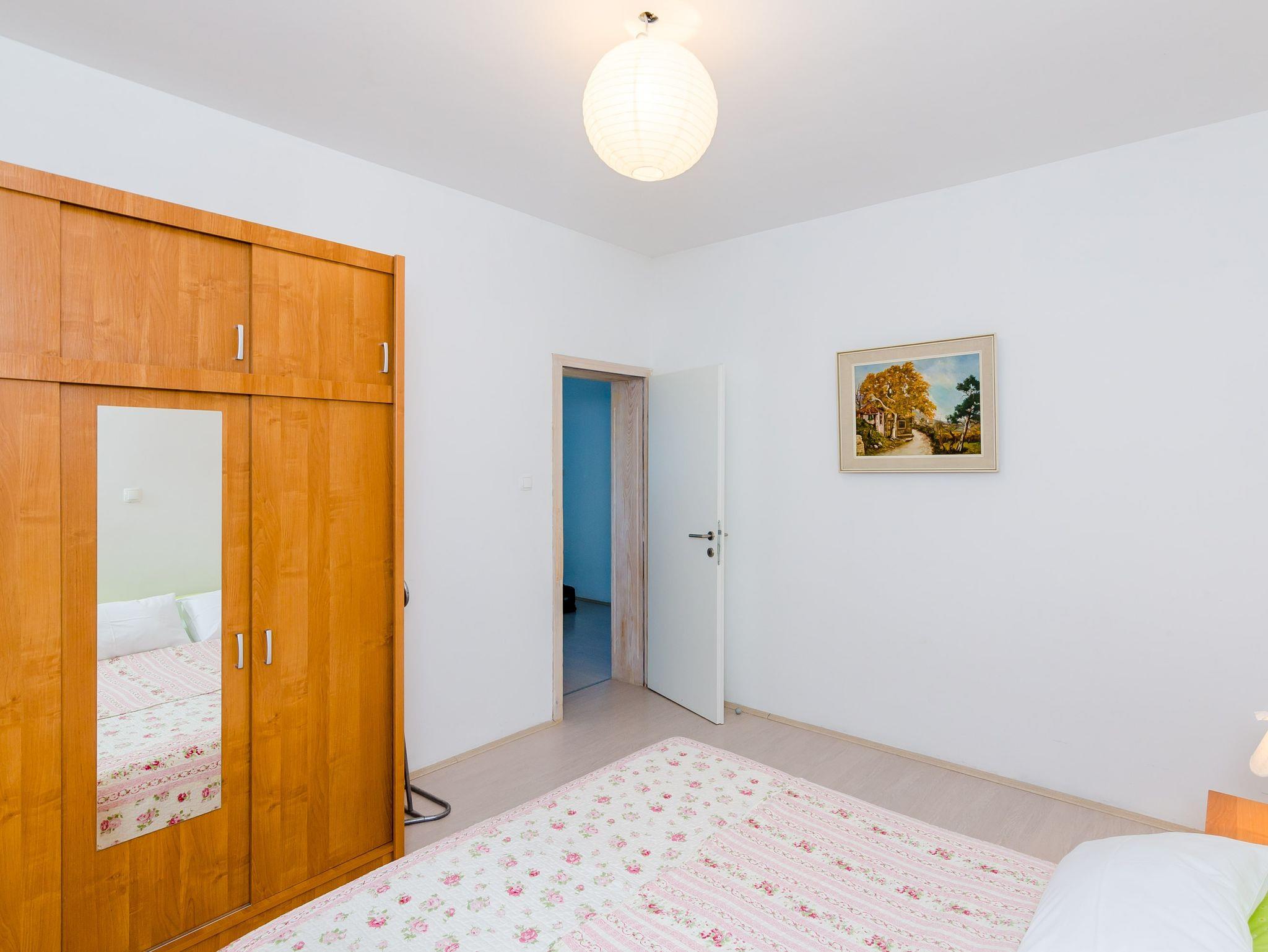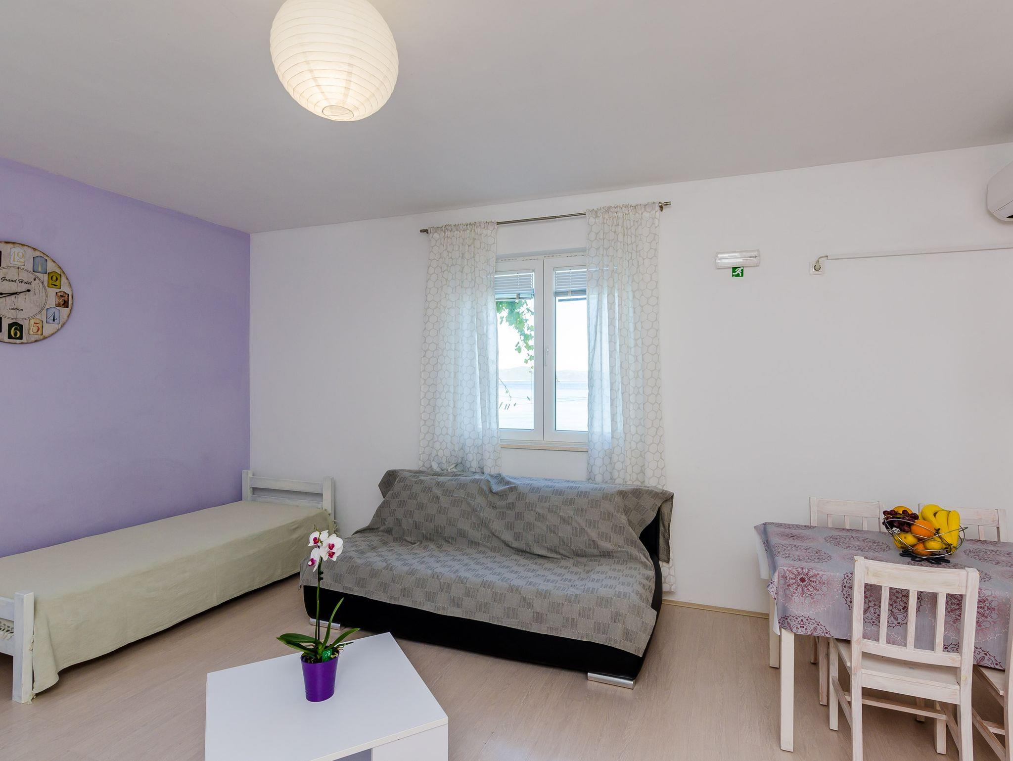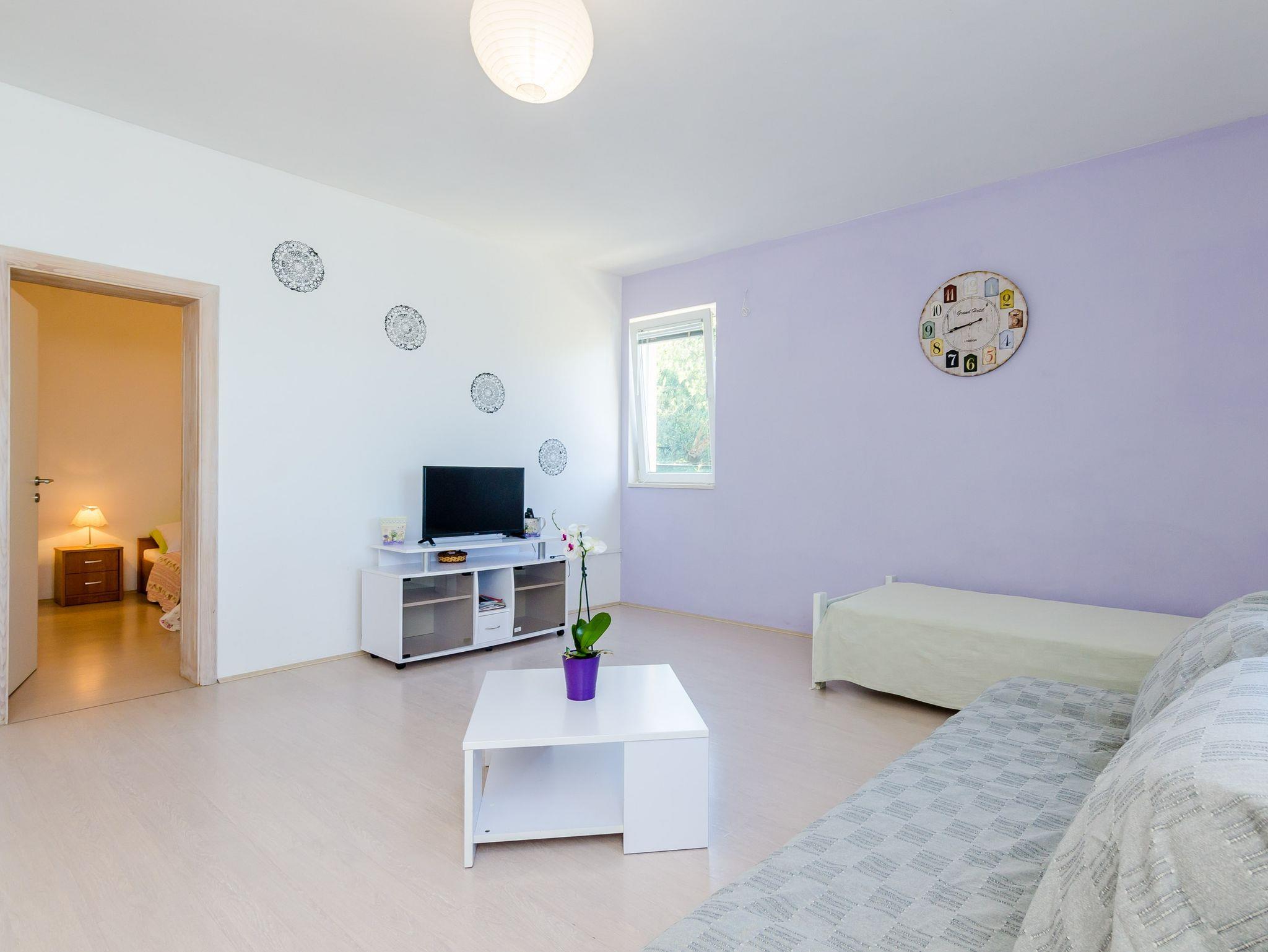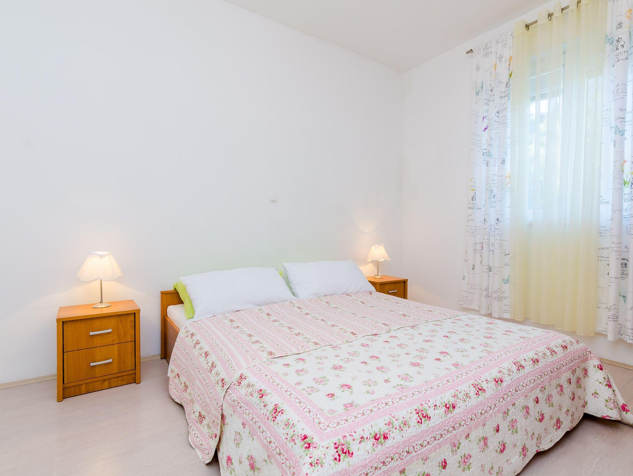 Ferienwohnung bietet Platz für 4 Gäste. Die Betten sind in Schlafzimmern, die es 1 gibt, und in Wohnzimmer, innerhalb einer Gesamtfläche von 47m2, angeordnet. Die Gäste haben eine eigene Terrasse zur Verfügung, auf der sie in warmen Sommernächten genießen können. Das Apartment bietet Meerblick. Es ist erlaubt, Speisen auf dem Gemeinschafts-Grill vorzubereiten. IM PREIS INBEGRIFFEN: Kurtaxe, Endreinigung, Klimatisierung, Parkplatz, Internet, Bootsanlegeplatz, Kinderbett, Zusatzbett, Bügeleisen, Bügelbrett, Föhn, Sonnenschirm, Liegestühle. Die Verfügbarkeit zusätzlicher Dienstleistungen in Ihrem reservierten Termin und die Preise derselben (falls nicht aufgeführt) müssen im Voraus überprüft werden. Zusätzliche Dienstleistungen die in der Zahlungsaufforderung nicht aufgeführt sind werden direkt beim Vermieter bezahlt, angenommen der Gast nutzt auch diese. Ermäßigung auf den Grundpreis: Gratistag 14=13 (bei einem Aufenthalt von 14 Tagen oder mehr erhalten Sie einen Gratistag für den Aufenthalt bis 31.12.26).