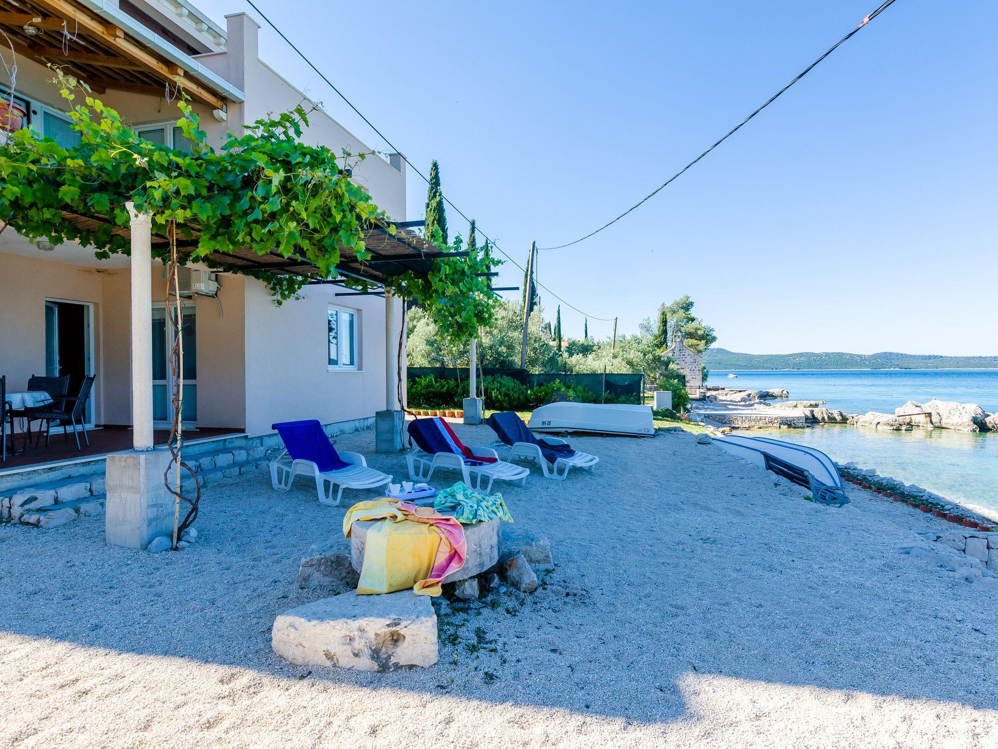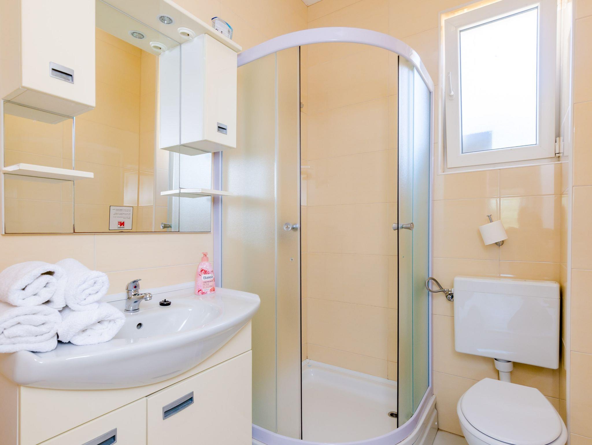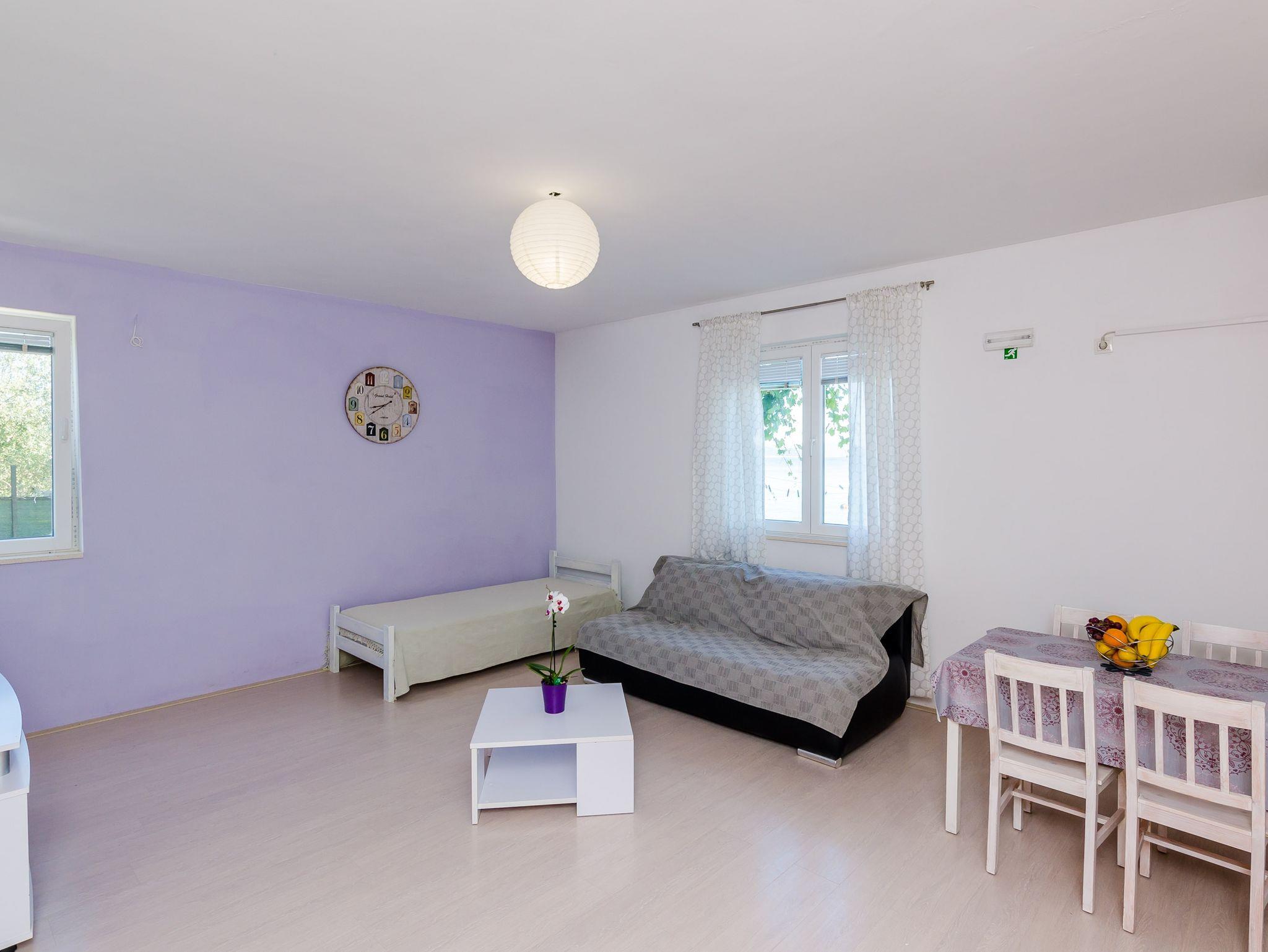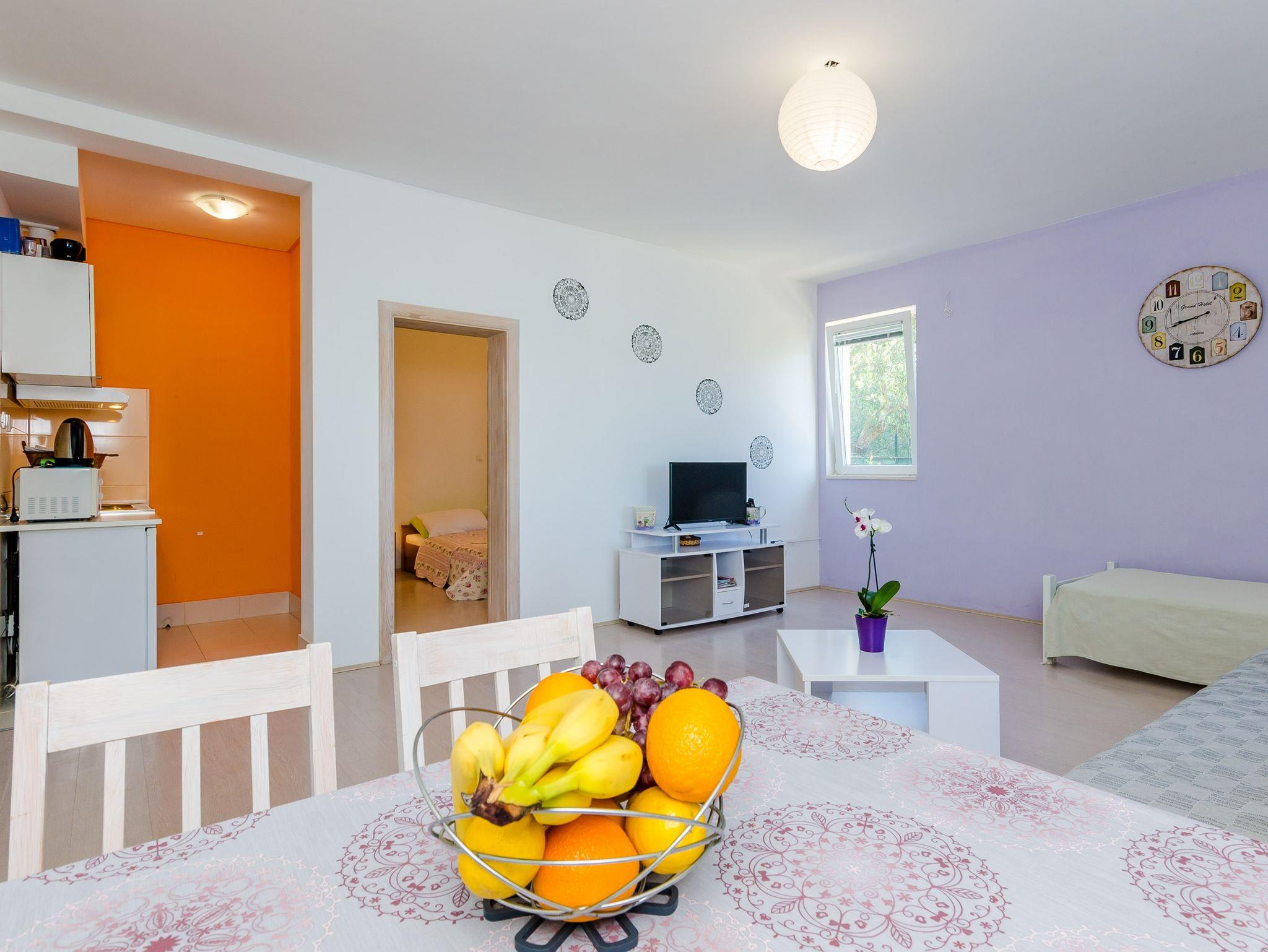 Ferienwohnung bietet Platz für 4 Gäste. Die Betten sind in Schlafzimmern, die es 1 gibt, und in Wohnzimmer, innerhalb einer Gesamtfläche von 47m2, angeordnet. Die Gäste haben eine eigene Terrasse zur Verfügung, auf der sie in warmen Sommernächten genießen können. Das Apartment bietet Meerblick. Es ist erlaubt, Speisen auf dem Gemeinschafts-Grill vorzubereiten. IM PREIS INBEGRIFFEN: Kurtaxe, Endreinigung, Klimatisierung, Parkplatz, Internet, Bootsanlegeplatz, Kinderbett, Zusatzbett, Bügeleisen, Bügelbrett, Föhn, Sonnenschirm, Liegestühle. Die Verfügbarkeit zusätzlicher Dienstleistungen in Ihrem reservierten Termin und die Preise derselben (falls nicht aufgeführt) müssen im Voraus überprüft werden. Zusätzliche Dienstleistungen die in der Zahlungsaufforderung nicht aufgeführt sind werden direkt beim Vermieter bezahlt, angenommen der Gast nutzt auch diese. Ermäßigung auf den Grundpreis: Gratistag 14=13 (bei einem Aufenthalt von 14 Tagen oder mehr erhalten Sie einen Gratistag für den Aufenthalt bis 31.12.26).