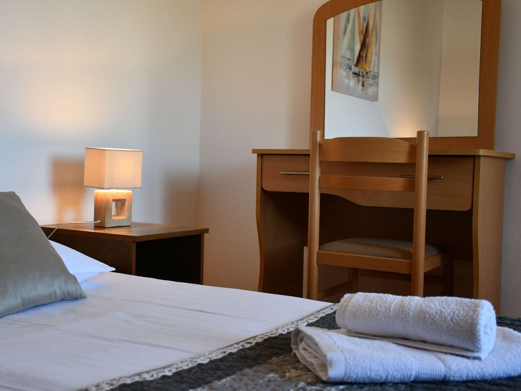 Ferienwohnung bietet Platz für 6 Gäste. Die Betten sind in Schlafzimmern, die es 2 gibt, und in Wohnzimmer, innerhalb einer Gesamtfläche von 63m2, angeordnet. Die Gäste haben eine eigene Terrasse zur Verfügung, auf der sie in warmen Sommernächten genießen können. Das Apartment bietet Meerblick. Es ist erlaubt, Speisen auf dem Gemeinschafts-Grill vorzubereiten. IM PREIS INBEGRIFFEN: Kurtaxe, Endreinigung, Klimatisierung, Parkplatz, Internet, Wäschewaschen, Bügeleisen, Bügelbrett, Föhn, tragbarer Grill. Die Verfügbarkeit zusätzlicher Dienstleistungen in Ihrem reservierten Termin und die Preise derselben (falls nicht aufgeführt) müssen im Voraus überprüft werden. Zusätzliche Dienstleistungen die in der Zahlungsaufforderung nicht aufgeführt sind werden direkt beim Vermieter bezahlt, angenommen der Gast nutzt auch diese.