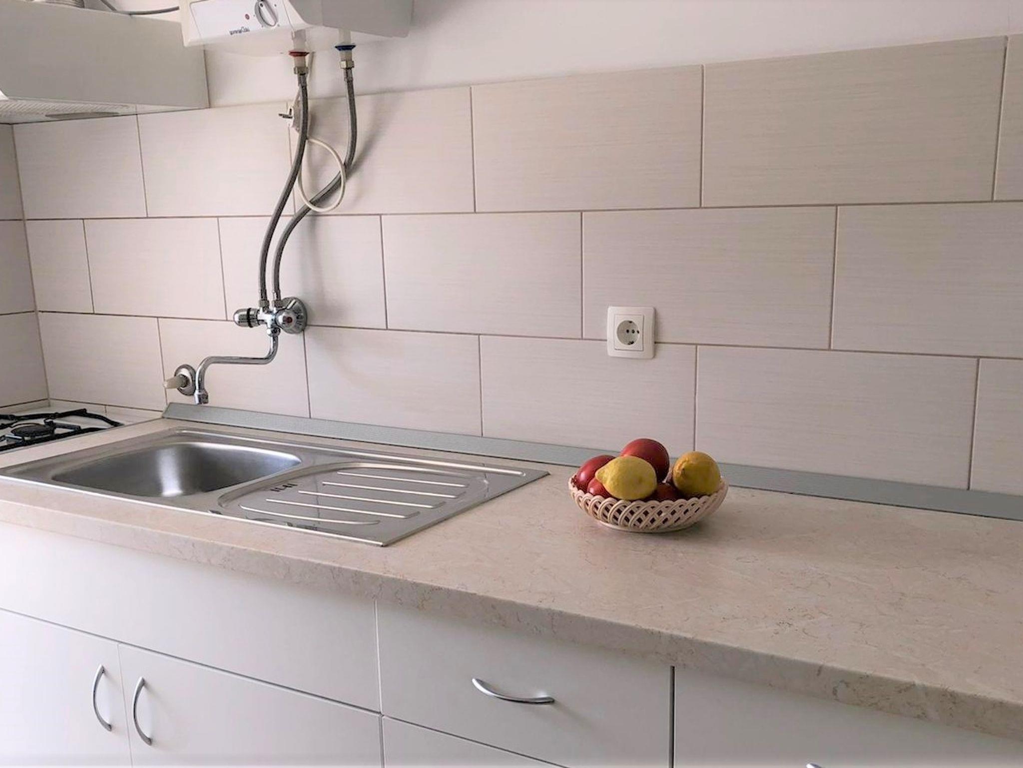 Studio bietet Platz für 2 Gäste. Die Betten sind in Schlafzimmern, die es 1 gibt, innerhalb einer Gesamtfläche von 24m2, angeordnet. Die Gäste haben eine eigene Terrasse zur Verfügung, auf der sie in warmen Sommernächten genießen können. Das Studio-Apartment bietet Meerblick. Es ist erlaubt, Speisen auf dem Gemeinschafts-Grill vorzubereiten. In der Unterkunftseinheit besteht die Möglichkeit des Mitbringens von Haustieren gegen Aufpreis. IM PREIS INBEGRIFFEN: Kurtaxe, Endreinigung, Klimatisierung, Parkplatz, Internet, Bootsanlegeplatz, Bügeleisen, Bügelbrett, Föhn, tragbarer Grill, 1 Bett für Kinder (im Preis enthalten). VERBINDLICHE ZUSÄTZLICHE KOSTEN: Aufzahlung für Kurzaufenthalte (prozentualer Zuschlag pro Nächtigungsanzahl: 30% - 1, 20% - 2, 10% - 3). UNVERBINDLICHE ZUSÄTZLICHE KOSTEN: Wäschewaschen (7,00 € Waschen), Haustiere (5,00 € pro Nacht). Die Verfügbarkeit zusätzlicher Dienstleistungen in Ihrem reservierten Termin und die Preise derselben (falls nicht aufgeführt) müssen im Voraus überprüft werden. Zusätzliche Dienstleistungen die in der Zahlungsaufforderung nicht aufgeführt sind werden direkt beim Vermieter bezahlt, angenommen der Gast nutzt auch diese. Ermäßigung auf den Grundpreis: Gratistag 14=13 (bei einem Aufenthalt von 14 Tagen oder mehr erhalten Sie einen Gratistag für den Aufenthalt bis 31.12.26).