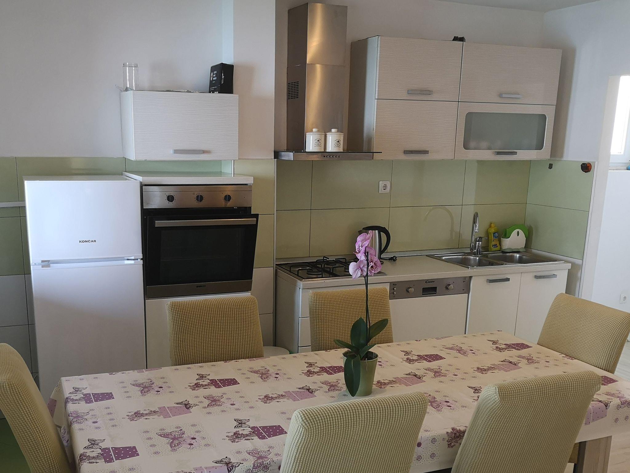 Ferienwohnung bietet Platz für 7 Gäste. Die Betten sind in Schlafzimmern, die es 2 gibt, und in Wohnzimmer, innerhalb einer Gesamtfläche von 86m2, angeordnet. Die Gäste haben eine eigene Terrasse zur Verfügung, auf der sie in warmen Sommernächten genießen können. Das Apartment bietet Meerblick. Es ist erlaubt, Speisen auf dem Gemeinschafts-Grill vorzubereiten. IM PREIS INBEGRIFFEN: Kurtaxe, Endreinigung, Klimatisierung, Parkplatz, Internet, Bootsanlegeplatz, Kinderbett, Bügeleisen, Bügelbrett, Föhn, Sonnenschirm, Liegestühle, 1 Bett für Kinder (im Preis enthalten). Die Verfügbarkeit zusätzlicher Dienstleistungen in Ihrem reservierten Termin und die Preise derselben (falls nicht aufgeführt) müssen im Voraus überprüft werden. Zusätzliche Dienstleistungen die in der Zahlungsaufforderung nicht aufgeführt sind werden direkt beim Vermieter bezahlt, angenommen der Gast nutzt auch diese. Ermäßigung auf den Grundpreis: Gratistag 14=13 (bei einem Aufenthalt von 14 Tagen oder mehr erhalten Sie einen Gratistag für den Aufenthalt bis 31.12.26).