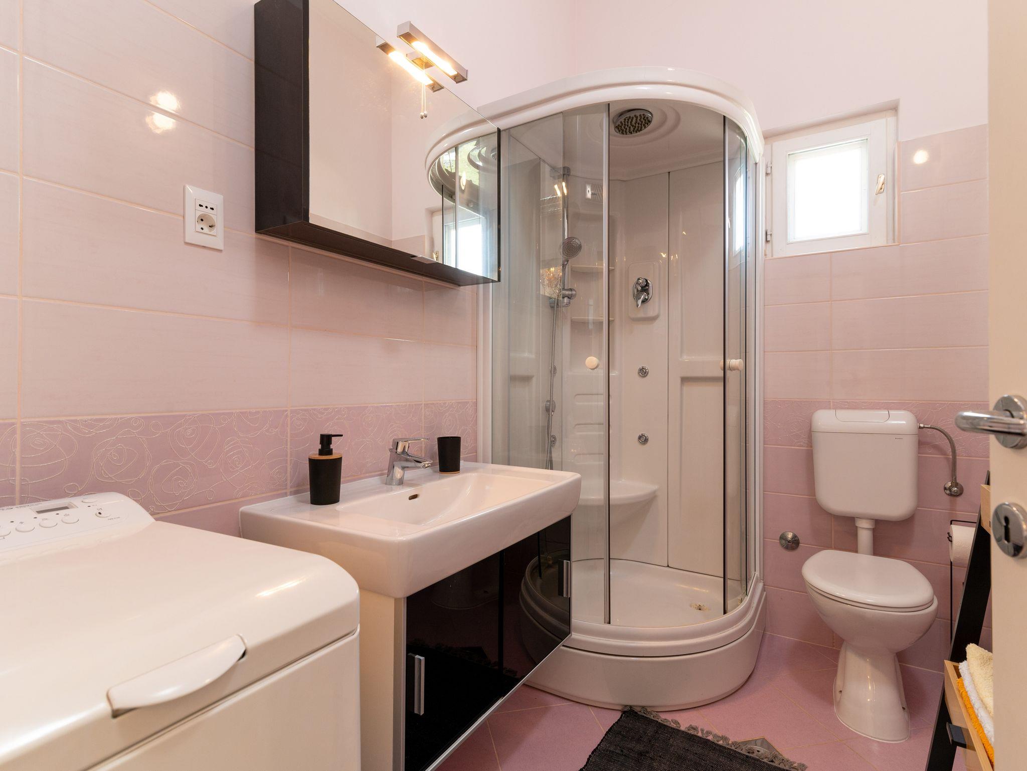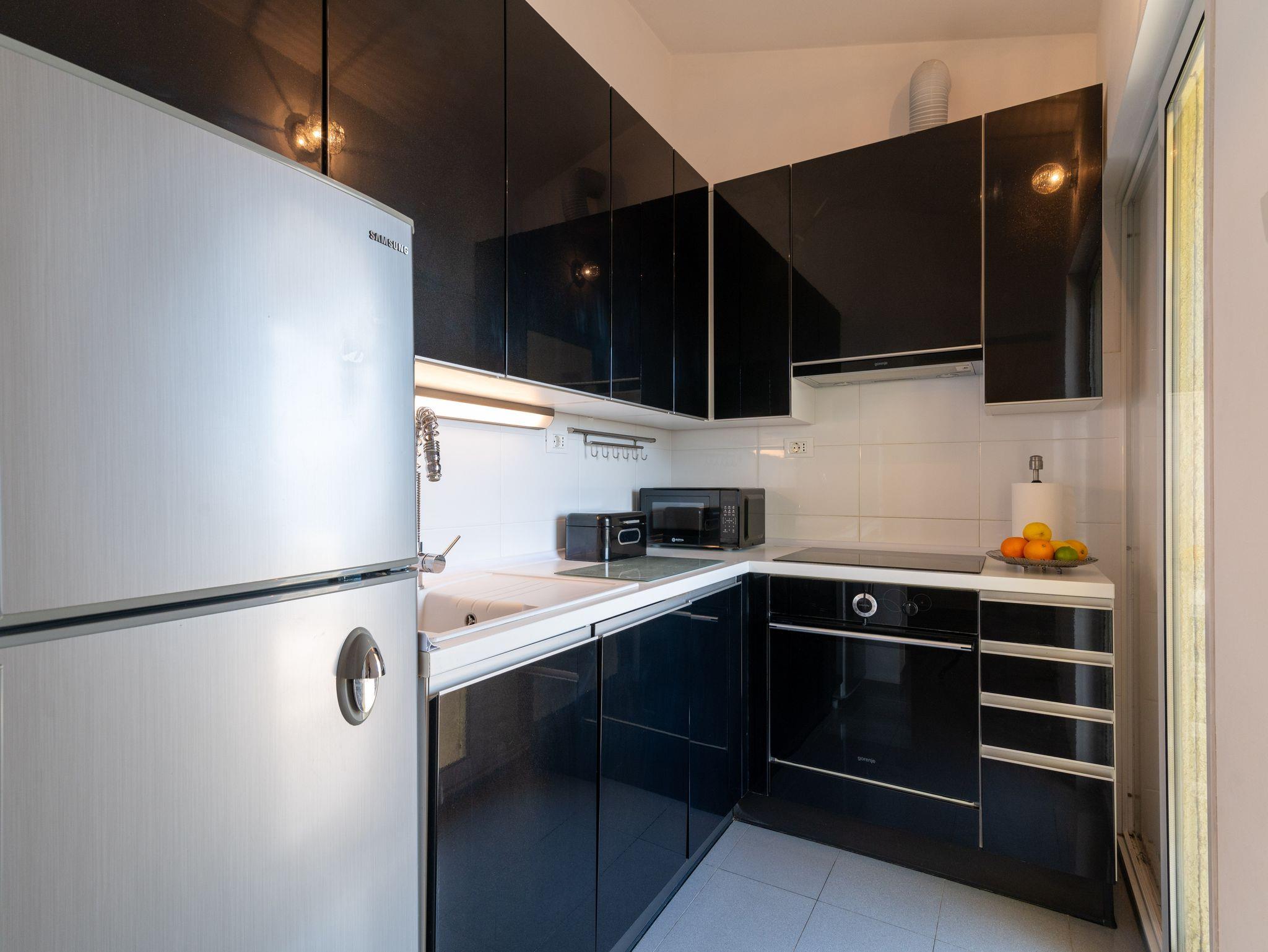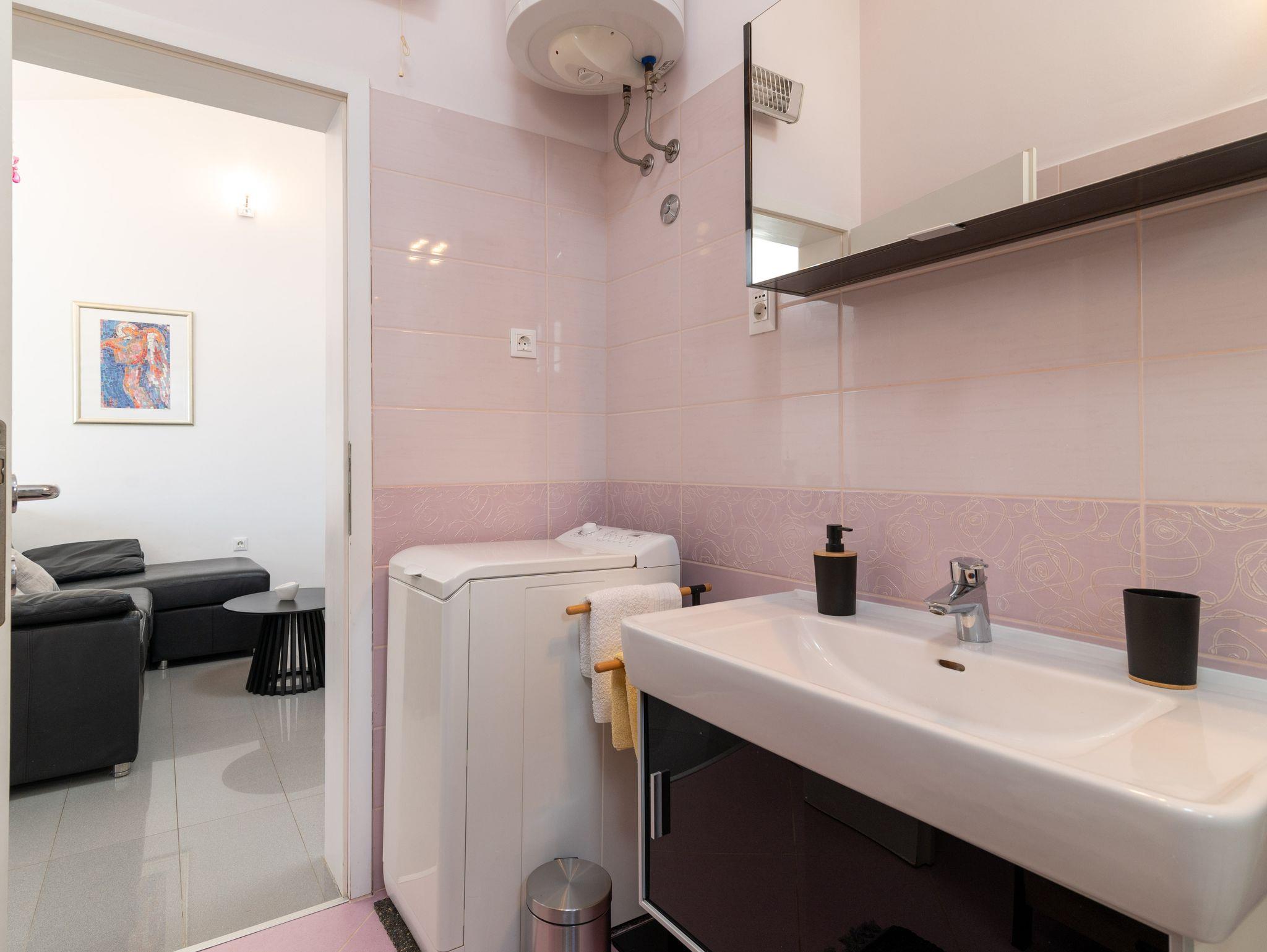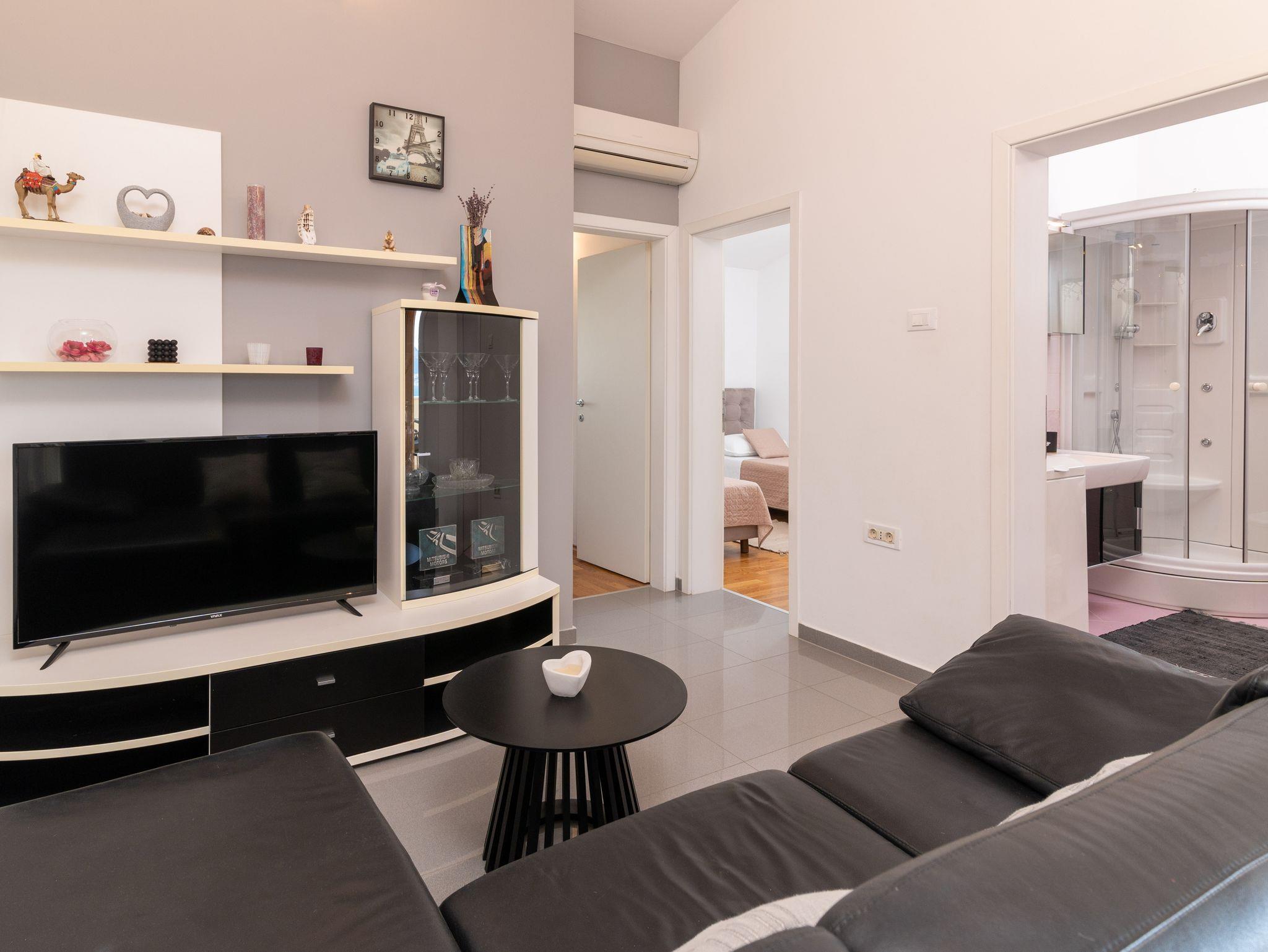 Ferienwohnung bietet Platz für 5 Gäste. Die Betten sind in Schlafzimmern, die es 2 gibt, und in Wohnzimmer, innerhalb einer Gesamtfläche von 48m2, angeordnet. Die Gäste haben eine eigene Terrasse zur Verfügung, auf der sie in warmen Sommernächten genießen können. Das Apartment bietet Meerblick. Für vollen Genuss und Entspannung gibt es einen privaten Grill für Gäste dieser Unterkunft. IM PREIS INBEGRIFFEN: Kurtaxe, Endreinigung, Klimatisierung, Parkplatz, Internet, Bügeleisen, Bügelbrett, Föhn, Sonnenschirm. Die Verfügbarkeit zusätzlicher Dienstleistungen in Ihrem reservierten Termin und die Preise derselben (falls nicht aufgeführt) müssen im Voraus überprüft werden. Zusätzliche Dienstleistungen die in der Zahlungsaufforderung nicht aufgeführt sind werden direkt beim Vermieter bezahlt, angenommen der Gast nutzt auch diese.